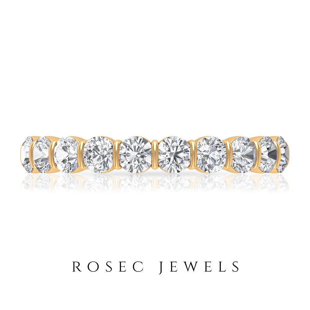 A Stunningly Beautiful and Unique Diamond Ring is adorned with Round Shape Diamond studded on the half band ring. Classic Diamond Eternity Ring is crafted in 14K Gold. A gorgeous ring is a perfect gift for loved ones.