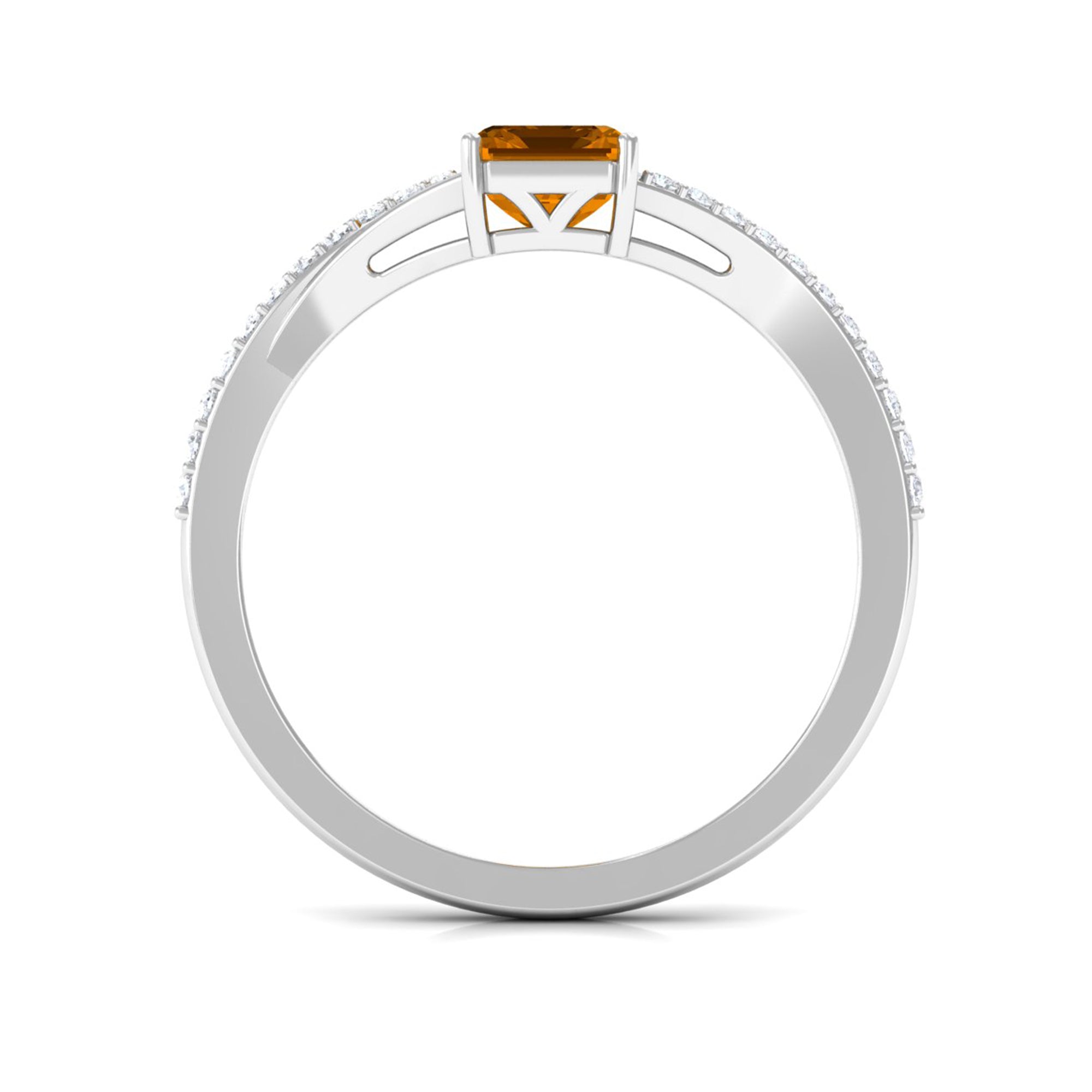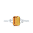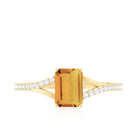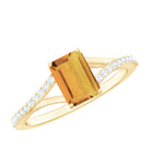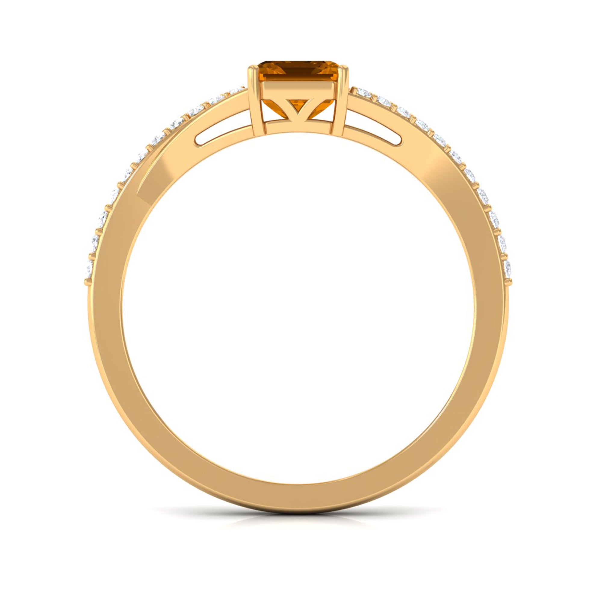 1.25 CT Emerald Cut Citrine Solitaire Ring with Diamond Accent