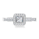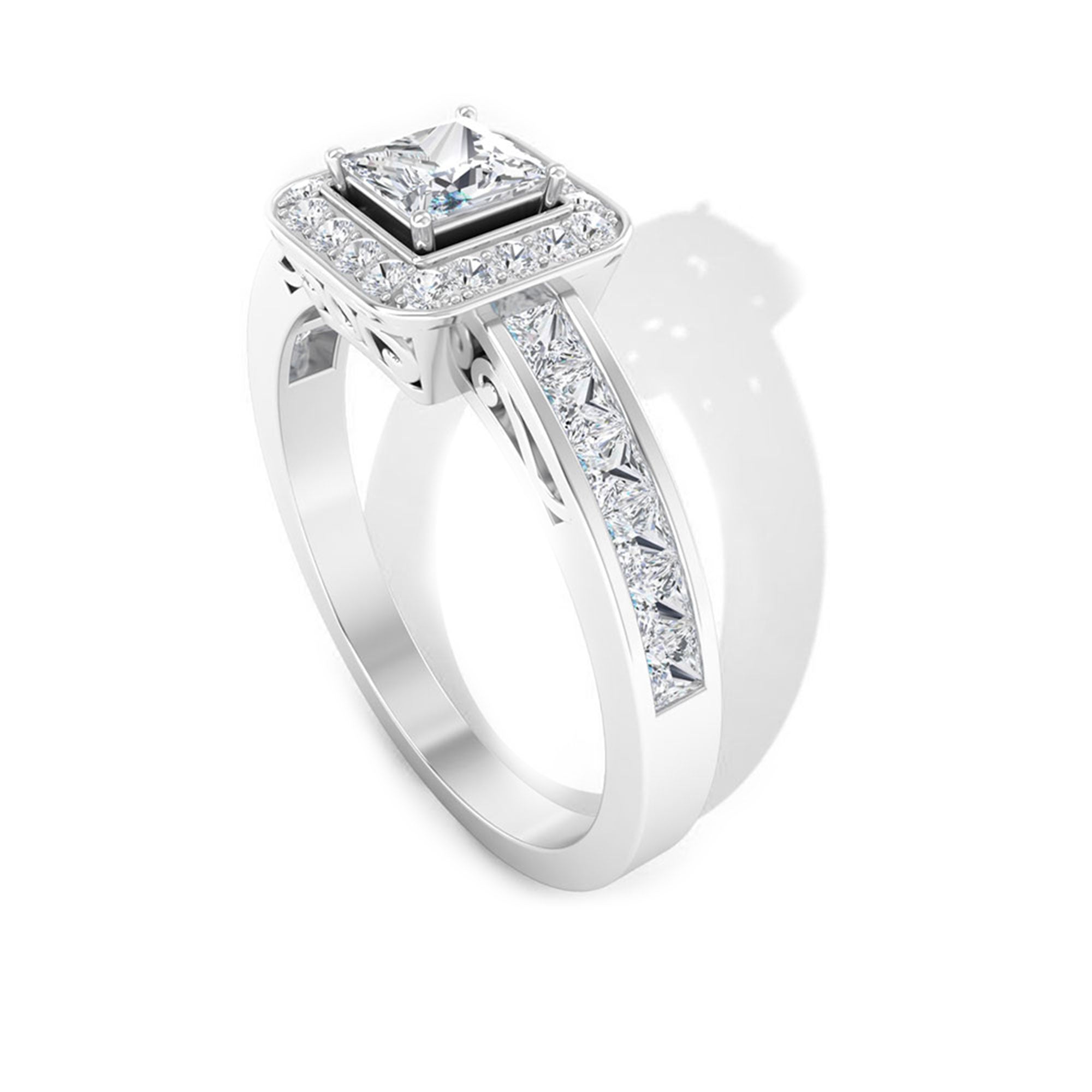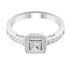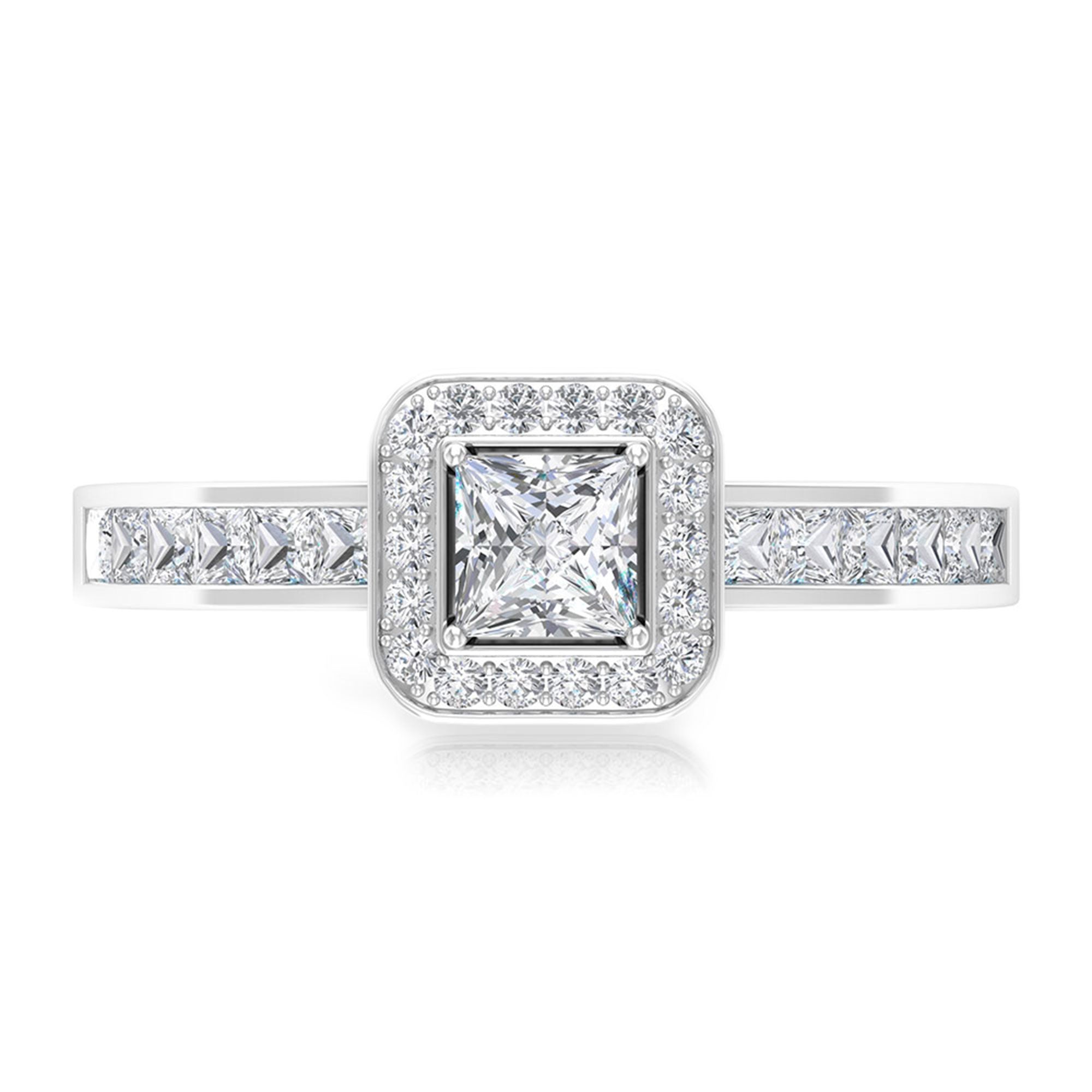 1.25 Ct Halo Solitaire Ring with Princess Cut Diamond Side Stone