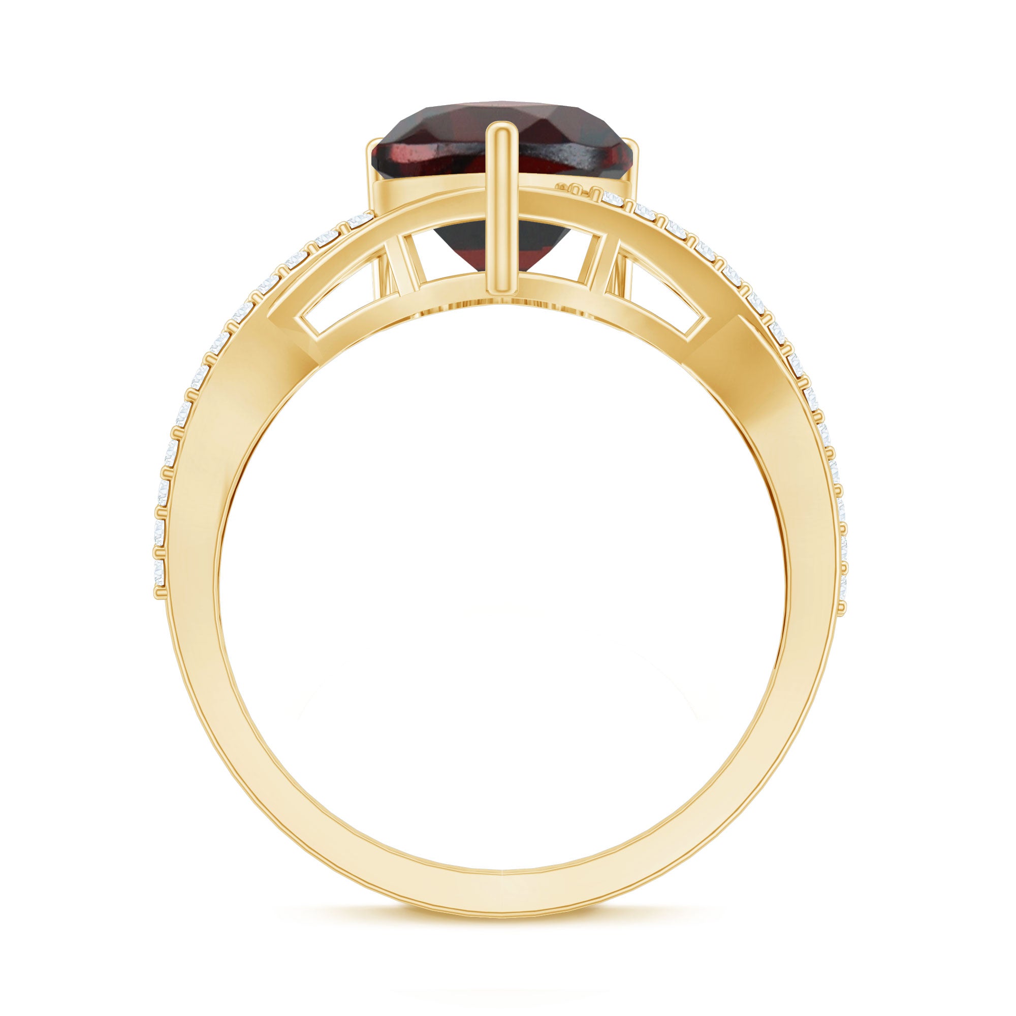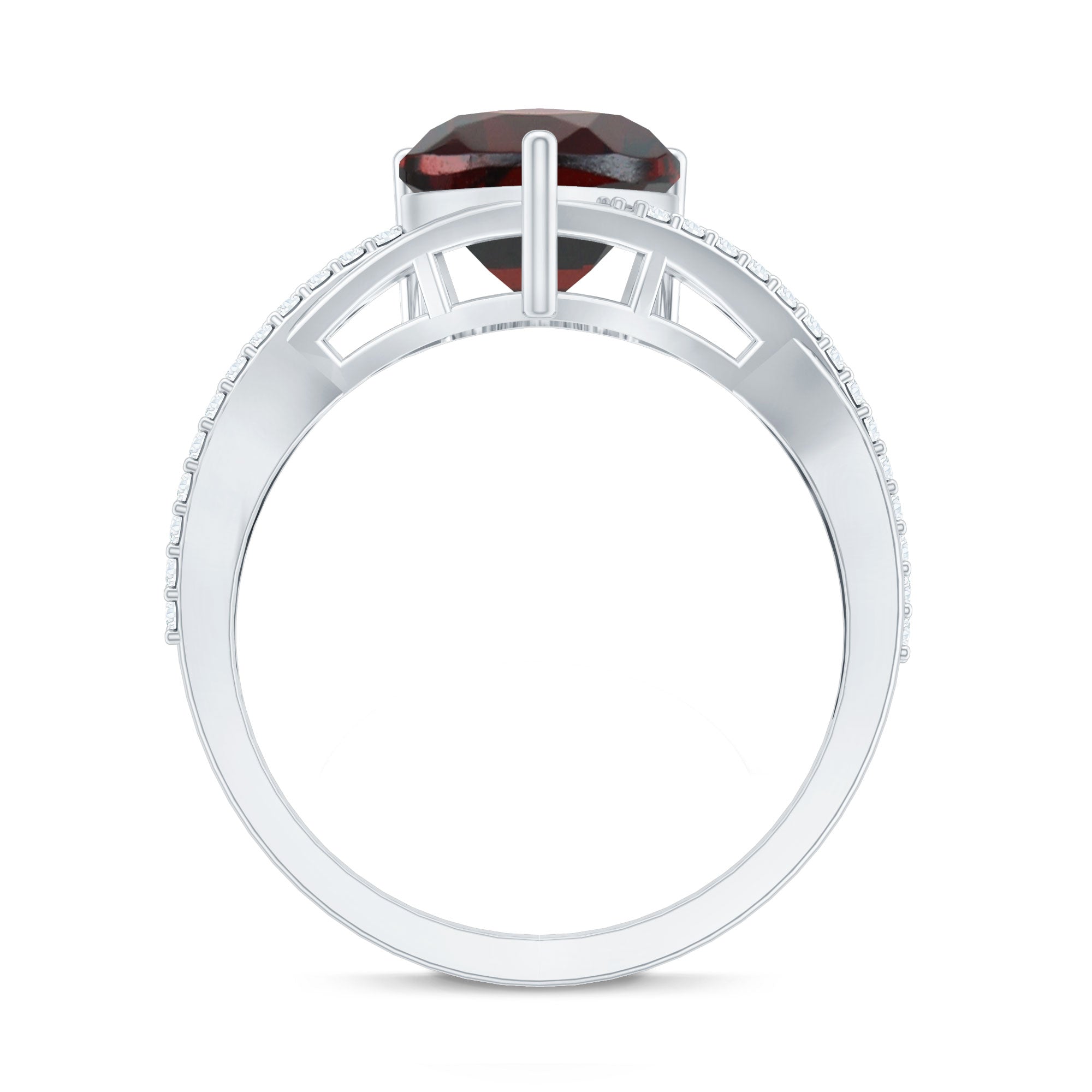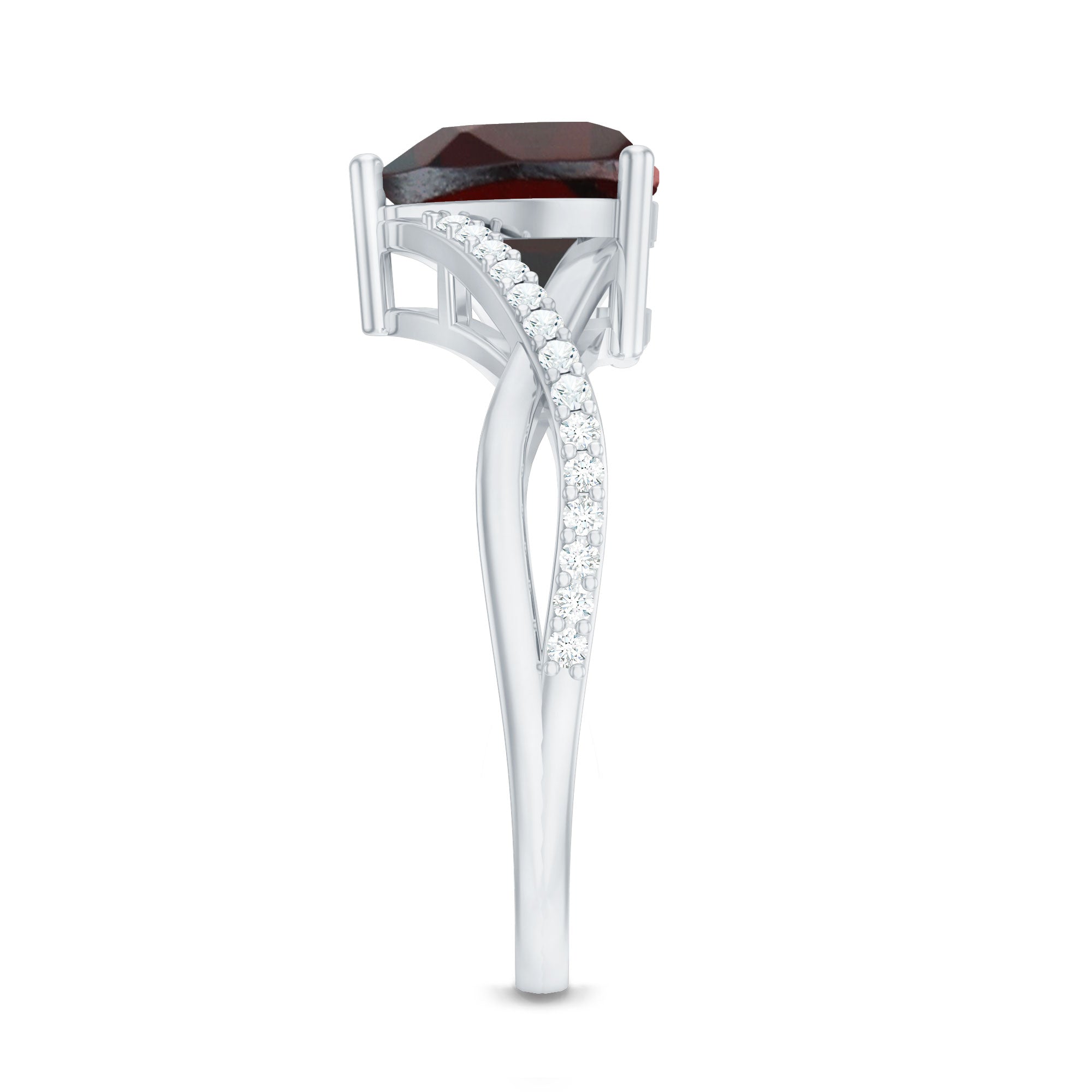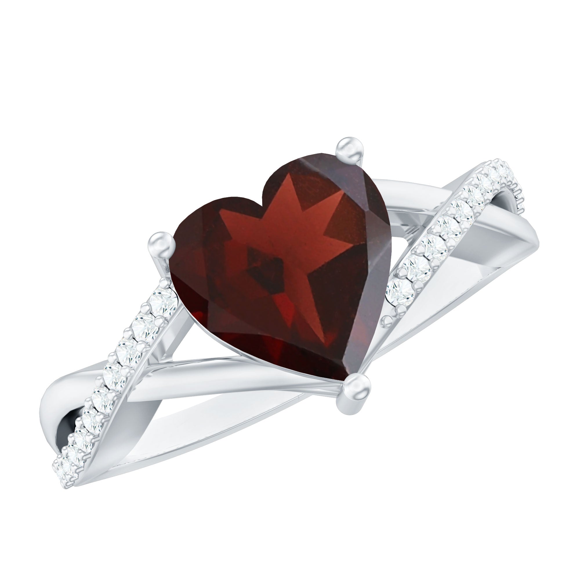 1.25 Ct Heart Garnet Crossover Engagement Ring with Diamond
