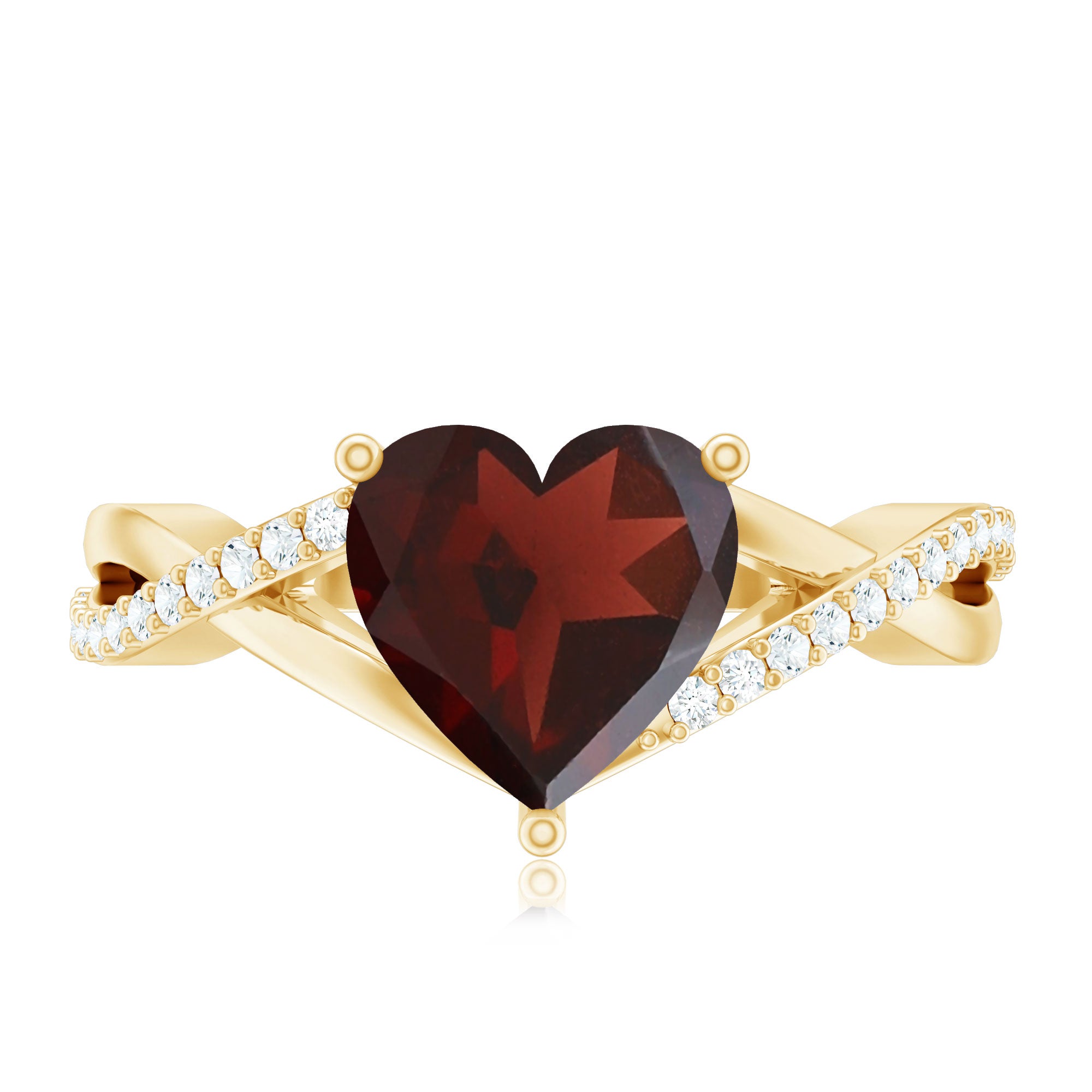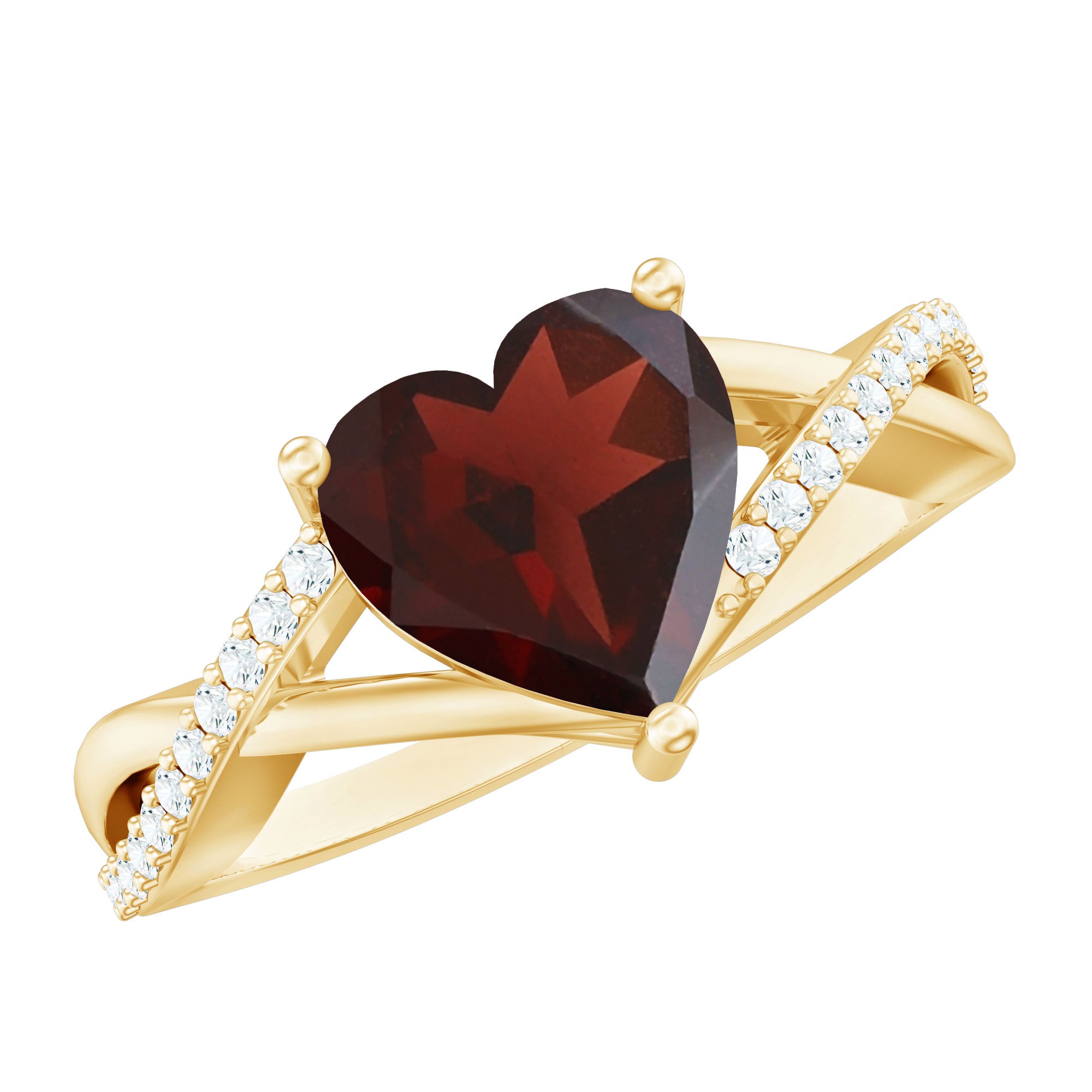 As a way to express your affection and devotion to your January Woman, give her this Garnet Heart Solitaire Engagement Ring. Featuring a Heart Shape Garnet in the Center on a Round Diamond Accent over a Crossover Shank, this mystical ring will protect your relationship.