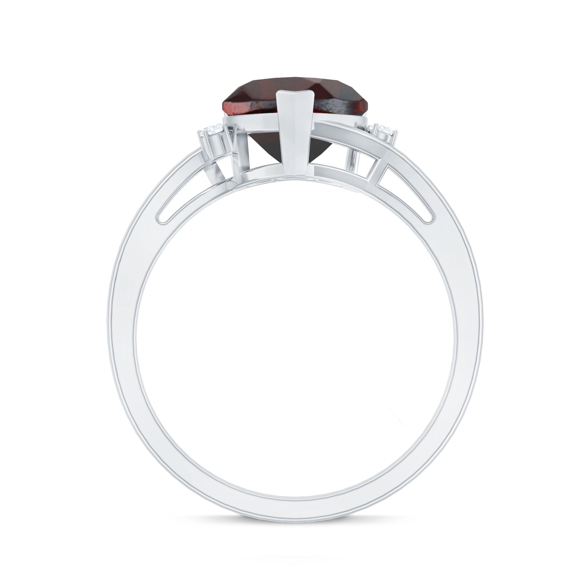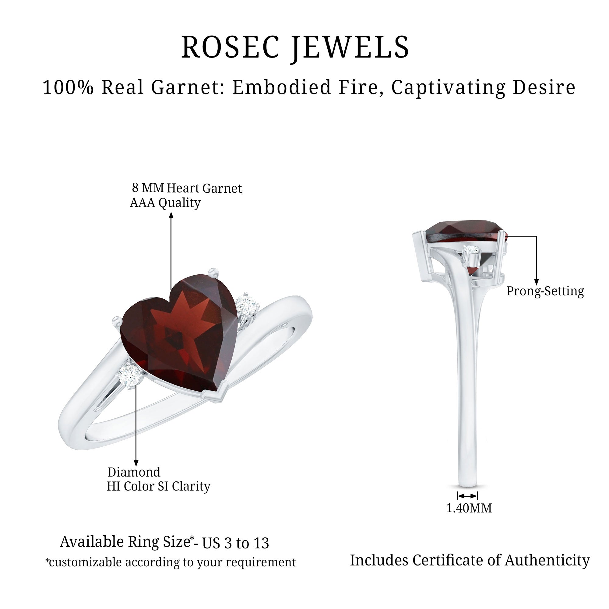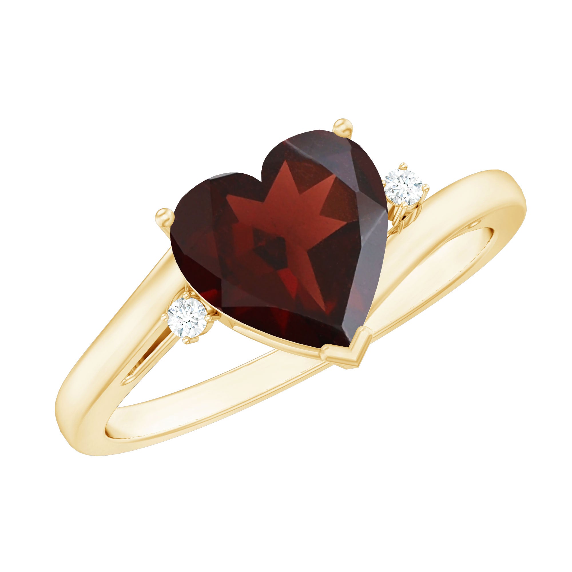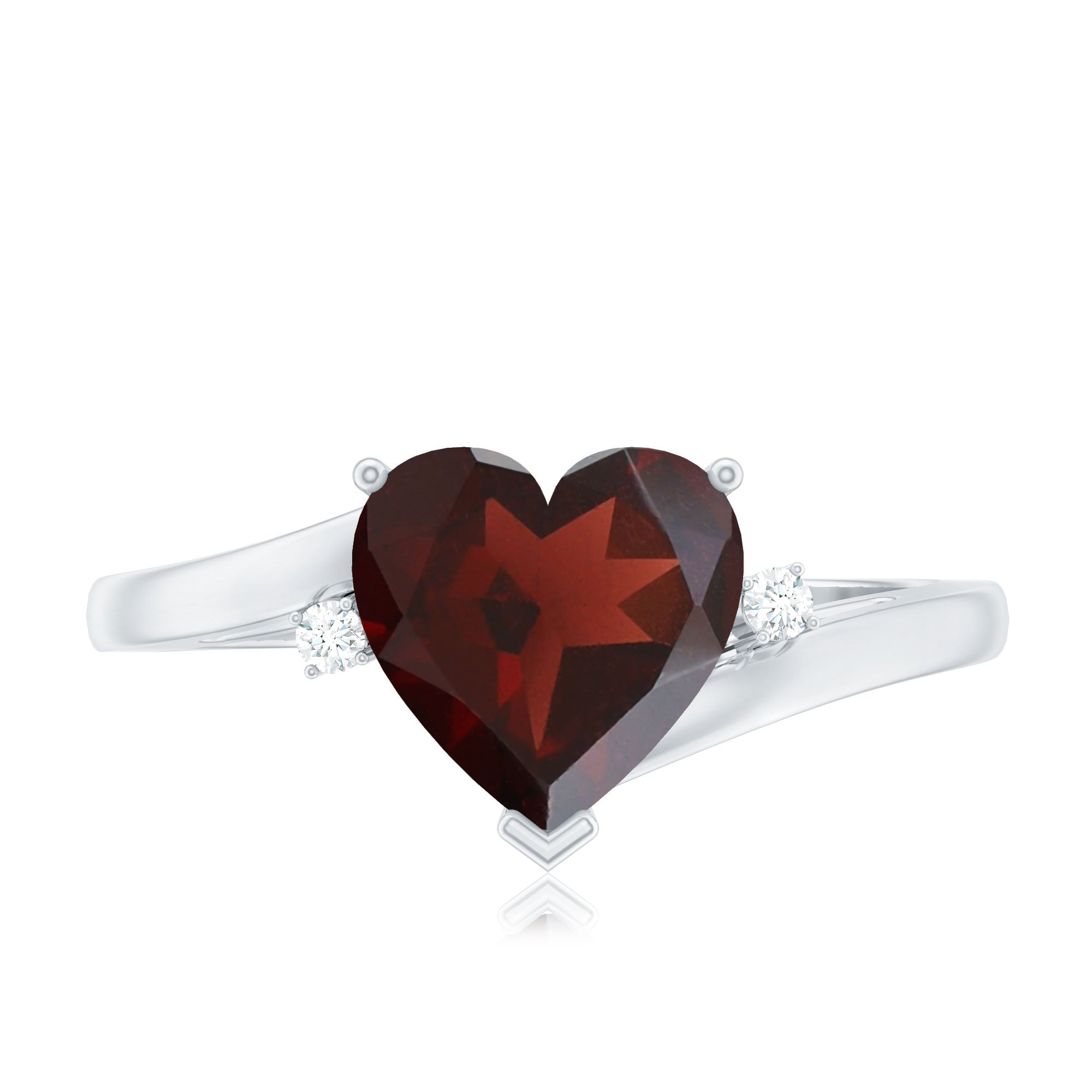 1.25 CT Heart Garnet Solitaire Promise Ring with Diamond