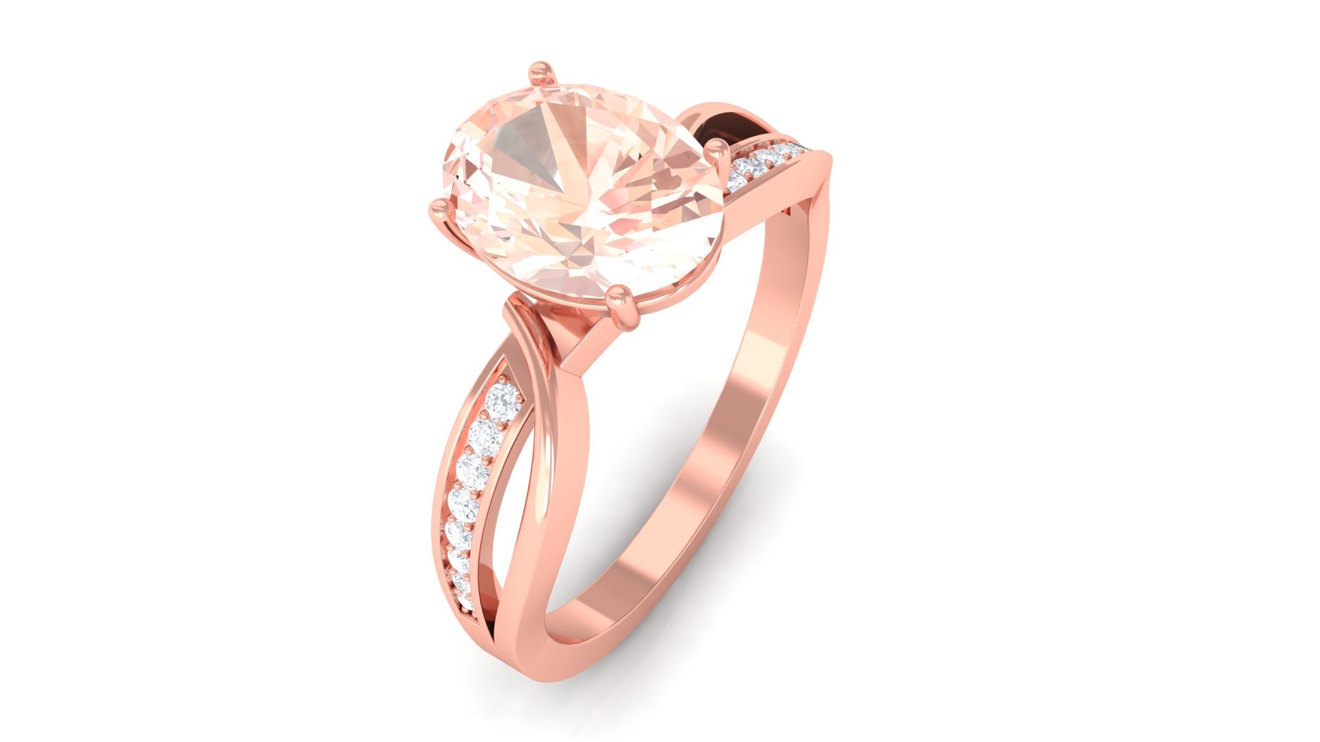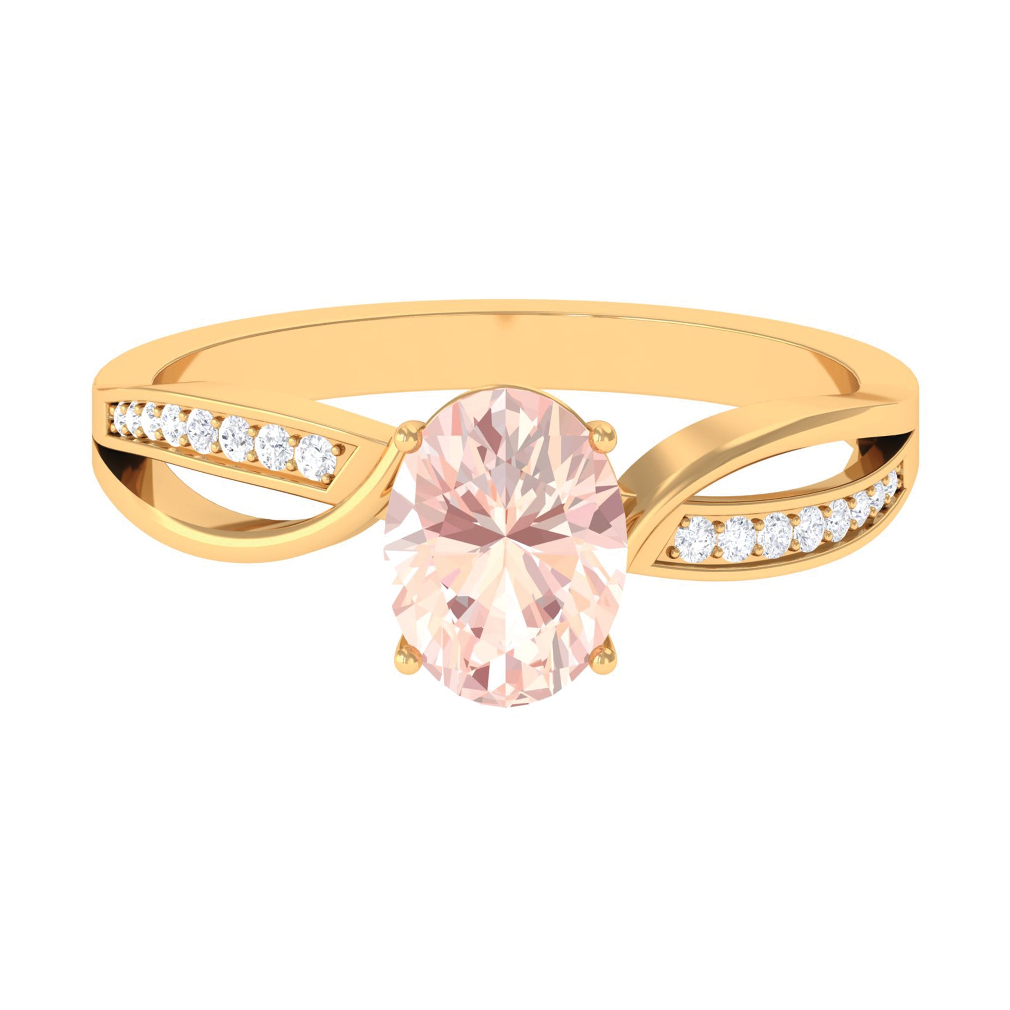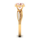 Morganite Engagement Ring is crafted in Gold, embellished with round Diamond side stones to give this ring a perfect look. The Oval Cut Morganite is held in 4 Prong Setting for a better and secure look. This Morganite and Diamond Engagement Ring has an exquisite Infinity Shank, make this ring perfect for your lady.
