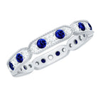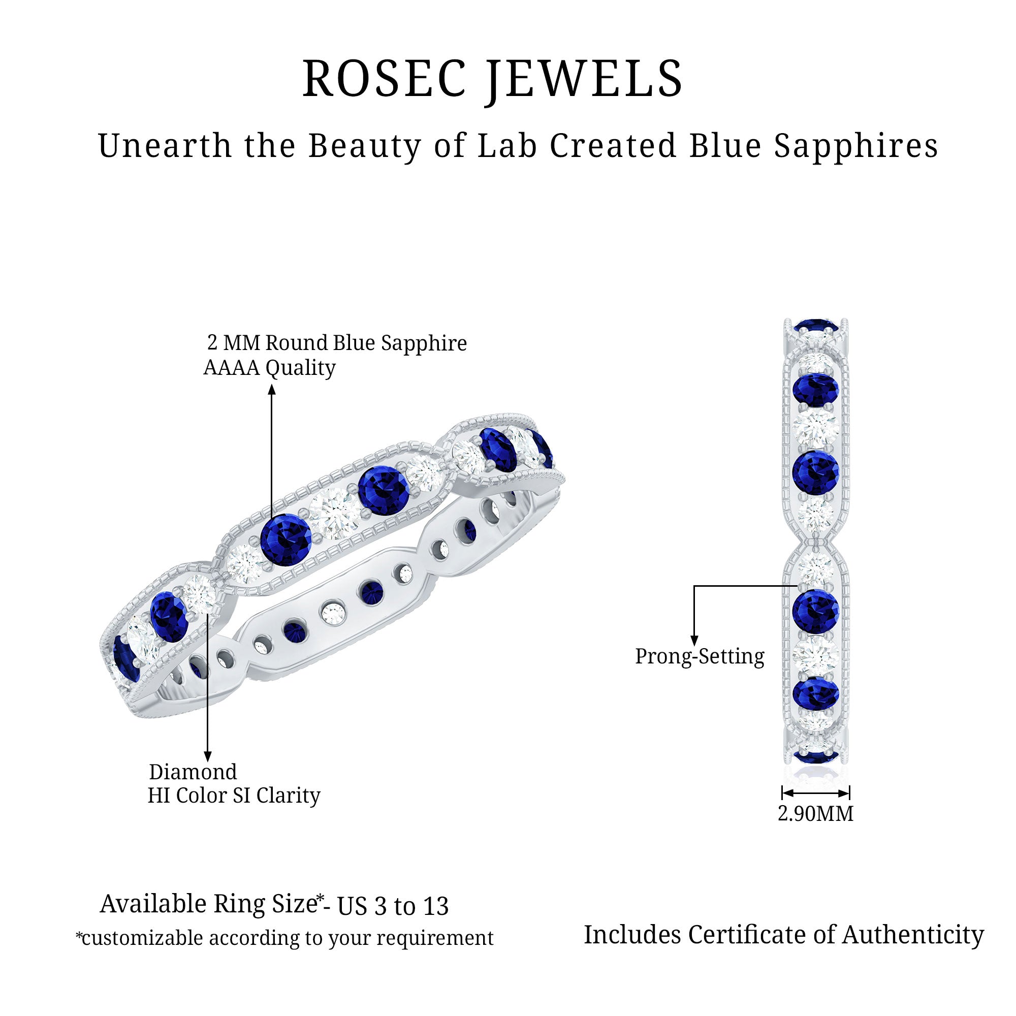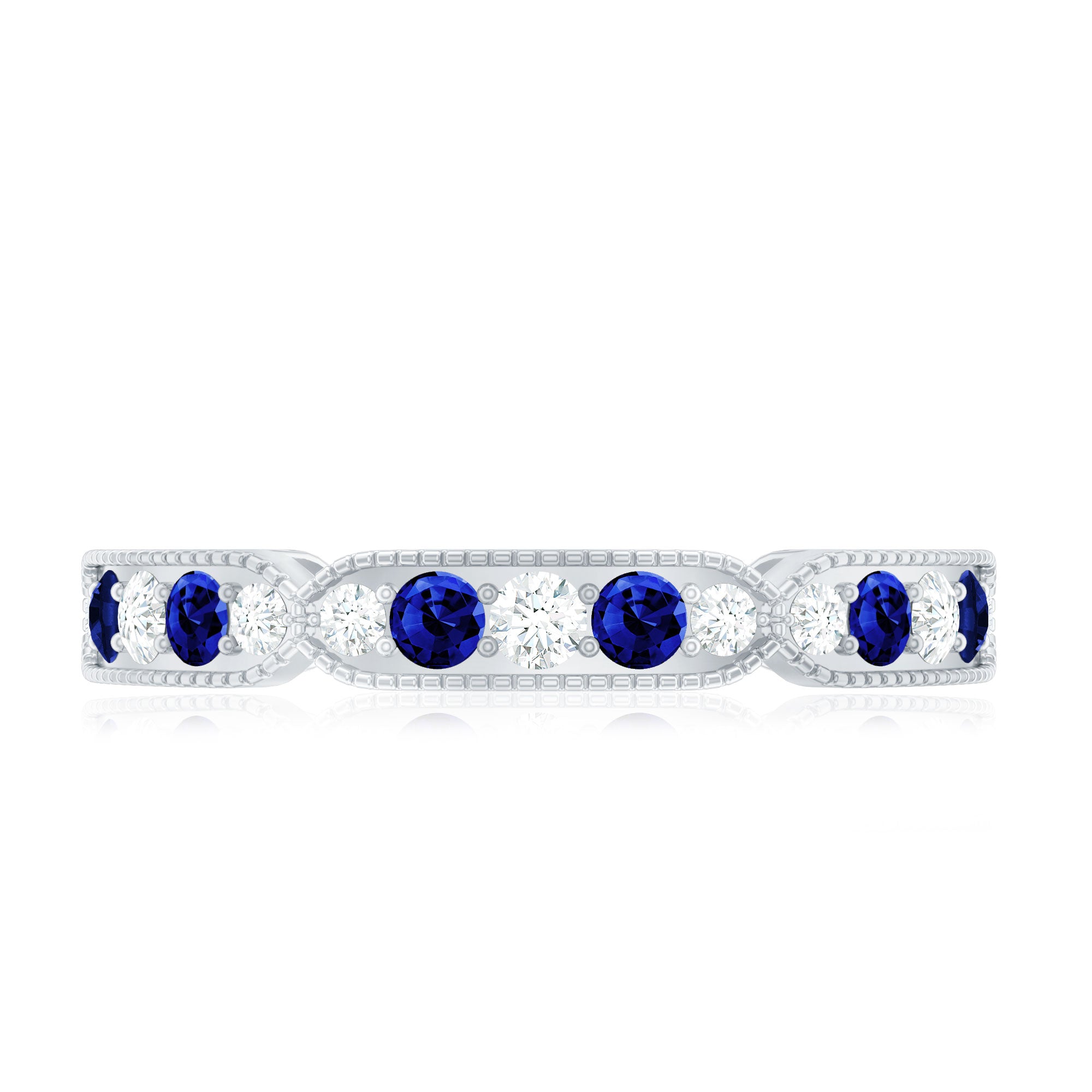 1.25 CT Lab Created Blue Sapphire Milgrain Full Eternity Ring with Diamond
