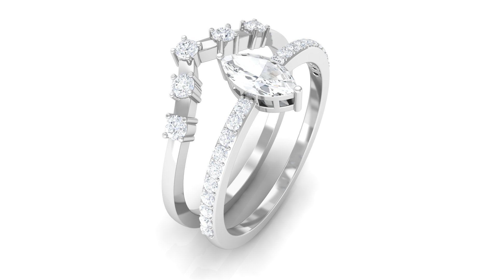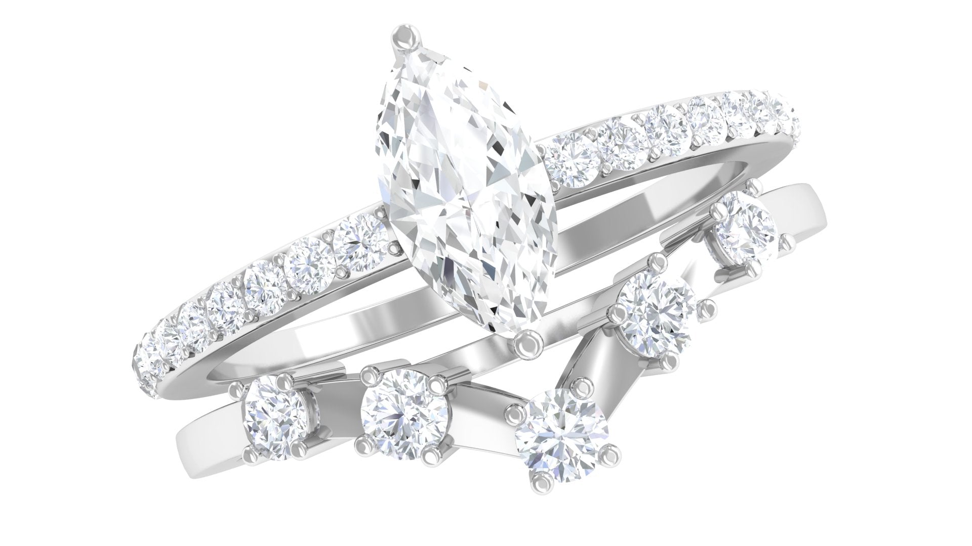 1.25 CT Marquise and Round Cut Zircon Solitaire Bridal Ring Set