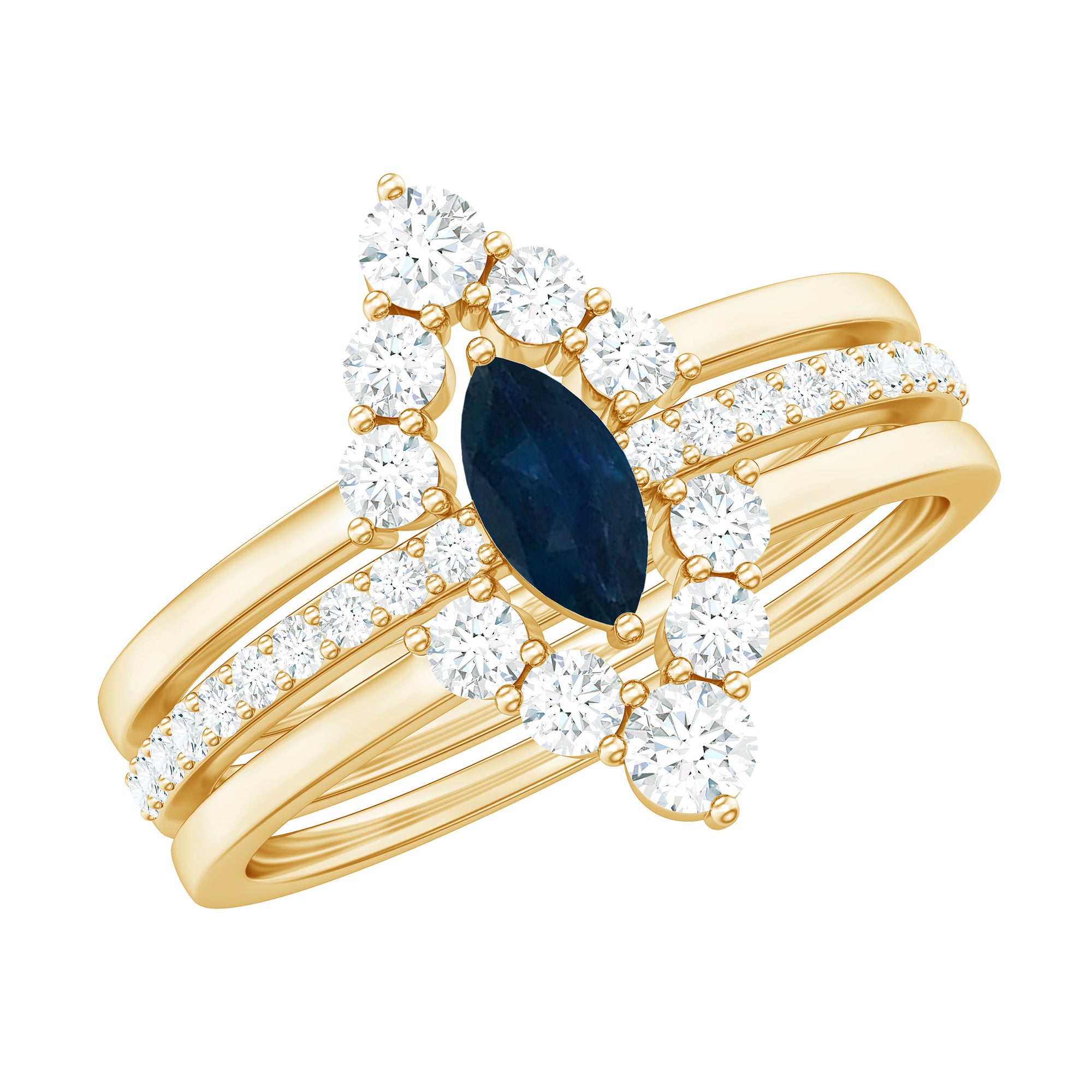 Marquise Blue Sapphire Solitaire Ring Set of 3 with Diamond