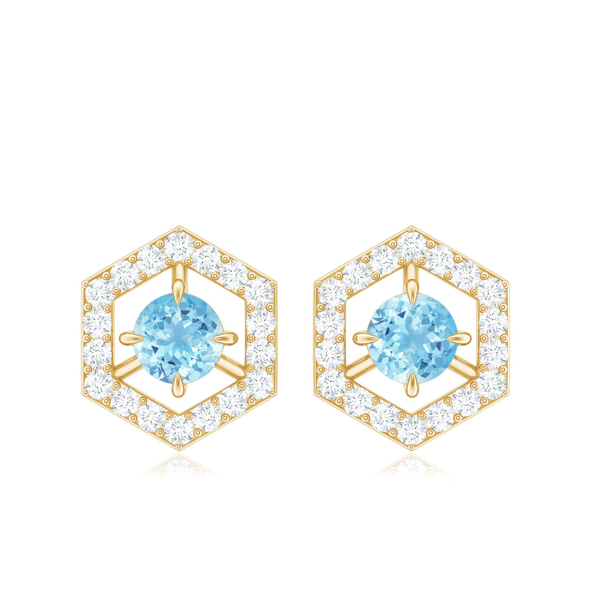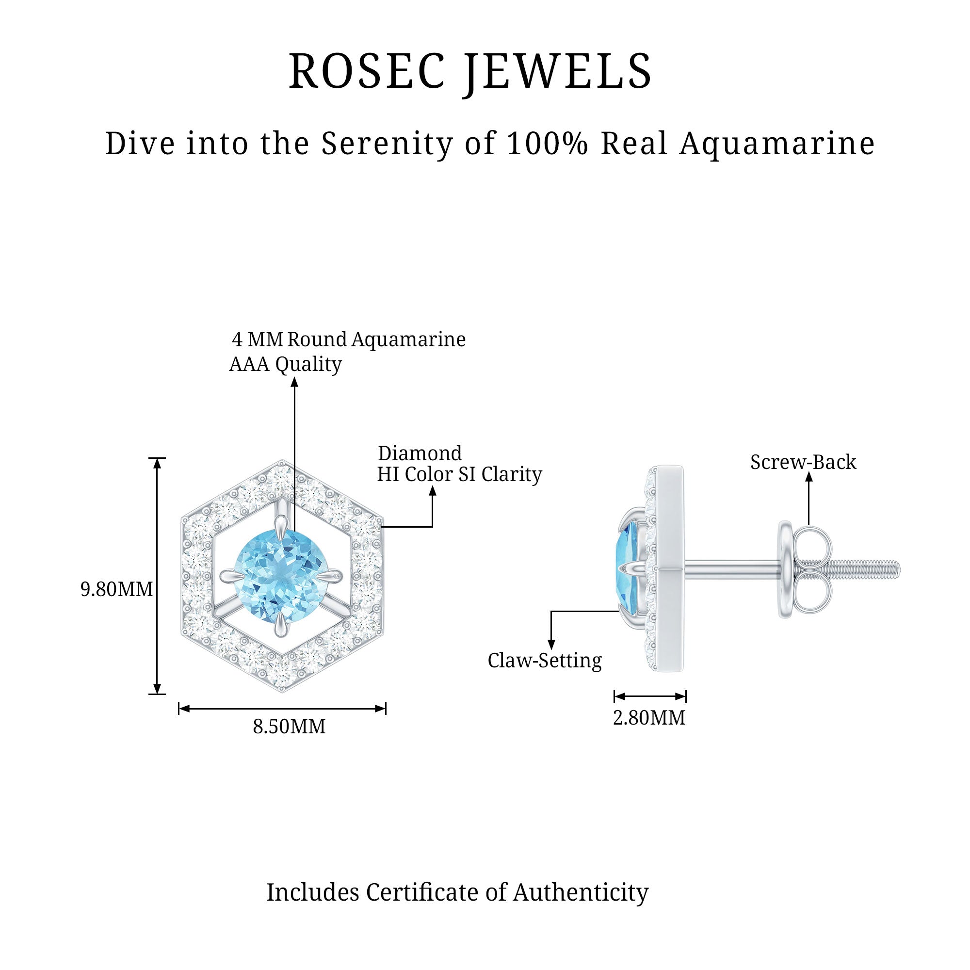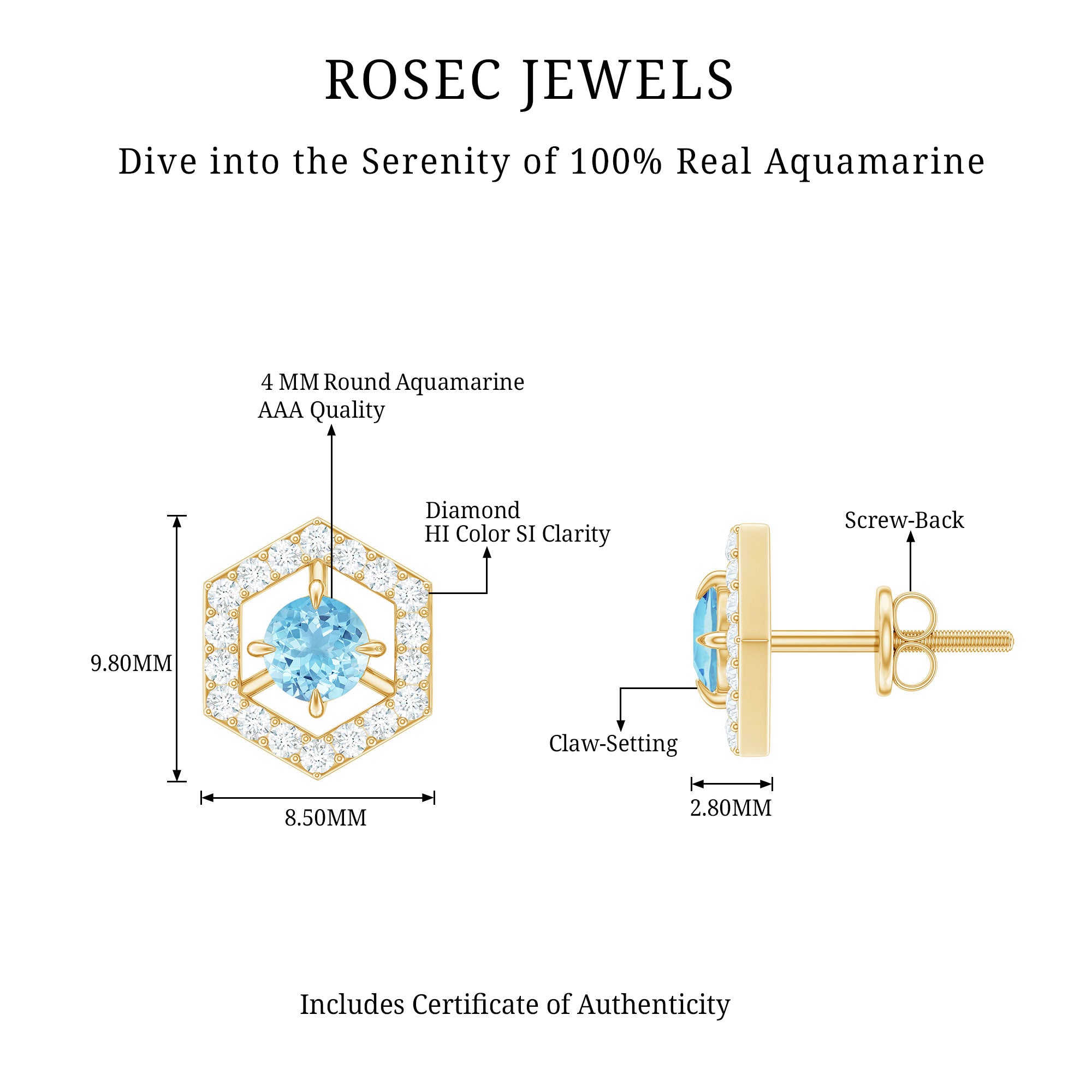 A symmetry of modern design and timeless elegance defines these Everyday Earrings, a striking statement for the contemporary jewelry lover. At the center of each piece sits a 4 mm Round Shape Aquamarine gemstone, its oceanic blue hue evoking serenity, perfectly centered within a Hexagon frame adorned with sparkling Diamond stones. The geometric precision of the design meets the beauty of Aquamarine, creating a captivating balance that feels both bold and sophisticated. Crafted with meticulous attention to detail and secured with Screw Back Closure, these Aquamarine Diamond Earrings promise comfort and effortless wear for any occasion. Whether paired with chic office attire or casual weekend wear, these Aquamarine Studs elevate every look with a touch of sparkle. Presented in an elegant jewelry box, these Aquamarine Ear Studs also make a thoughtful gift for birthdays, anniversaries or simply to celebrate someone special.