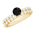 Mark a meaningful chapter in your love story with this beautifully designed Black Onyx Bridal Ring Set, crafted to reflect elegance, strength, and connection. At the heart of the engagement ring is a 5 MM round cut black onyx, held securely in basket setting. The engagement ring is accented with sparkling round diamonds along the band, offering a delicate contrast that enhances the center stone. Paired with this is a matching wedding band, designed to align perfectly and sit flush beside the engagement ring. The band features a row of round diamonds, adding extra brilliance and tying both pieces together in harmony. Whether worn as a Bridal Wedding Ring Set or separately, each ring carries its own charm and elegance. The sleek, stackable design ensures everyday comfort while maintaining a refined, graceful look. Crafted with AAA quality black onyx and HI-SI quality diamonds, the stones are hand-selected for their brilliance and quality. Available in US sizes 3 to 13, the Onyx and Diamond Wedding Set is made to fit comfortably and last through every moment. This piece comes packaged in an elegant jewelry box and includes a certificate of authenticity for added confidence. Timeless and modern all at once, this Engagement Ring with Wedding Band Set is a beautiful reminder of the bond you share and the future you are building together.