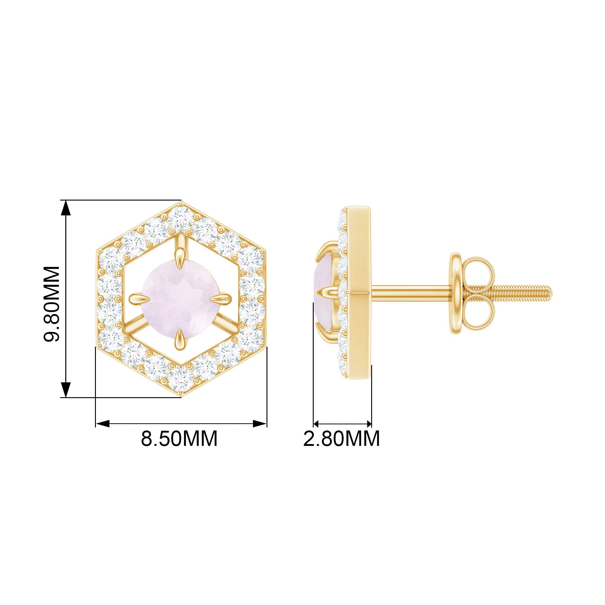 Feel unique with these Geometric Stud Earrings, adorned with Round Shape Rose Quartz Gemstone set as a center stone with Diamond Accent. These Minimal Stud Earrings are crafted in Solid Gold