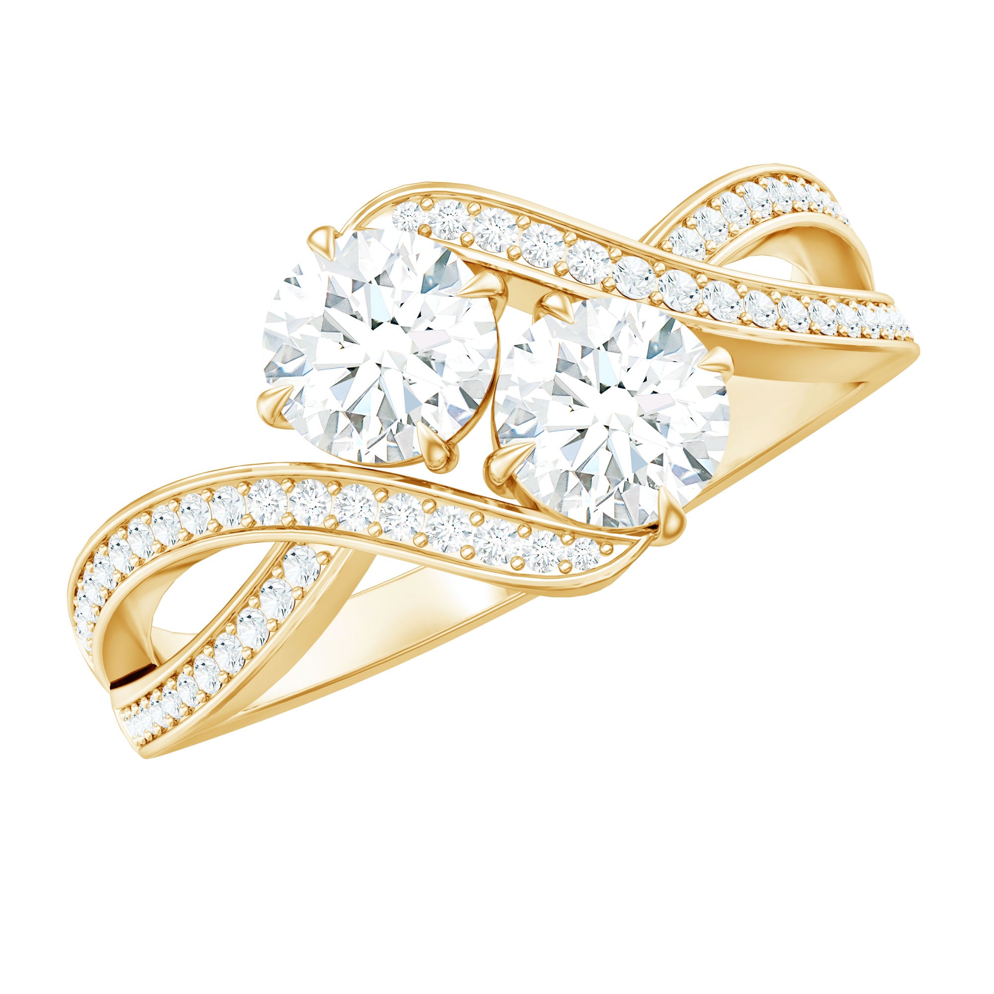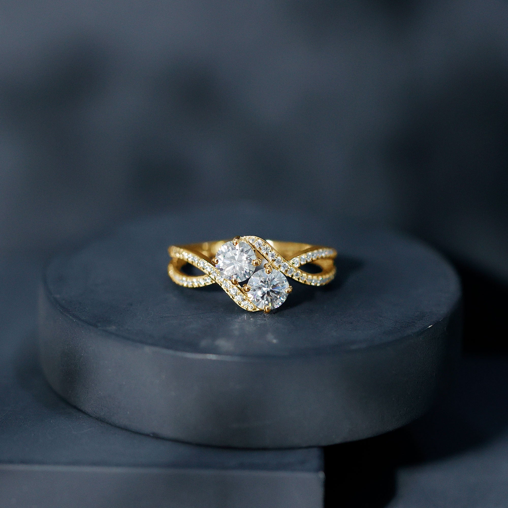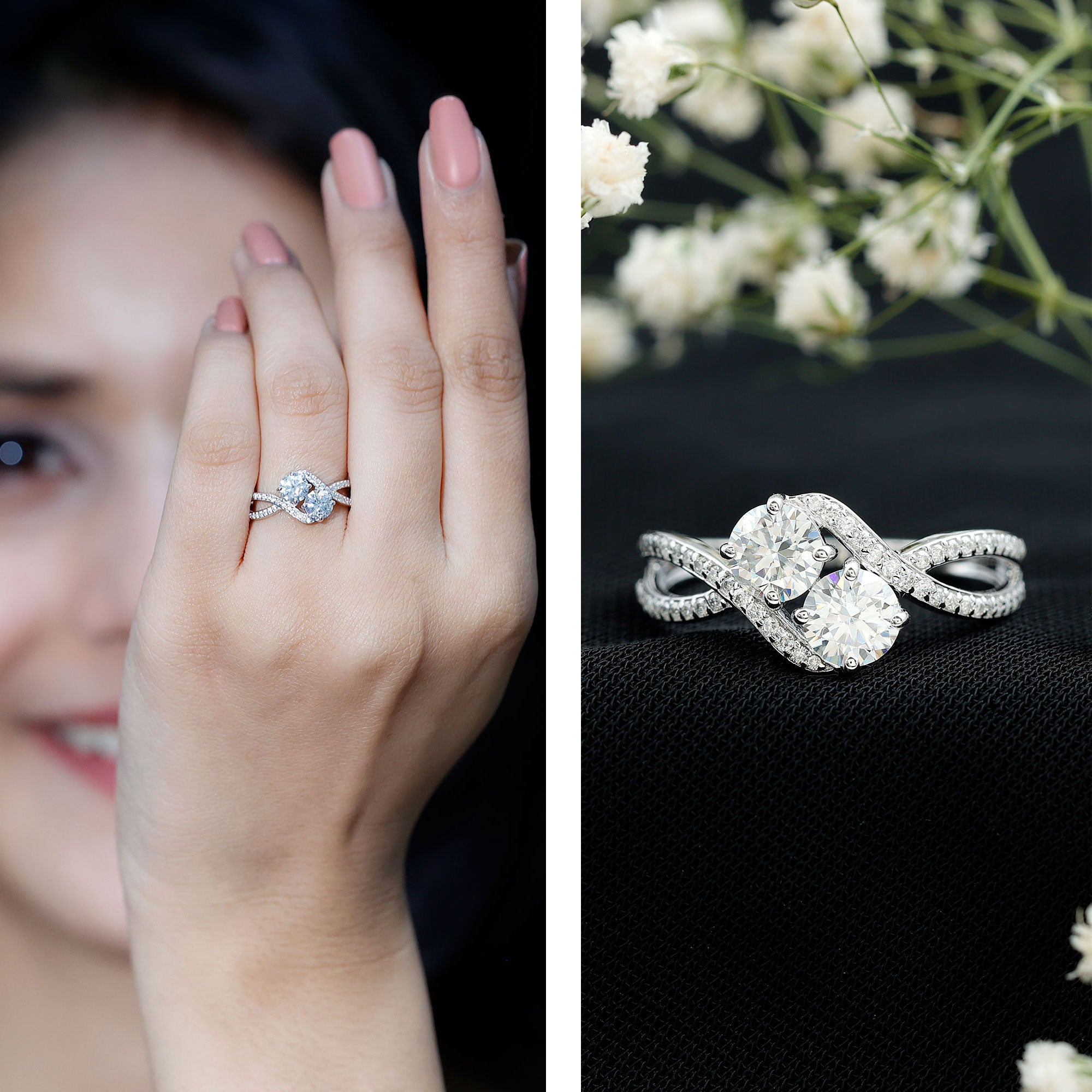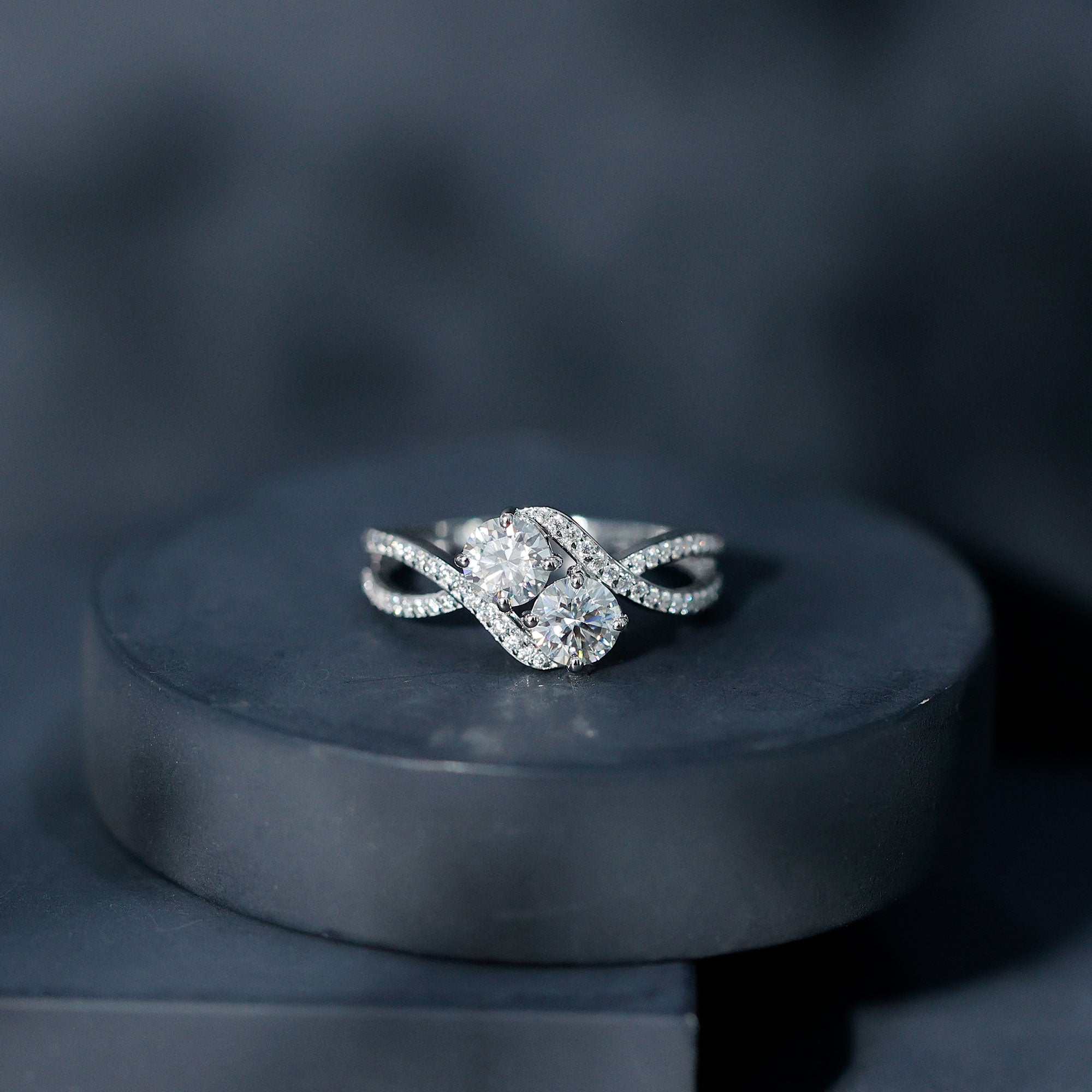 1.25 CT Moi et Toi Round Moissanite Bypass Two Stone Engagement Ring