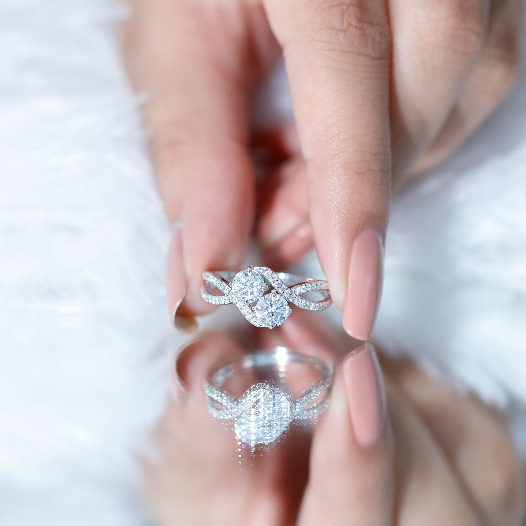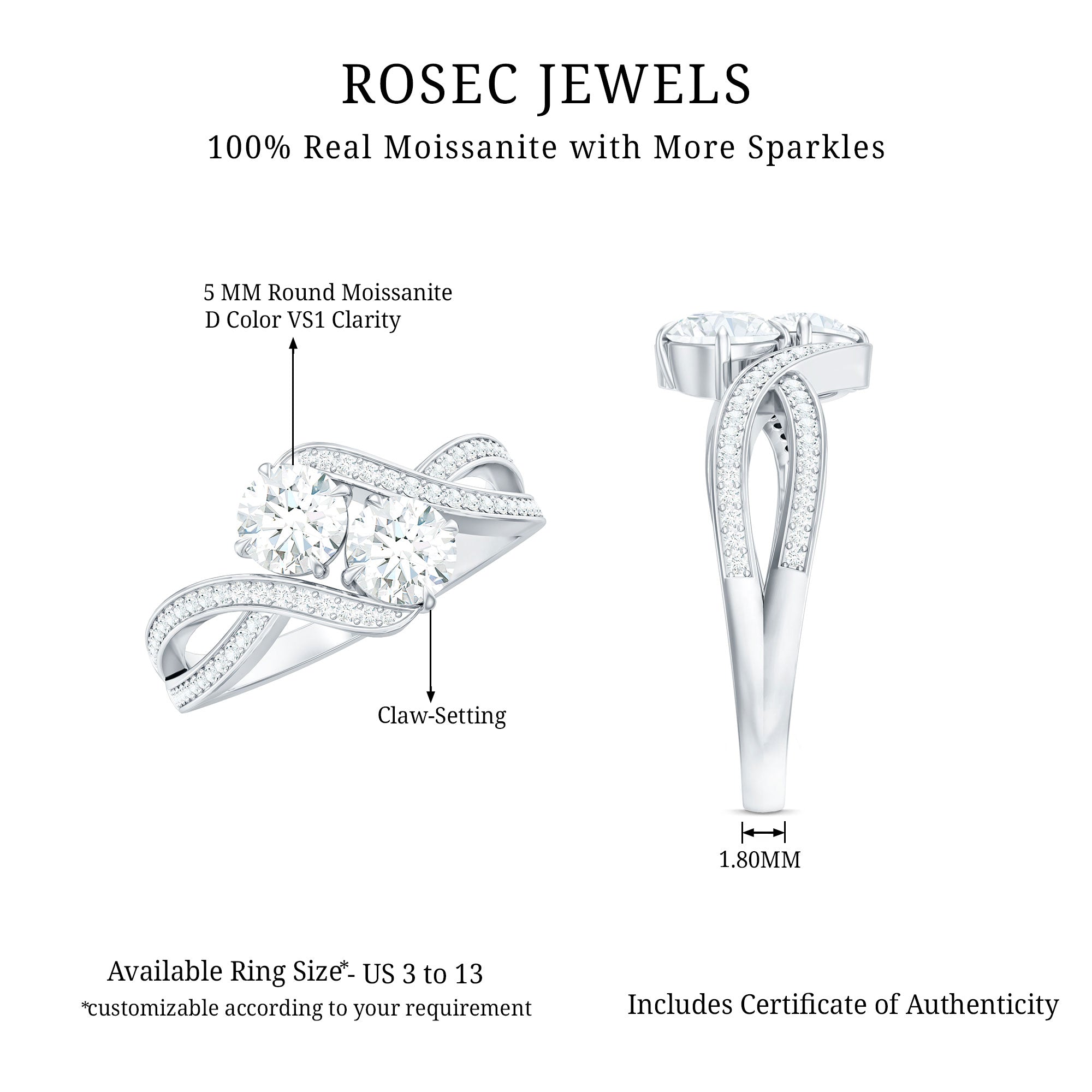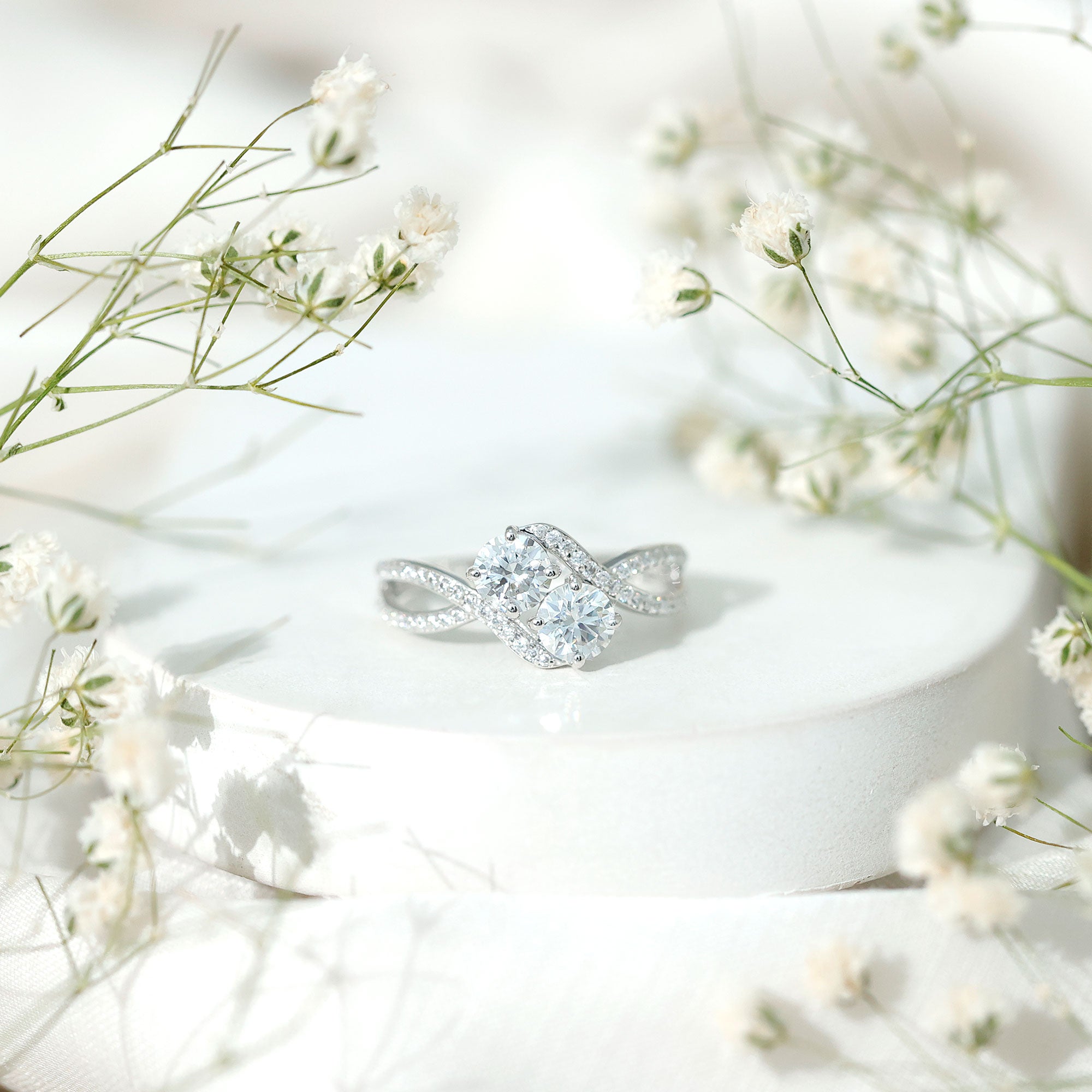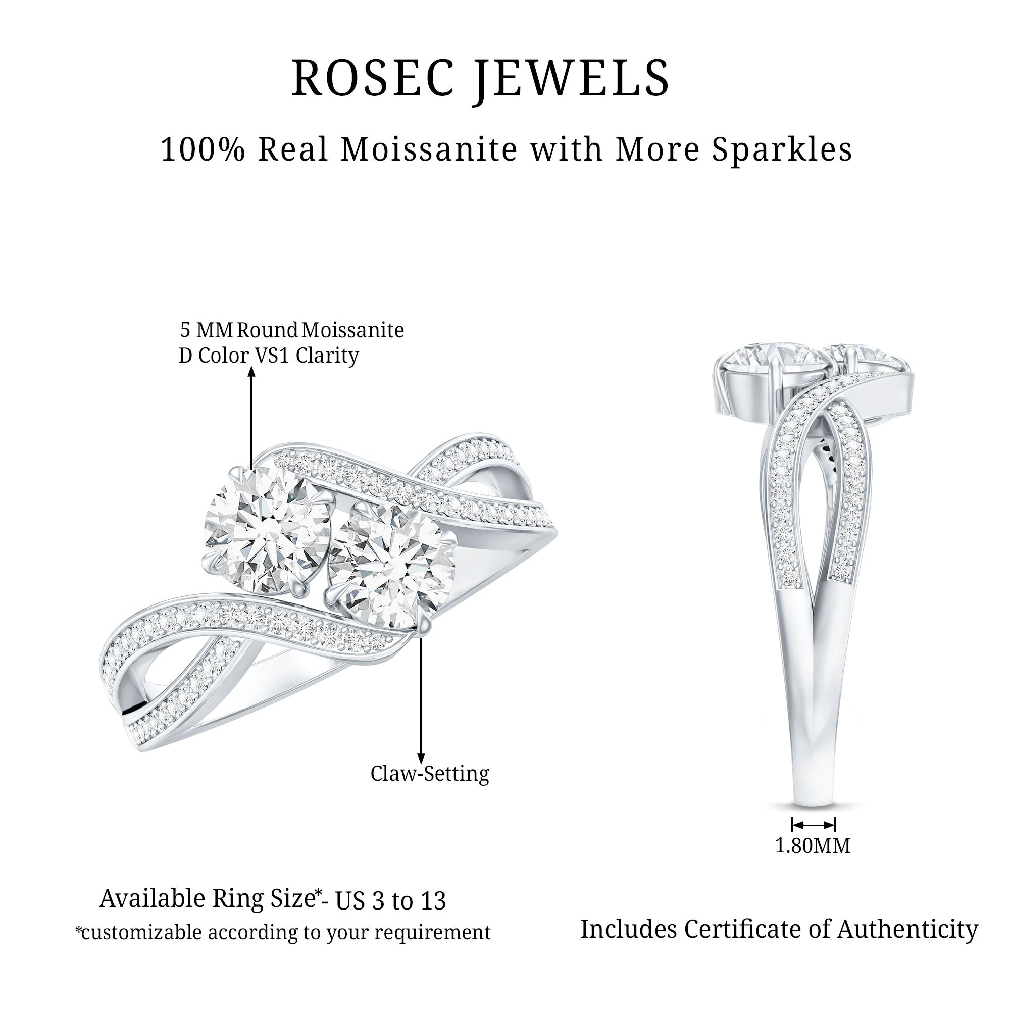 1.25 CT Moi et Toi Round Moissanite Bypass Two Stone Engagement Ring