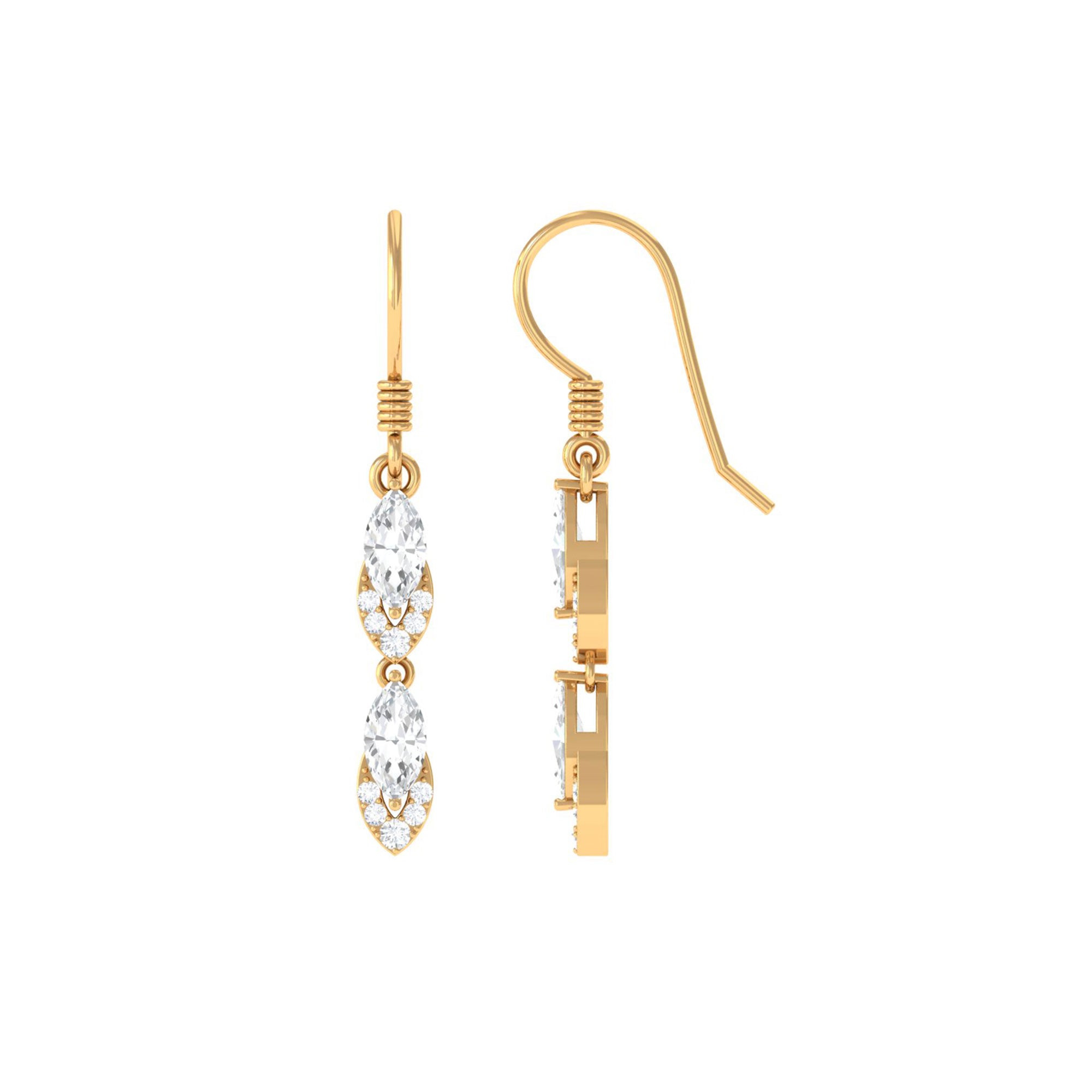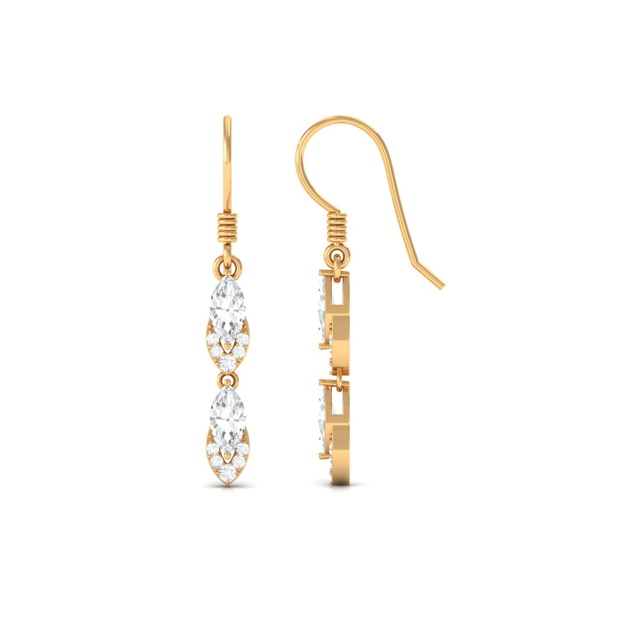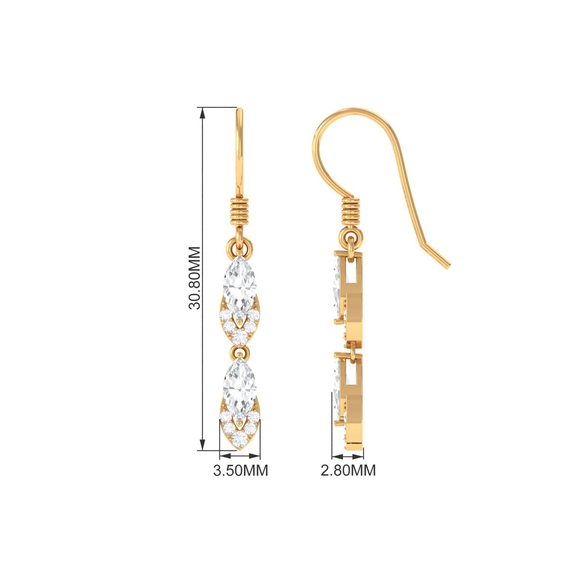 Add a touch of natural beauty to your everyday look with our Minimal Dangle Earrings. These stunning Moissanite earrings feature captivating Marquise and round cut Moissanite. Crafted from high-quality Gold, these Moissanite Dangle earrings not only enhance your radiance and warmth but also add a touch of sophistication and elegance to your style. Wear these classic dangler earrings with pride and showcase your love for natures beauty.