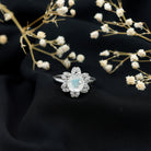1.25 CT Moonstone and Diamond Floral Halo Ring