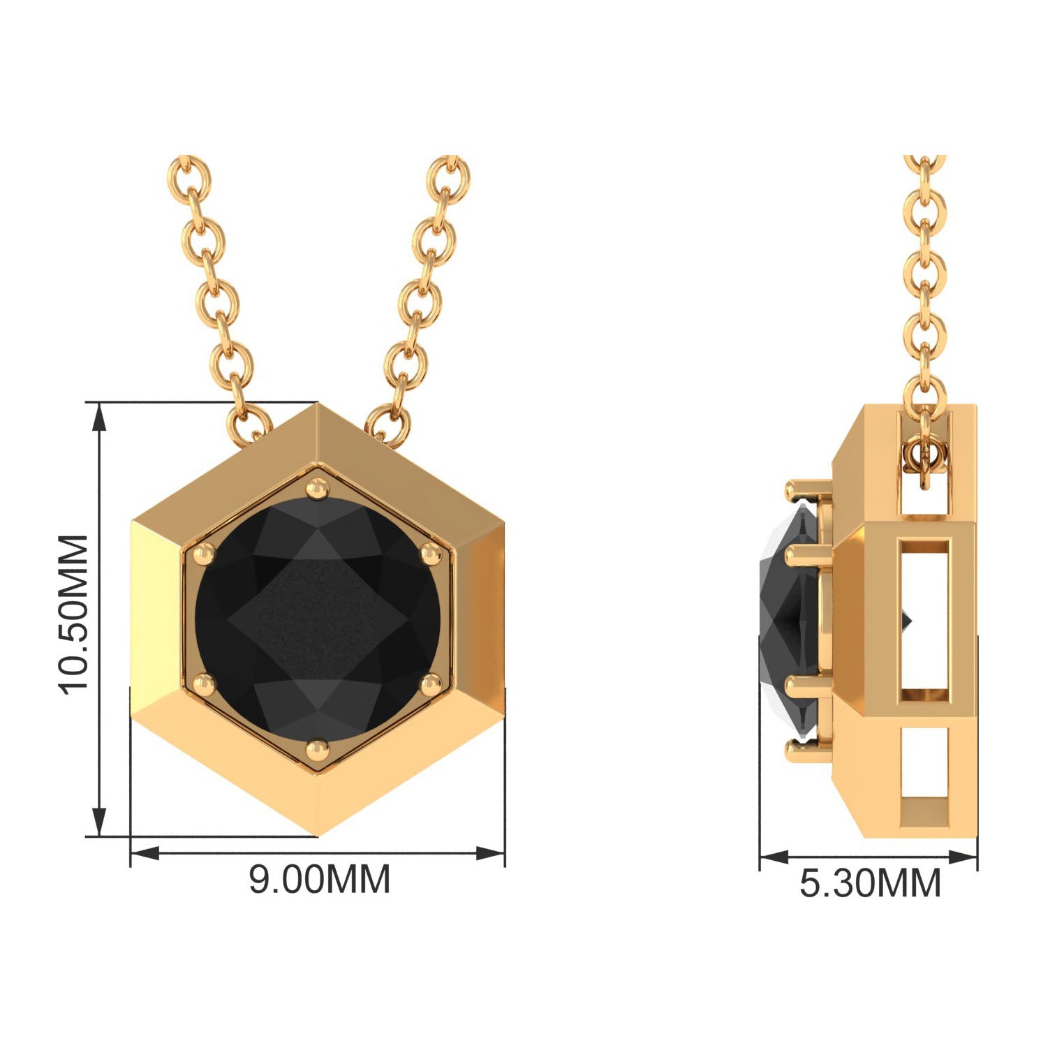 Make your beloved lady feel cherished and delighted by gifting her this elegant Solitaire Pendant, adorned with a Round Cut Black Onyx gemstone. The Black Onyx sits in a 6-prong setting within a charming hexagonal frame, crafted from lustrous gold.