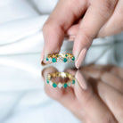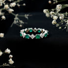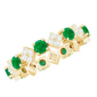 Beautifully crafted, the Emerald Eternity Ring adds a touch of sophistication to any look while carrying a deeper meaning of everlasting love. Designed to symbolize unity and commitment, it serves as a constant reminder of the bond that endures through every chapter of life. With its sleek and modern design, the Emerald and Diamond Band offers a perfect blend of minimalism and luxury, making it suitable for both daily wear and special occasions. The Eternity Wedding Band features round shaped AAA quality emeralds, each securely held in prong setting, alternating with sparkling HI-SI quality diamonds set over refined square motifs. The striking contrast between the deep green emeralds and the bright white diamonds creates a harmonious balance that catches the light beautifully from every angle. Every stone is carefully selected and certified for its superior quality, ensuring a piece that not only looks beautiful but also stands the test of time. Designed for comfort and elegance, the Emerald Wedding Band Ring sits gracefully on the finger, adding just the right amount of sparkle. Whether worn alone or paired with other rings, it brings sophistication and meaning to any jewelry collection.