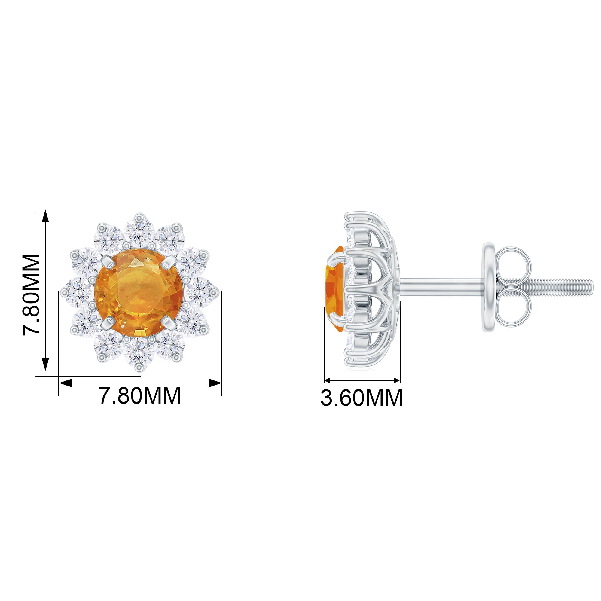 1.25 CT Orange Sapphire Flower Stud Earrings with Diamond Halo