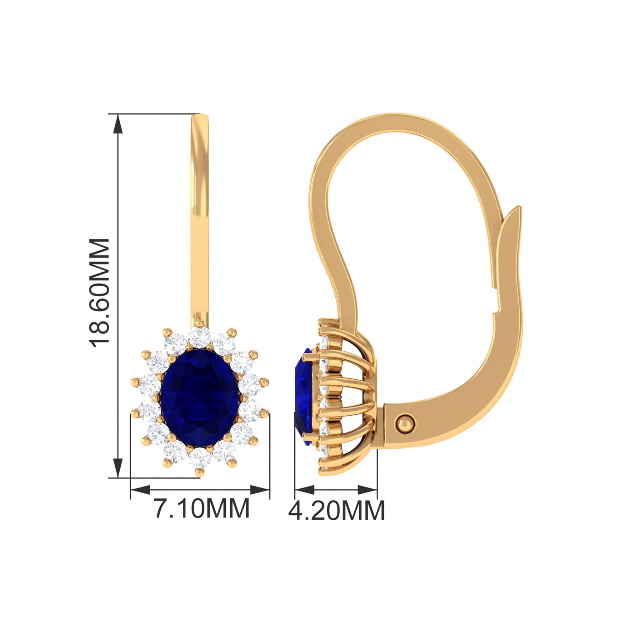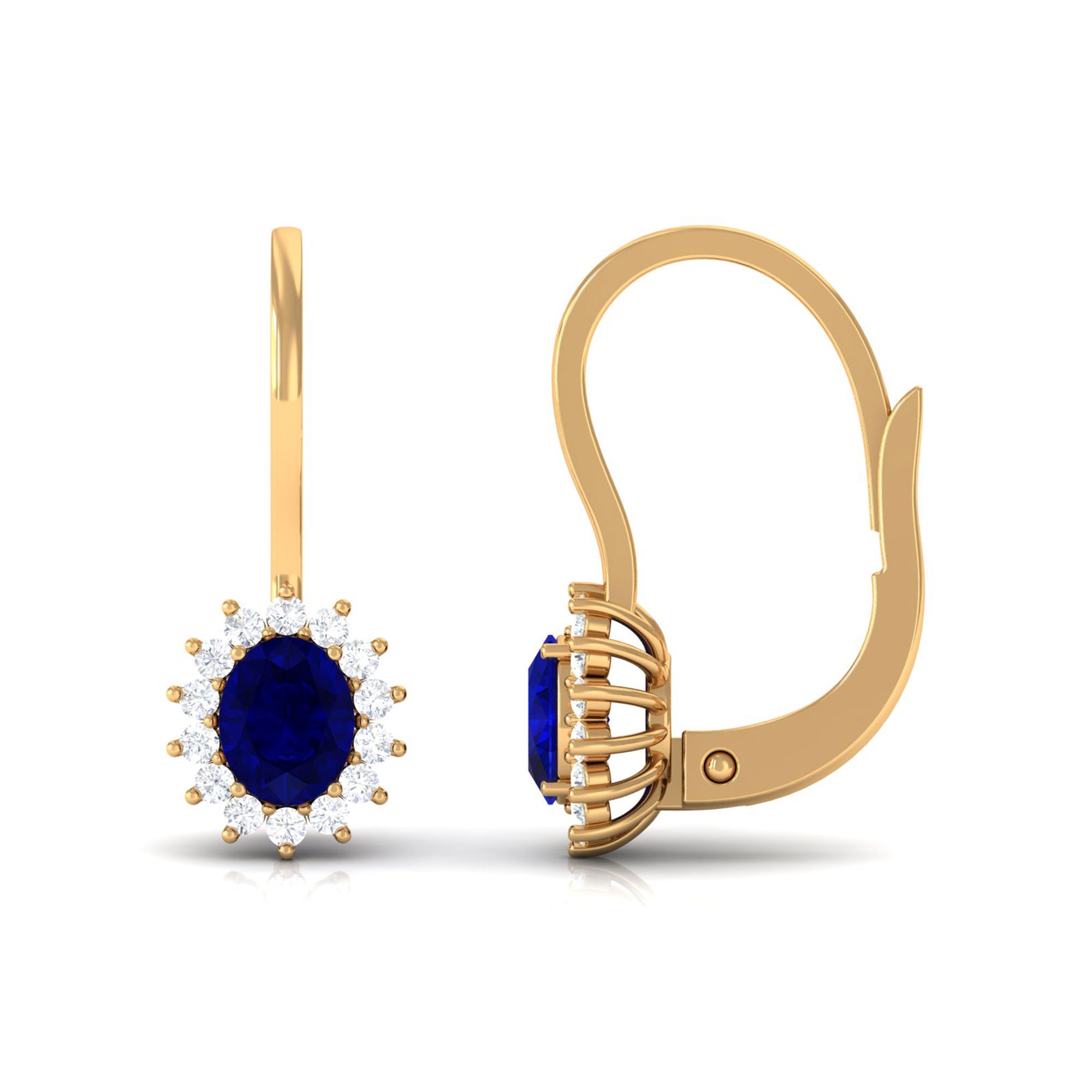 These blue sapphire stud earrings offer a perfect blend of style and simplicity. They feature an oval-cut blue sapphire surrounded by a glittering Diamond halo, all set in solid gold. The earrings are perfect for women born in September and make a stunning addition to any jewelry collection. The blue sapphire adds a rich pop of color, while the Diamond stones add extra sparkle and brilliance. The earrings are designed for comfort and easy wear, making them suitable for both special occasions and everyday wear. With their timeless beauty, these blue sapphire stud earrings are a gift that will be cherished for years to come.