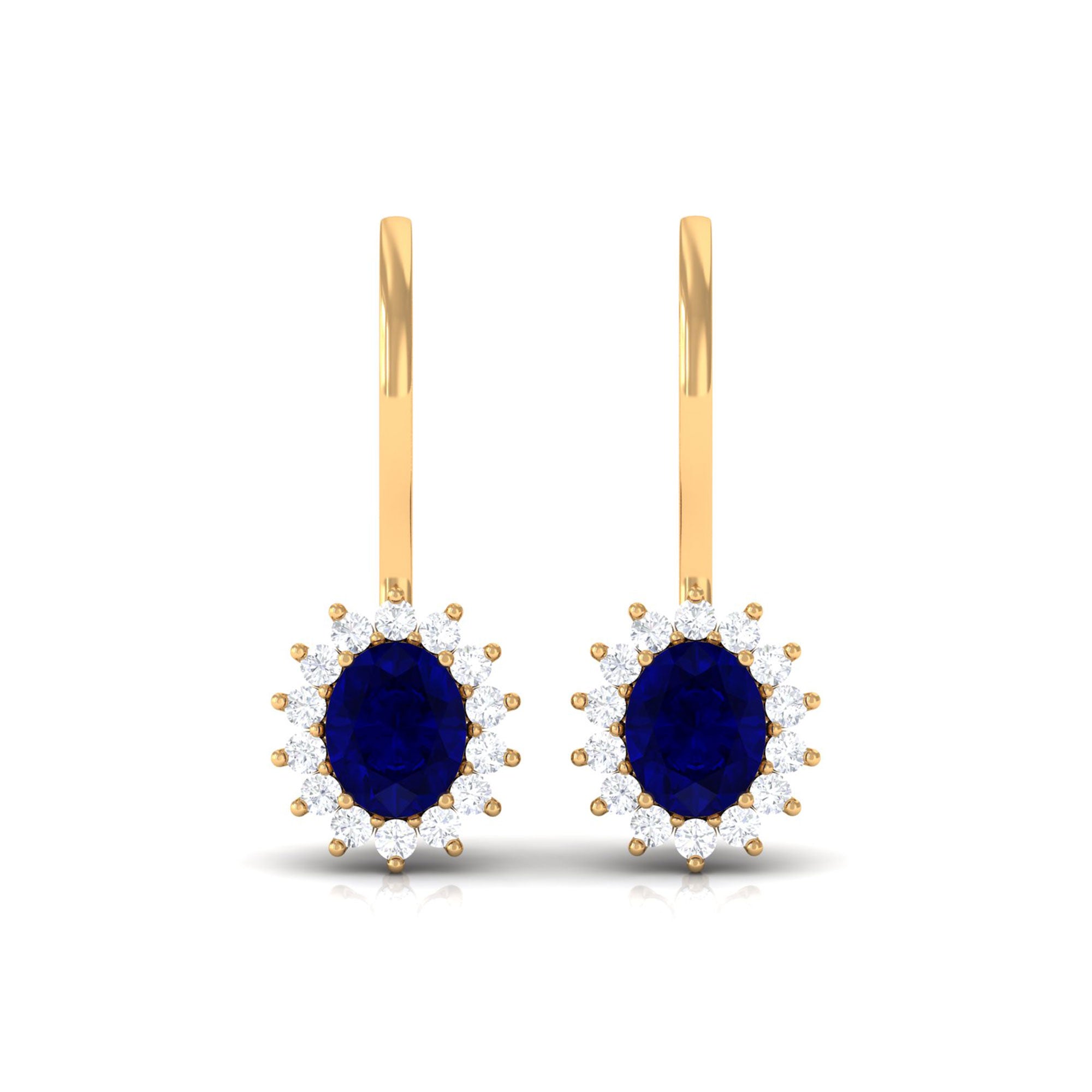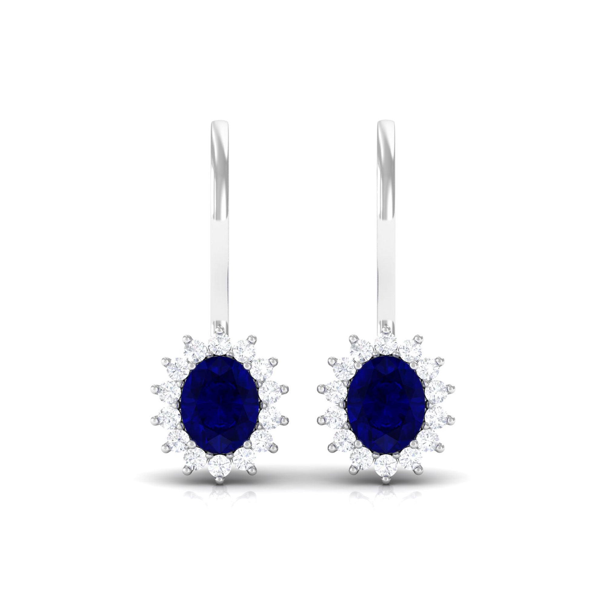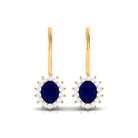 1.25 CT Oval Blue Sapphire Drop Earrings with Diamond Halo