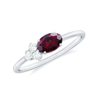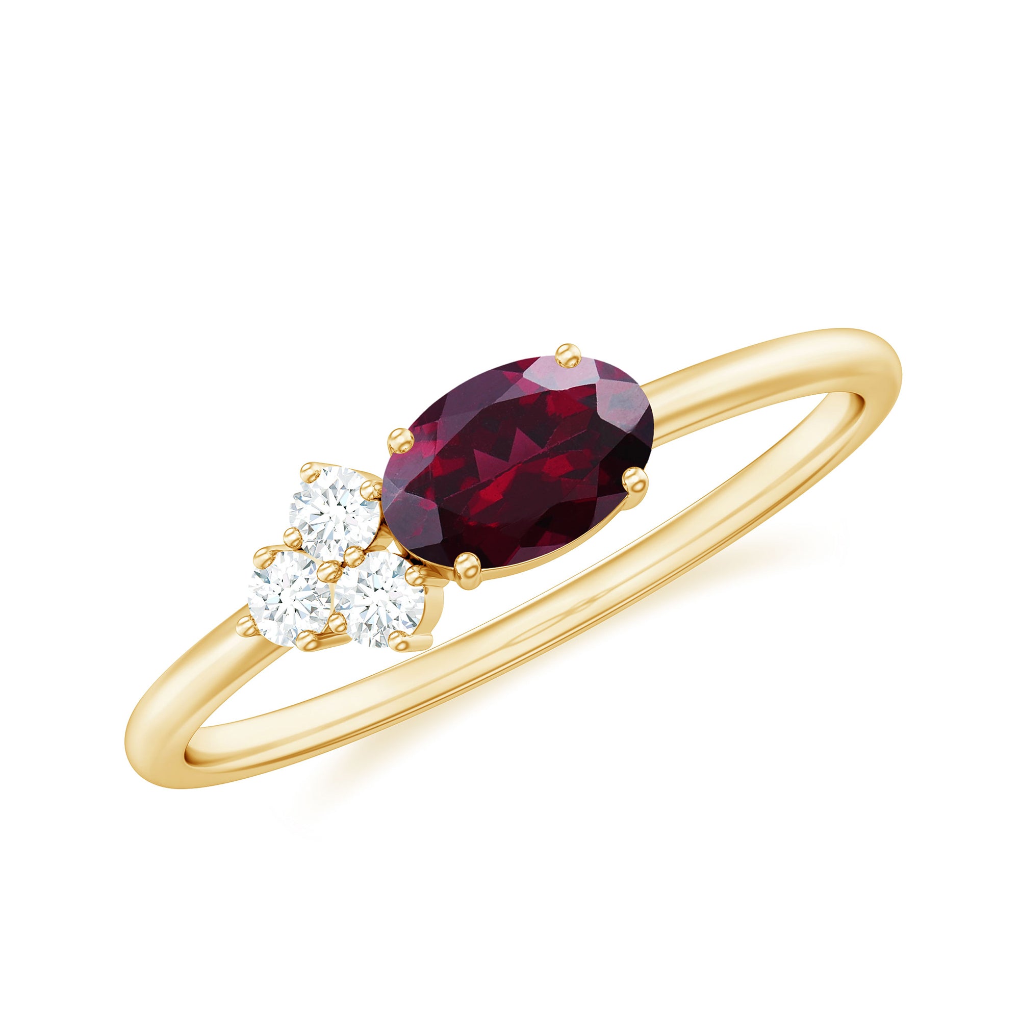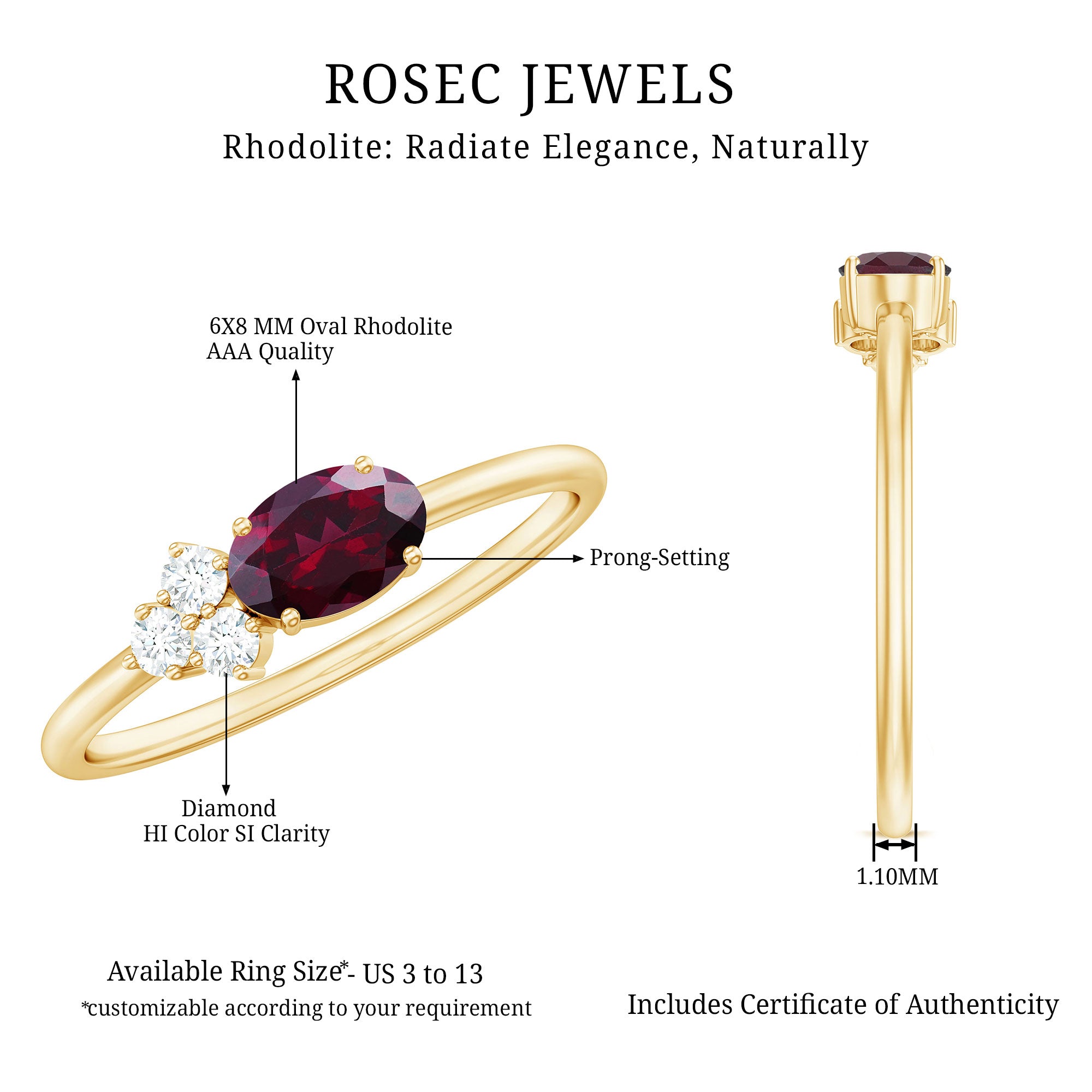 1.25 CT Oval Rhodolite Minimal East West Ring with Diamond Trio