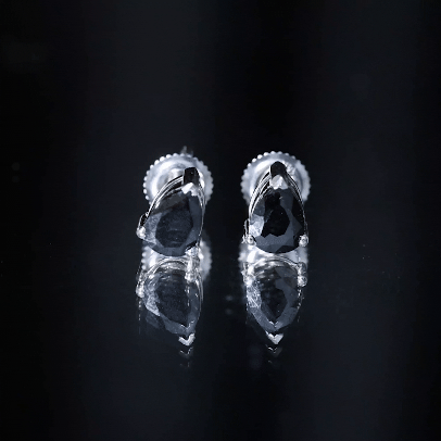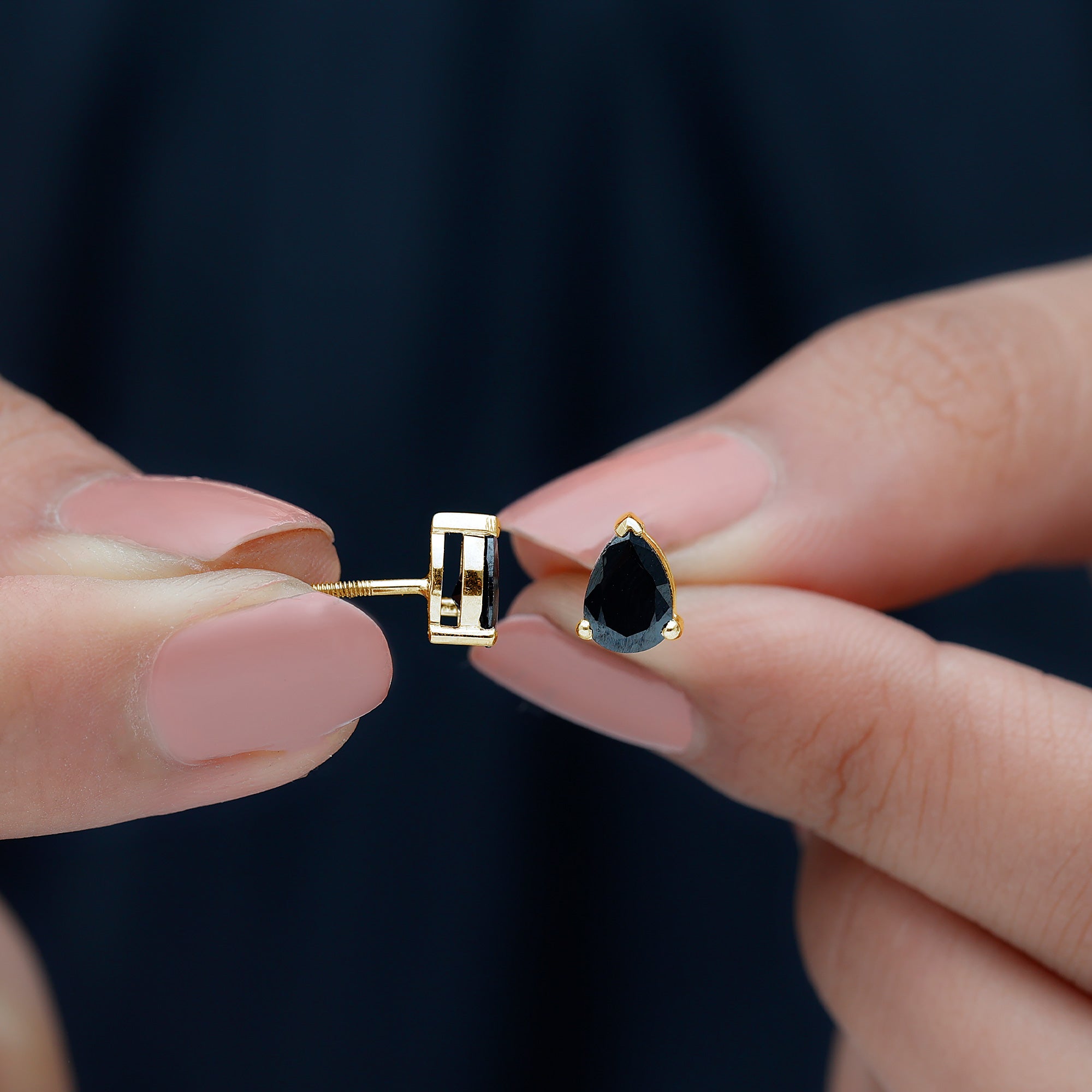 Certified Real Pear Shaped Black Spinel Earrings with Screw Back
