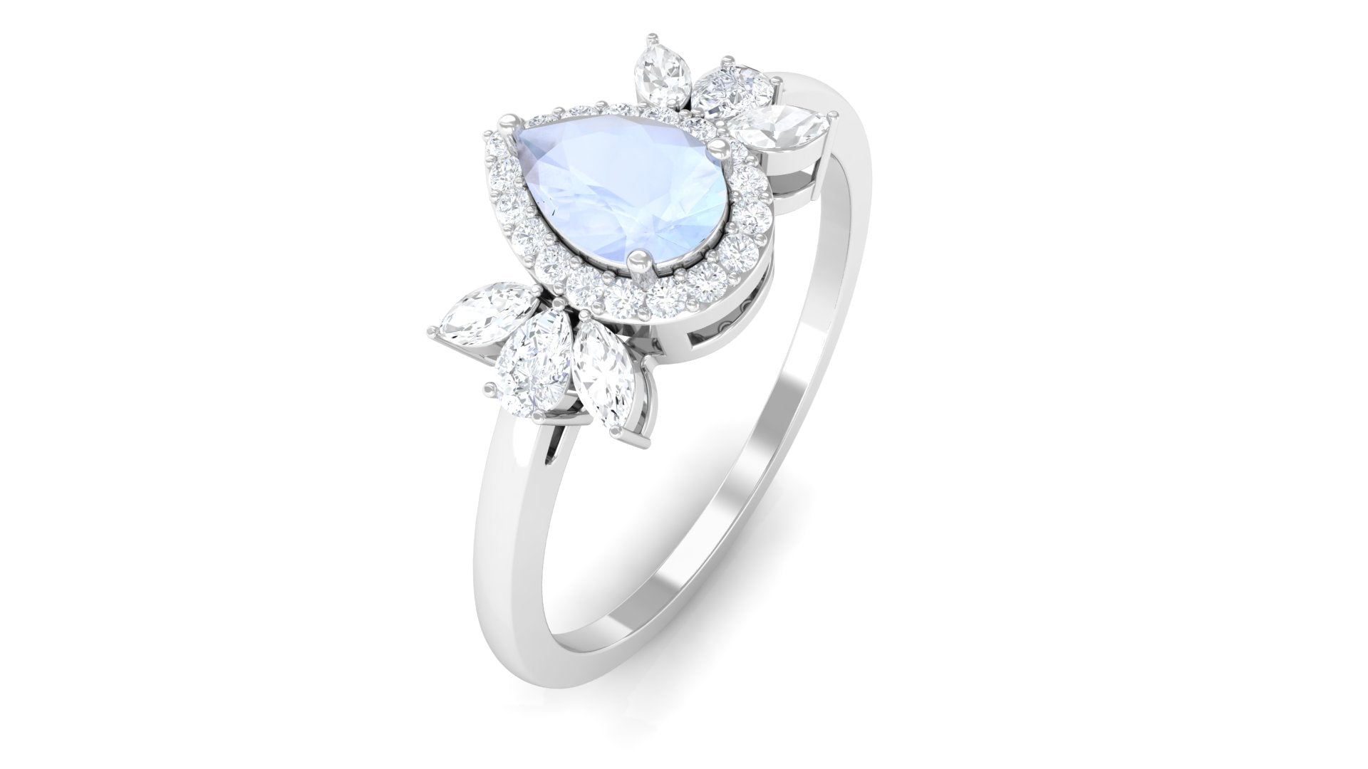 1.25 CT Pear Shape Moonstone Engagement Ring with Diamond Accent