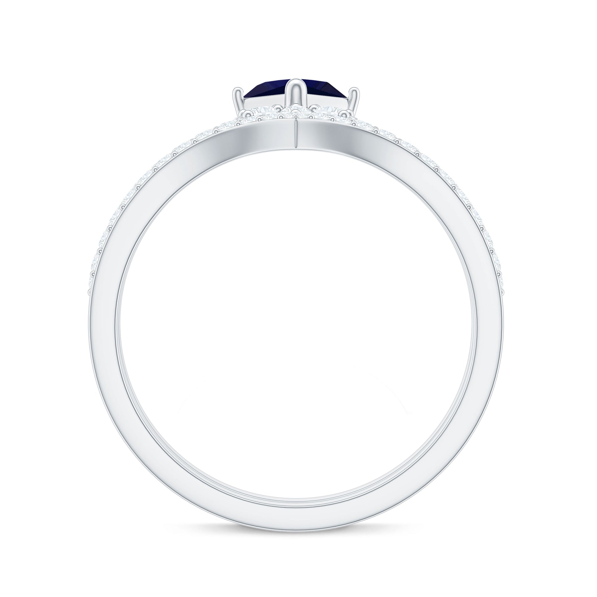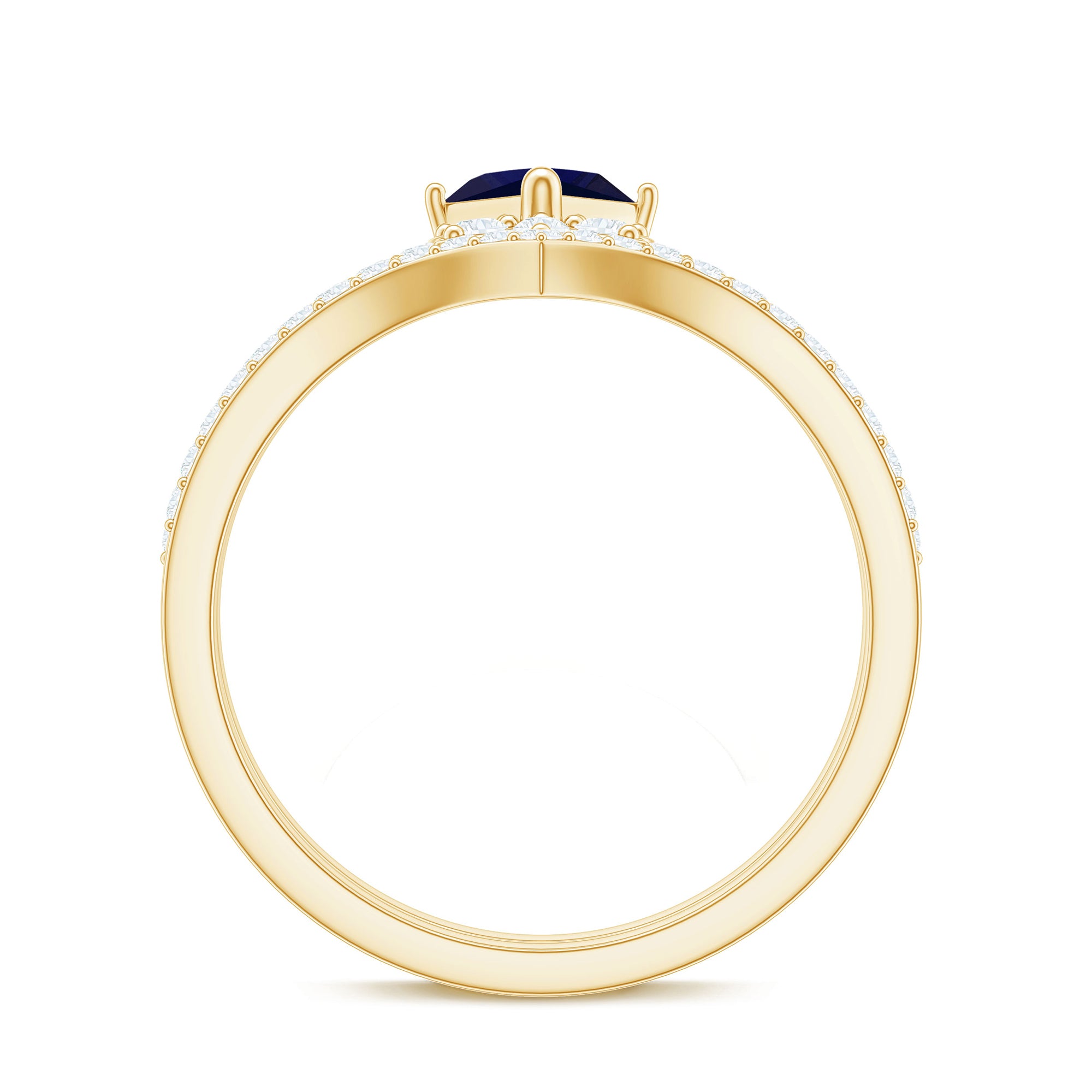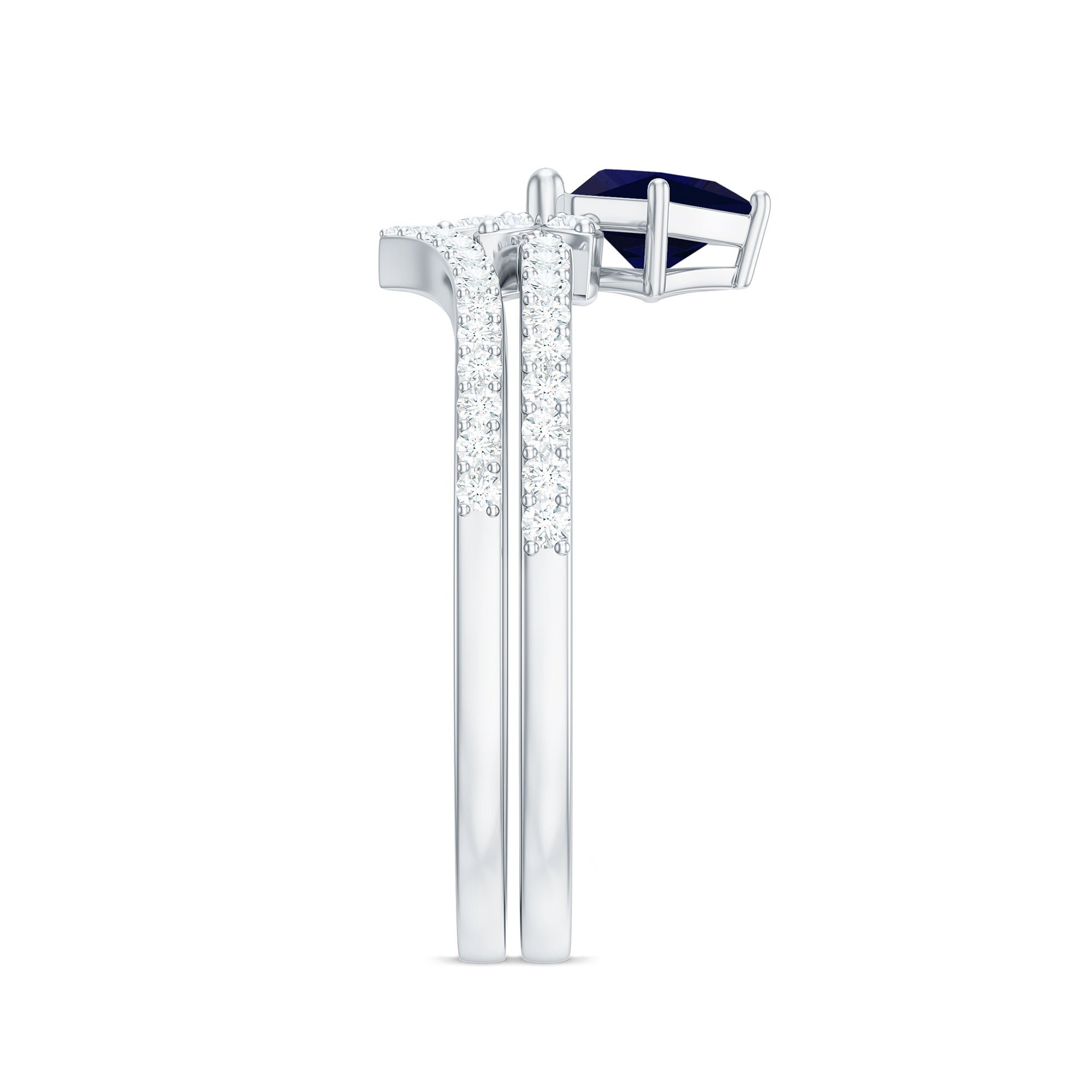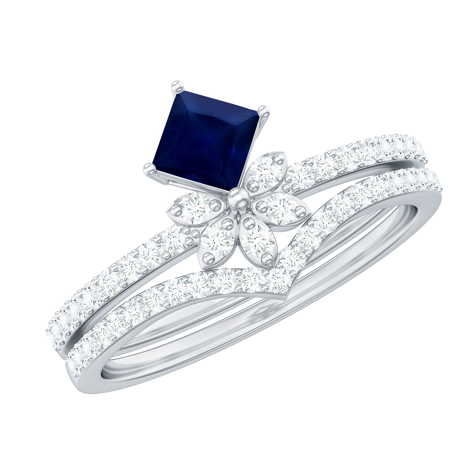 Princess Cut Solitaire Blue Sapphire and Diamond Designer Ring Set