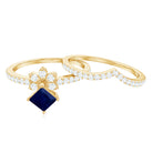 She will be surprised to see such a beautiful present, this Blue Sapphire Ring Set. Being adorned with Princess Cut Blue Sapphire in Prong Setting and Diamond on Flower Ring Set. Composed of Gold, this Designer Ring Set is a special jewelry for her.
