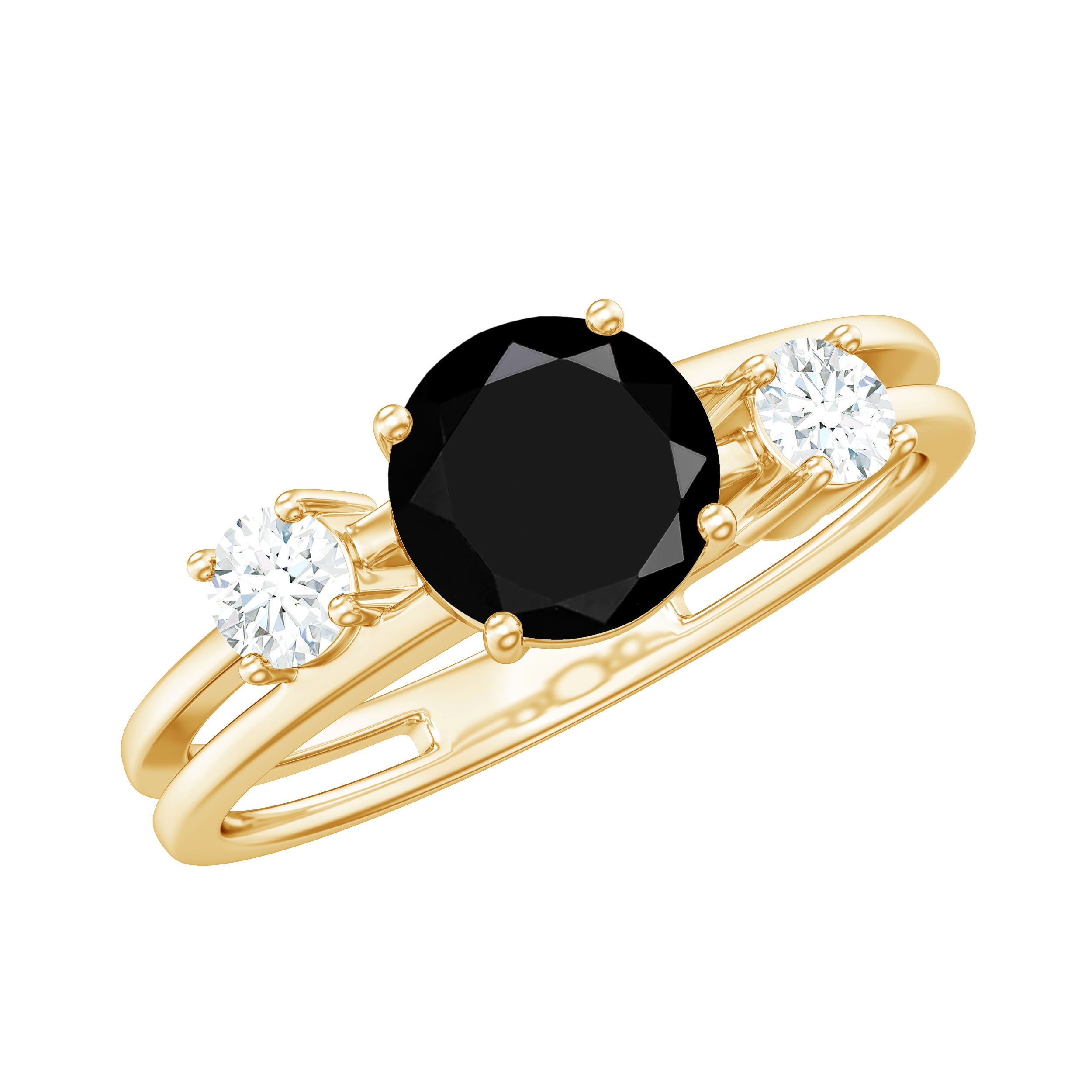1.25 CT Real Black Diamond Solitaire Double Band Ring with Moissanite