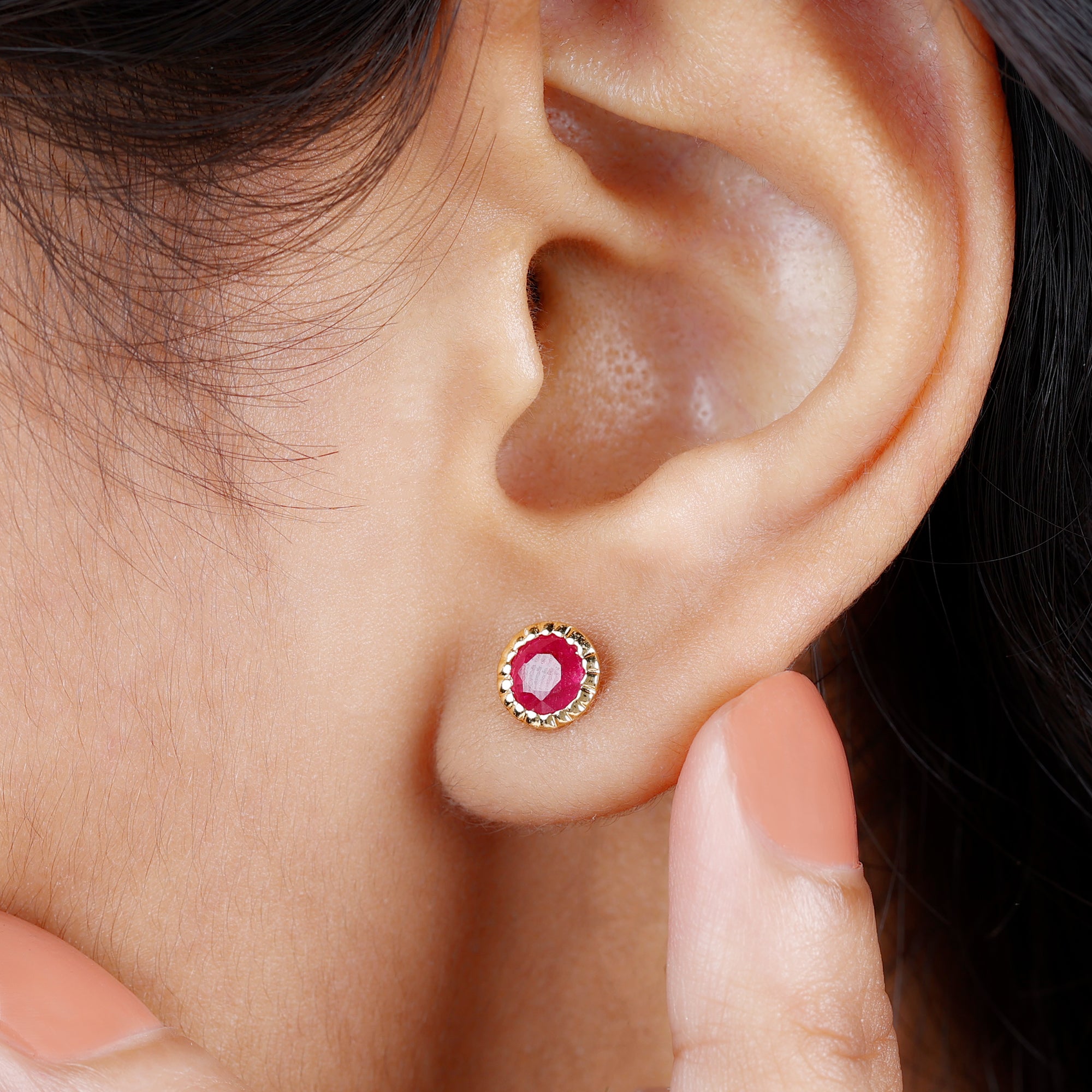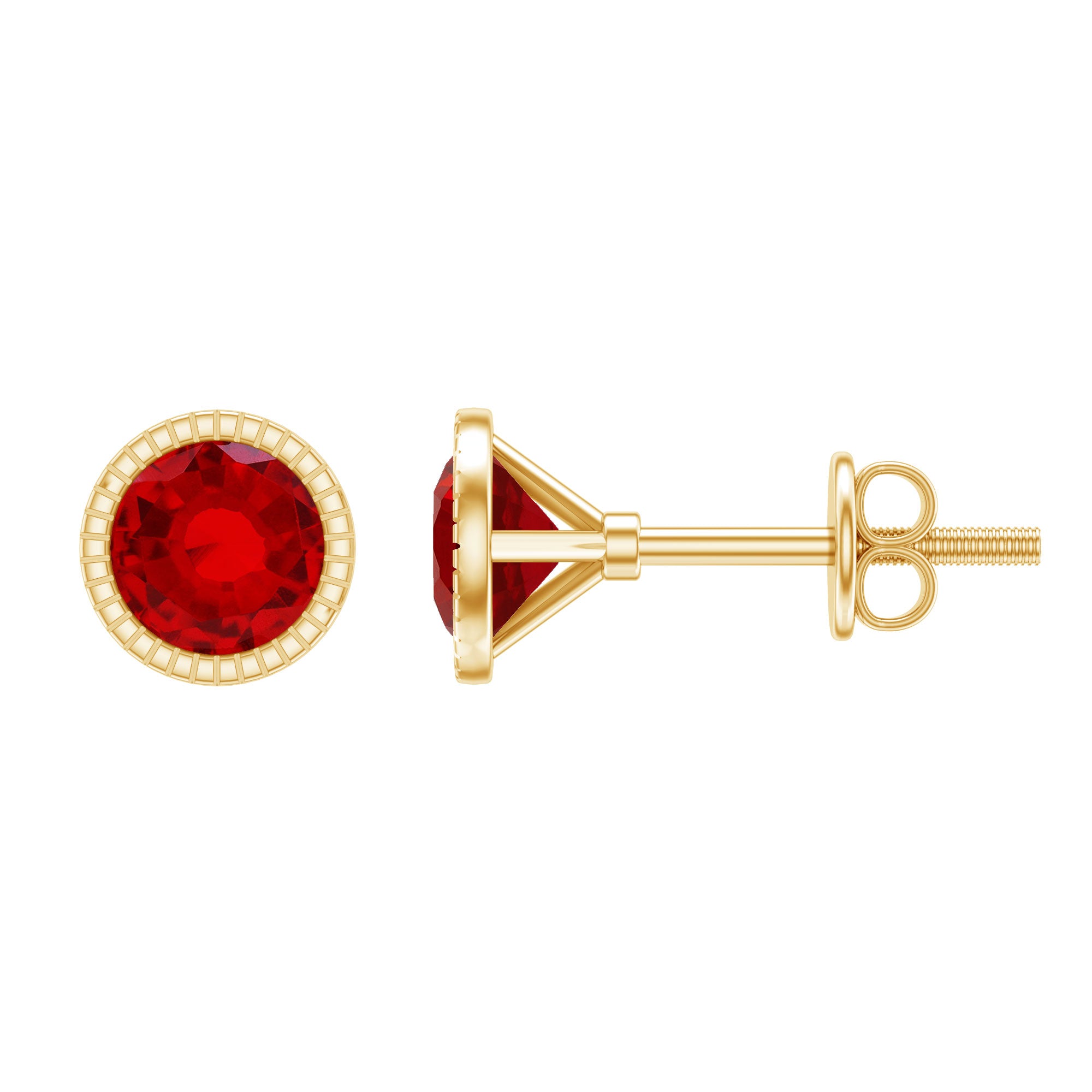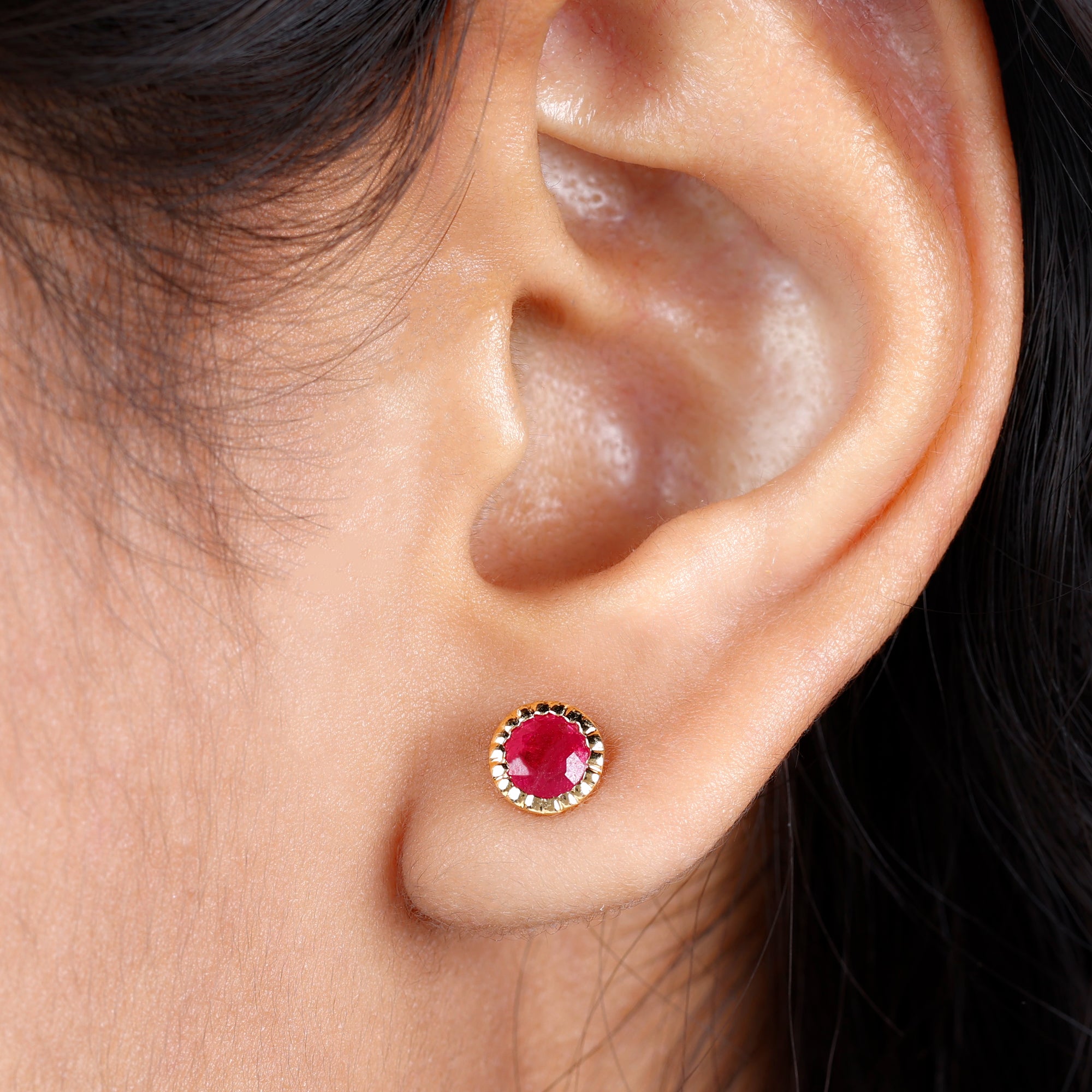 1.25 CT Round Cut Created Ruby Solitaire Stud Earring in Gold