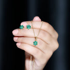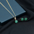 1.25 CT Round Cut Emerald Floral Pendant and Earring Set