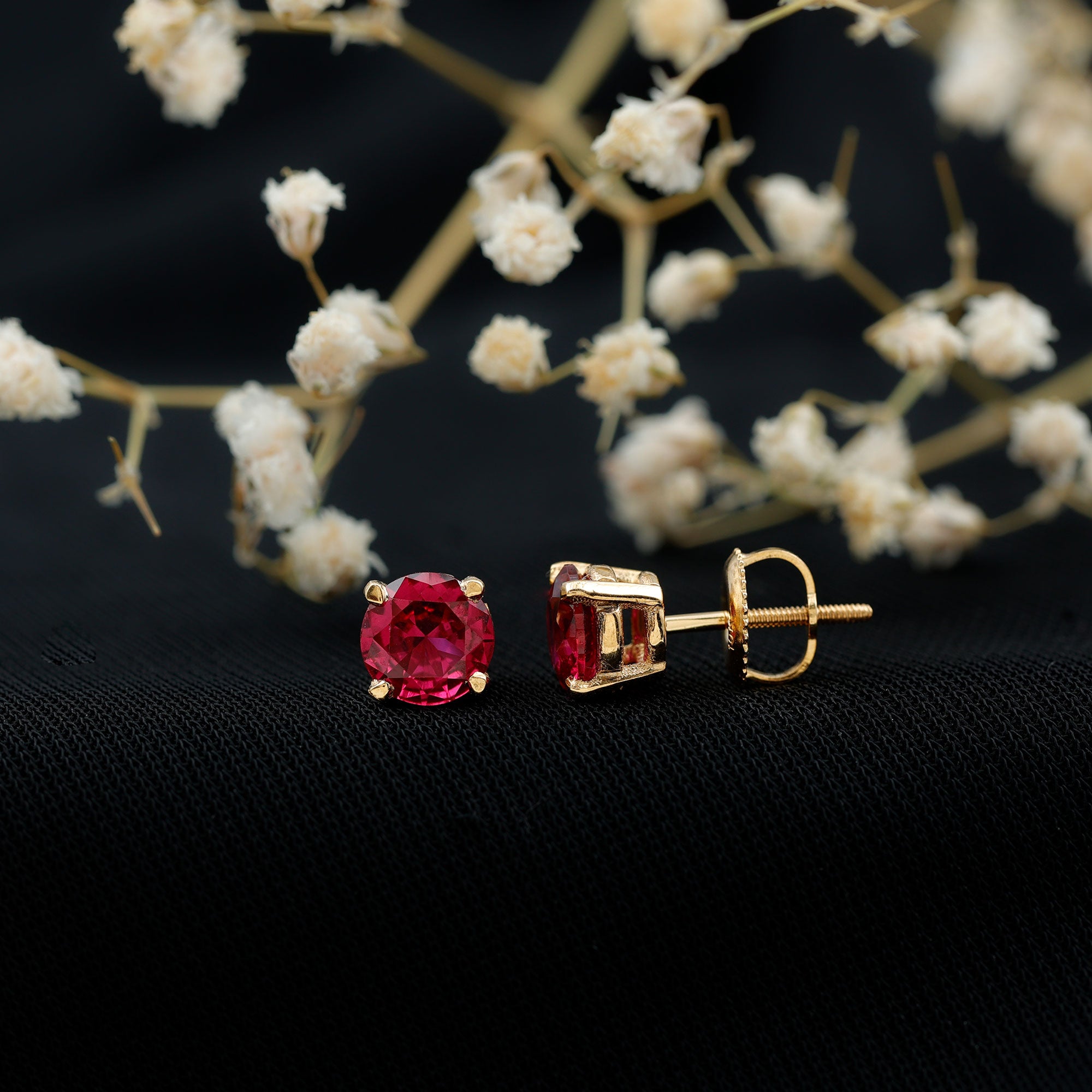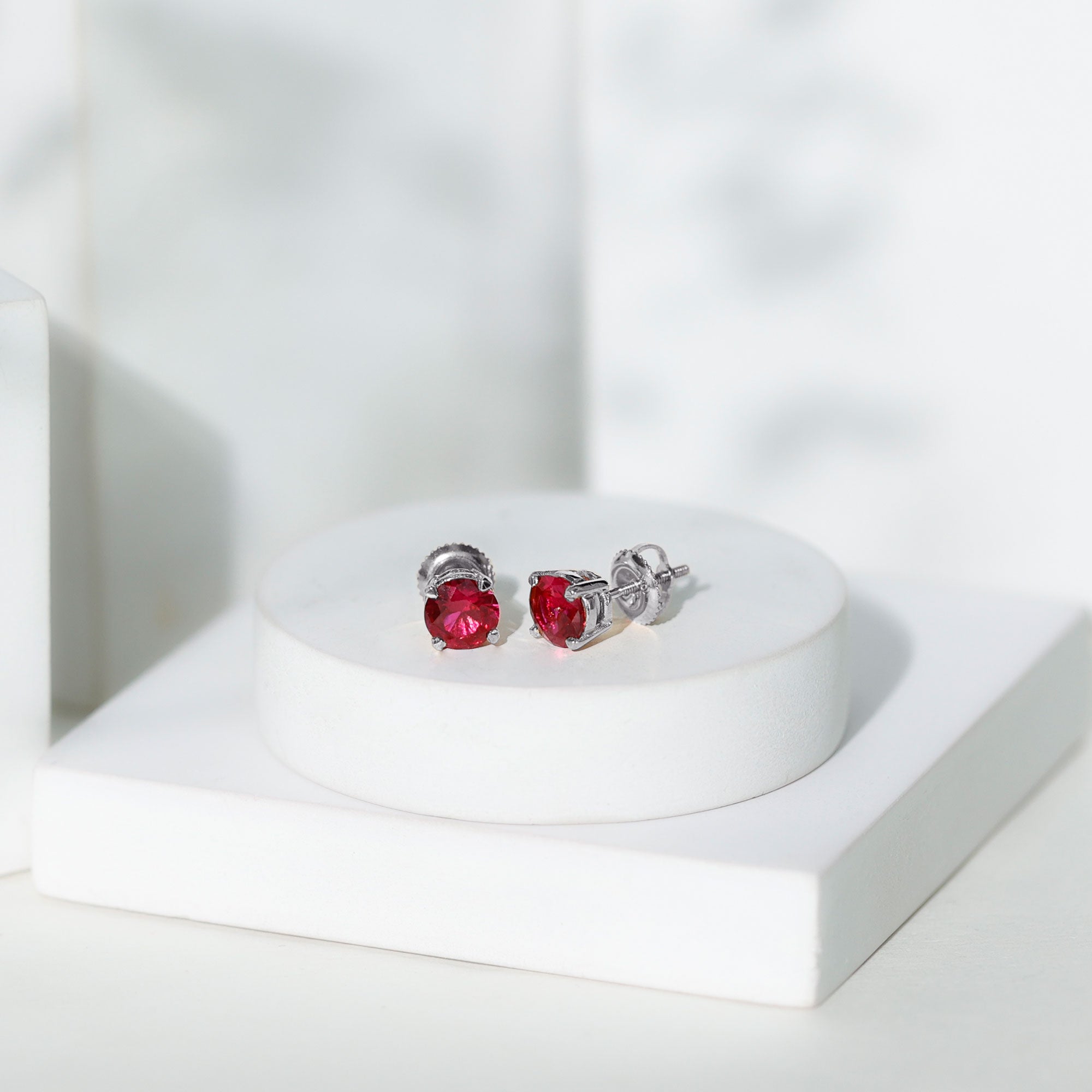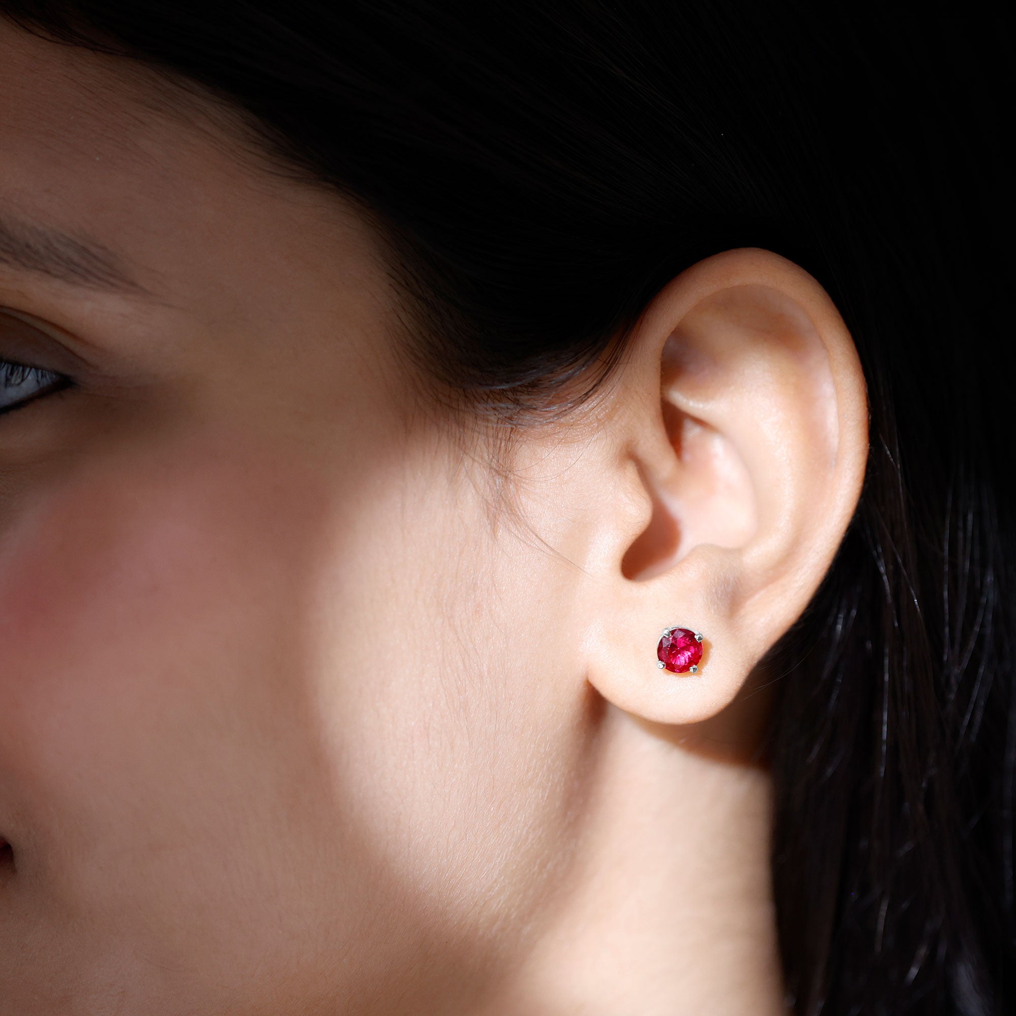 1.25 CT Round Lab Created Ruby Solitaire Stud Earrings