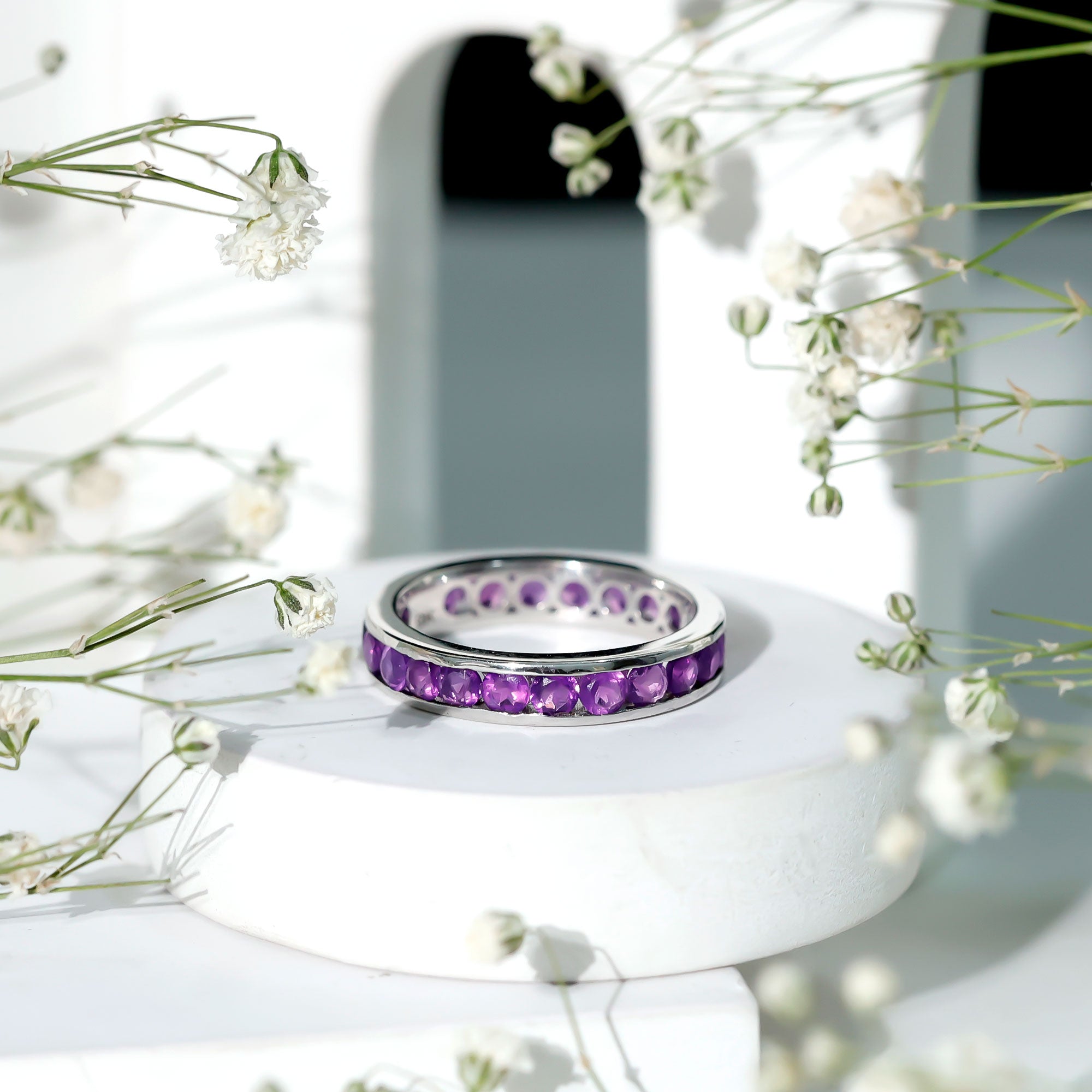 Round Shape Amethyst Eternity Ring in Channel Setting