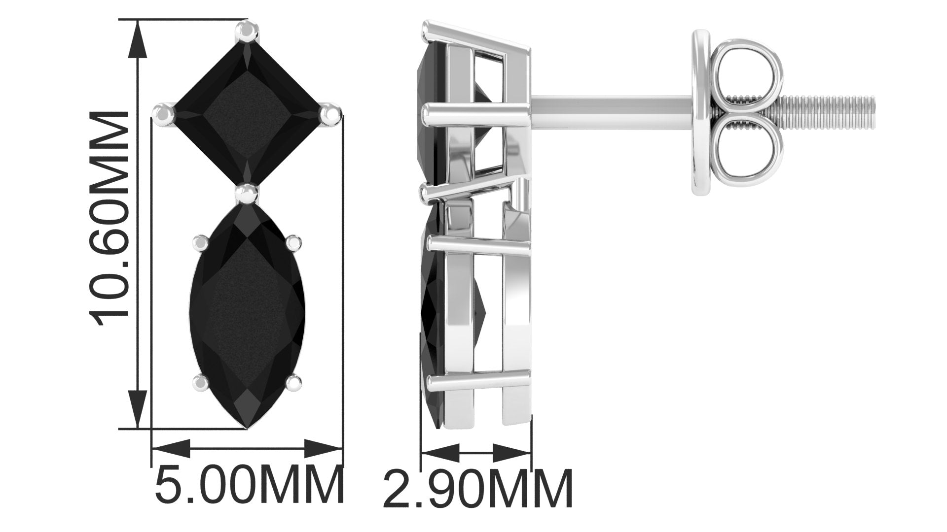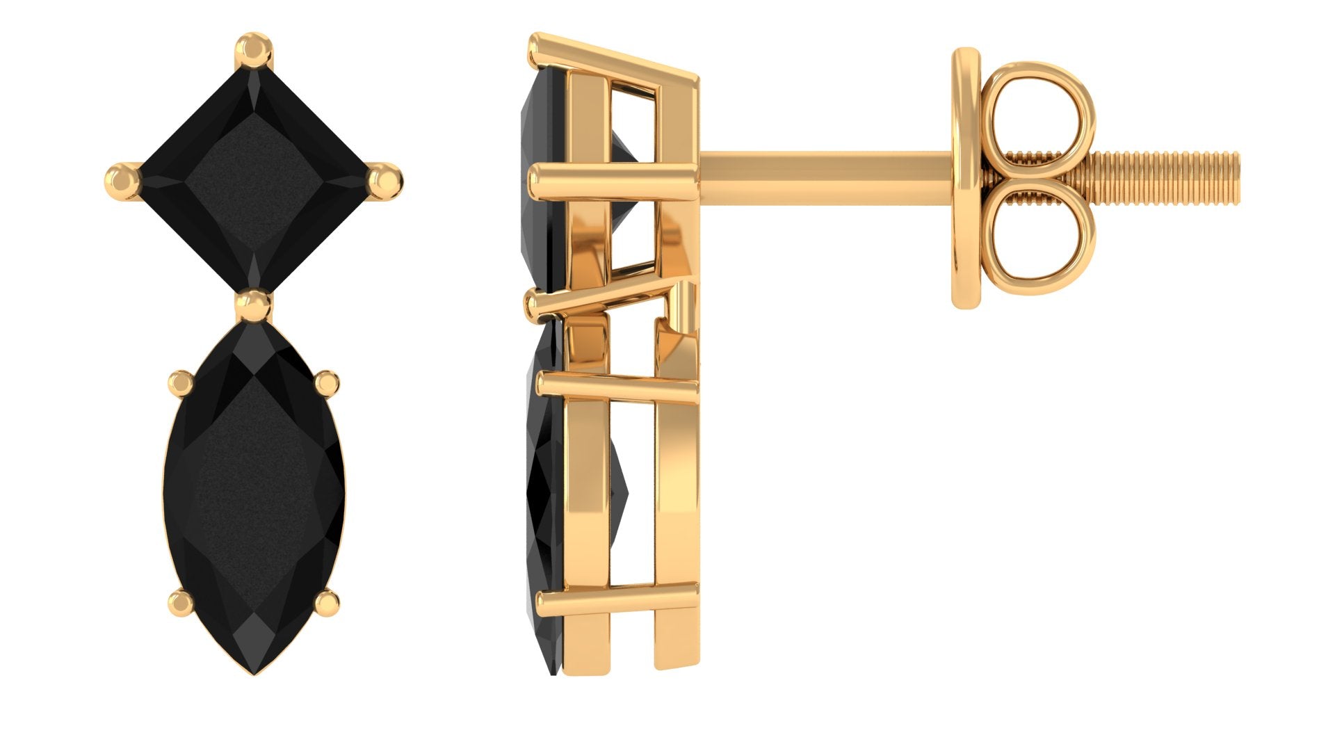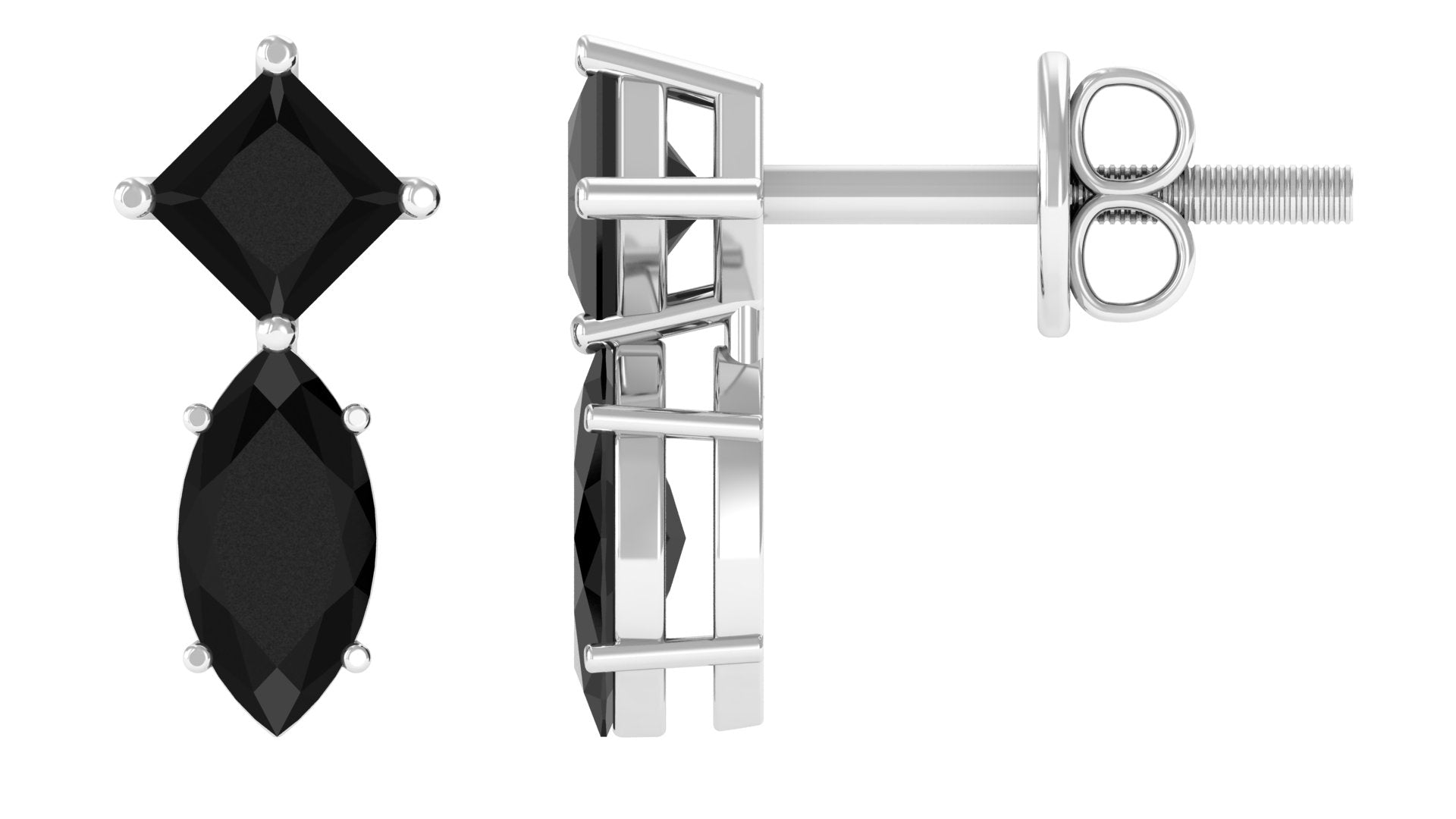 Enhance your everyday look with these Stud Earrings, a true embodiment of elegance. Embellished with Marquise and Princess Cut Black Spinel exquisitely held in prong setting. These Black Spinel Earrings are a versatile piece as they complement both casual and formal looks making them a must-have jewelry to your collection. Bring a smile to her face by gifting these screw-back earrings as a delightful gift that melts her heart.