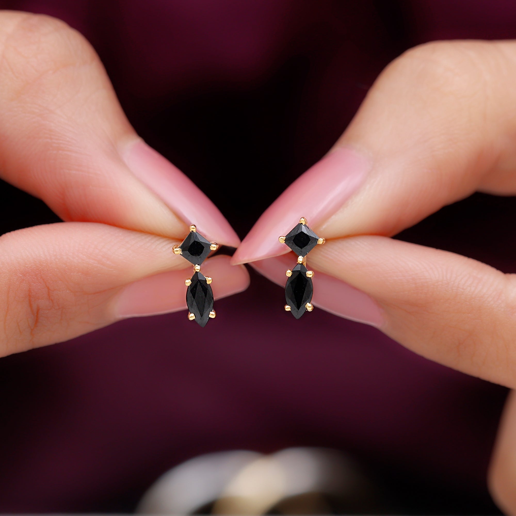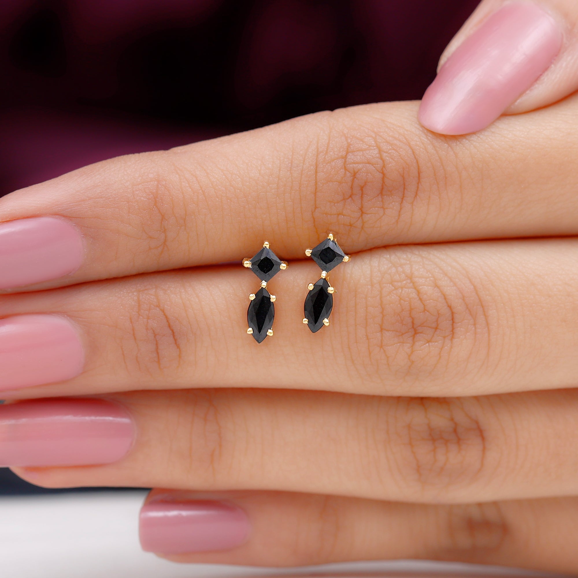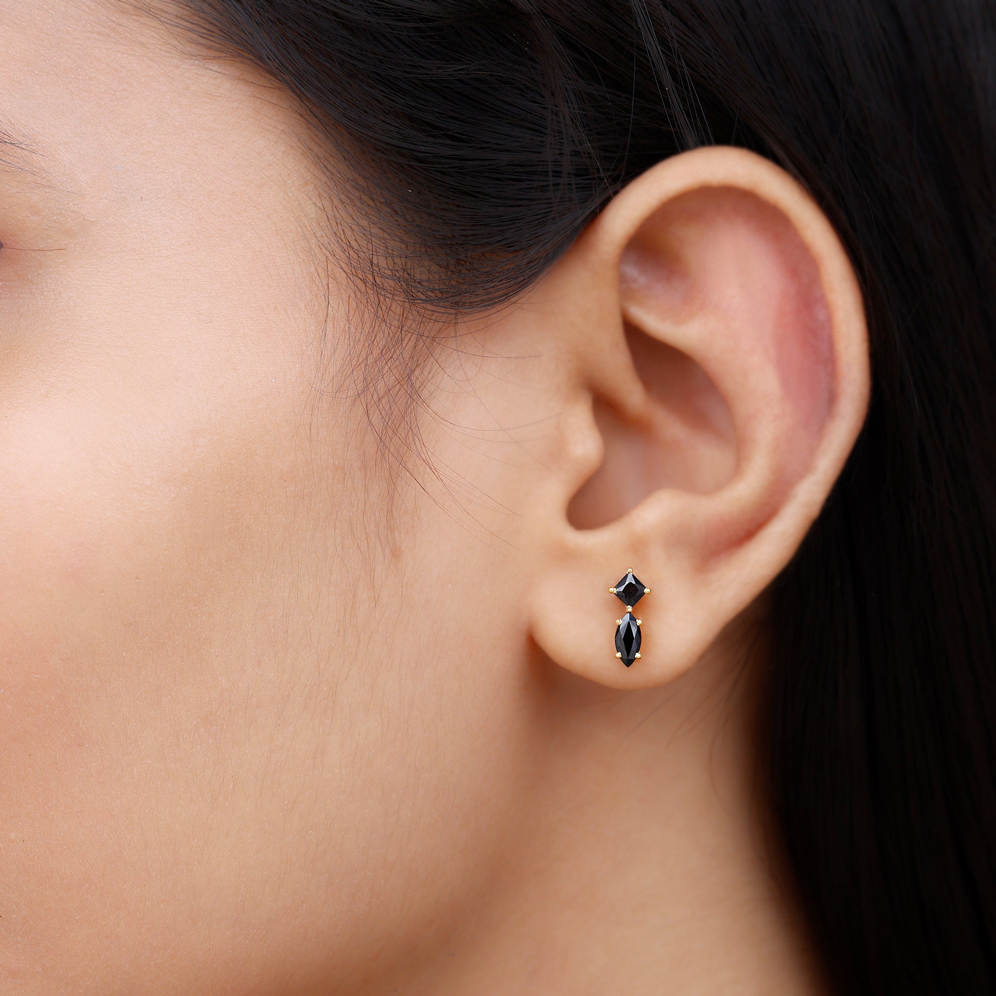 Enhance your everyday look with these Stud Earrings, a true embodiment of elegance. Embellished with Marquise and Princess Cut Black Spinel exquisitely held in prong setting. These Black Spinel Earrings are a versatile piece as they complement both casual and formal looks making them a must-have jewelry to your collection. Bring a smile to her face by gifting these screw-back earrings as a delightful gift that melts her heart.