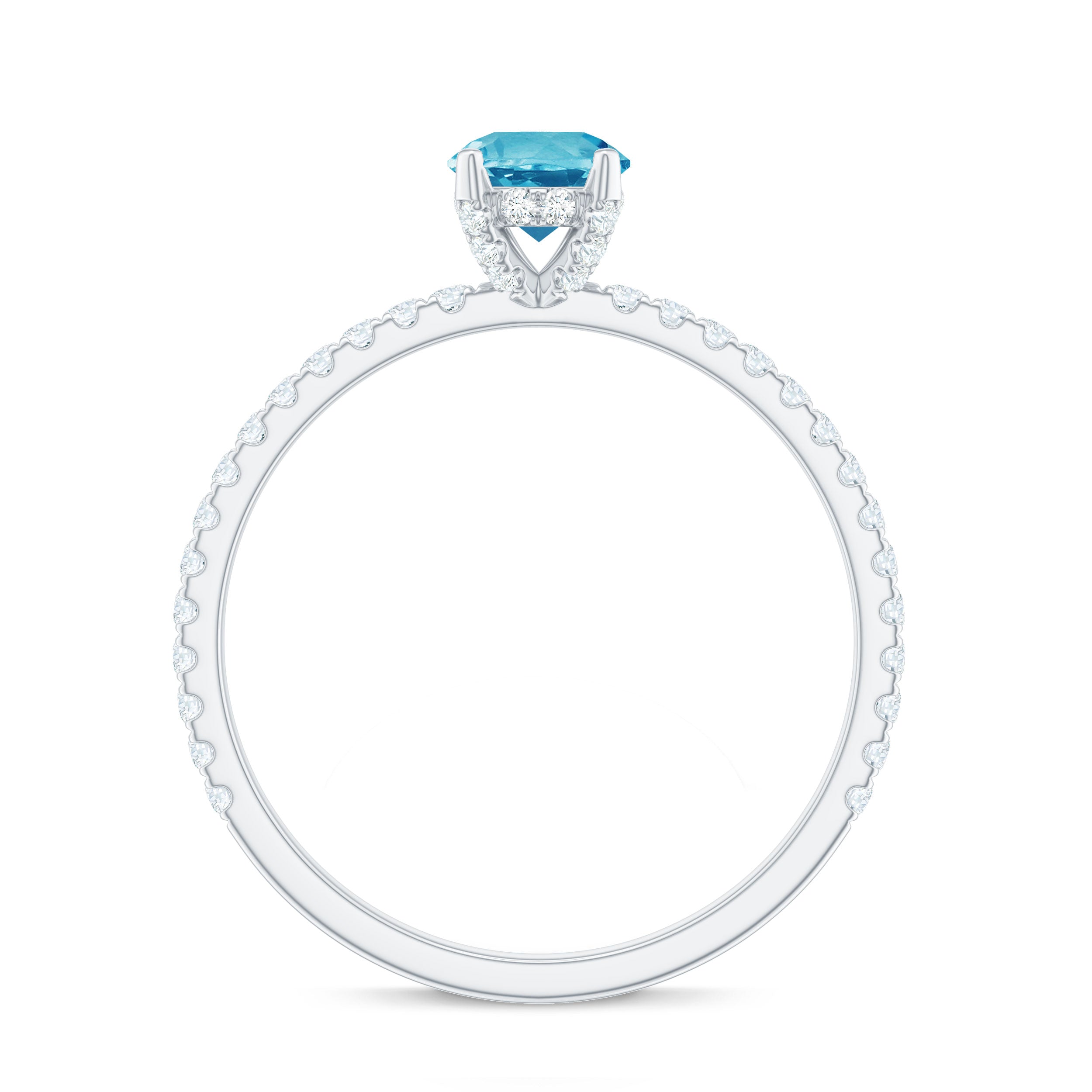 1.25 CT Solitaire Ring with Swiss Blue Topaz and Diamond Side Stones
