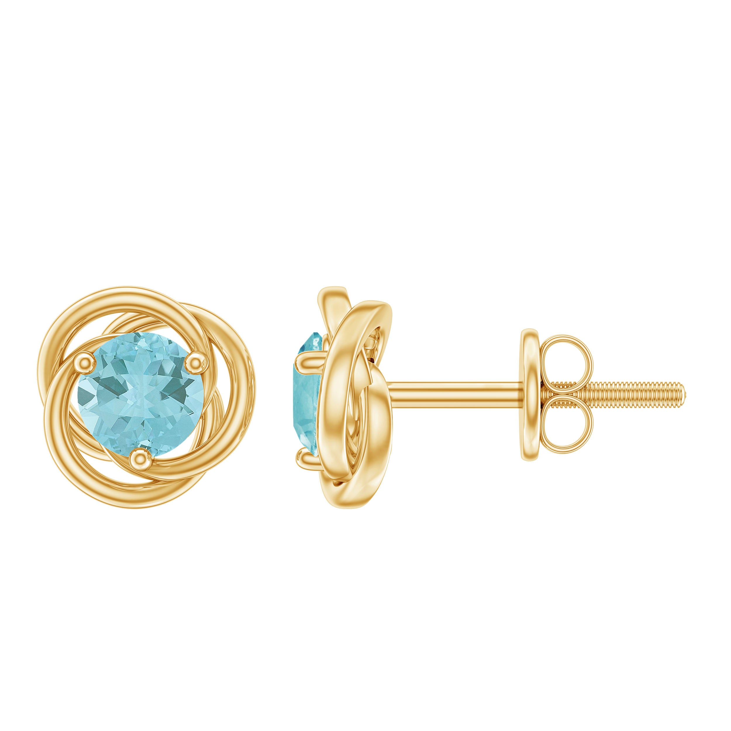 Gifts are the most appropriate way to express your feelings so make a move and present these Swirl Stud Earrings to your love, glamorized with Round Shape Sky Blue Topaz Gemstone set as a Solitaire in Prong Setting and composed of Solid Gold