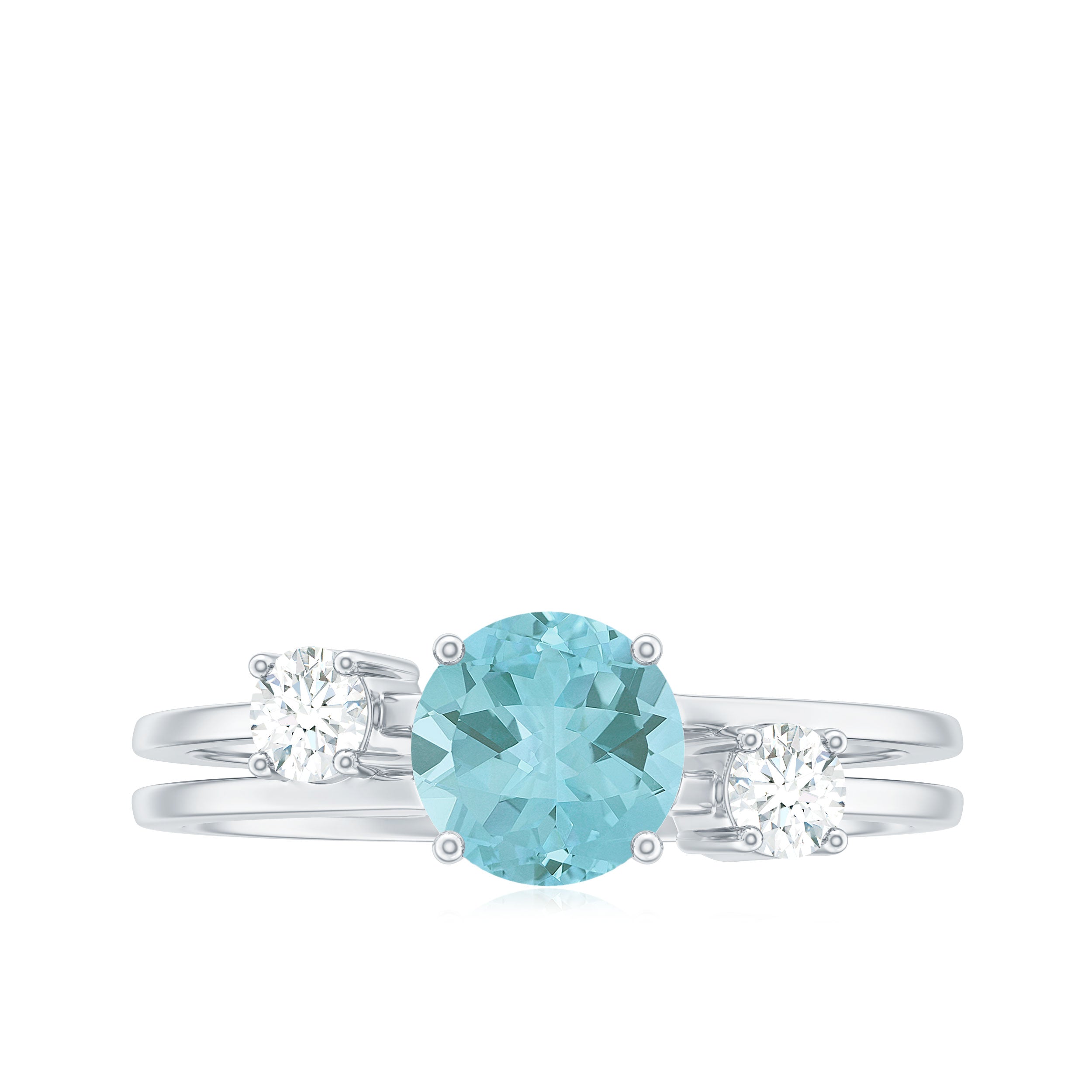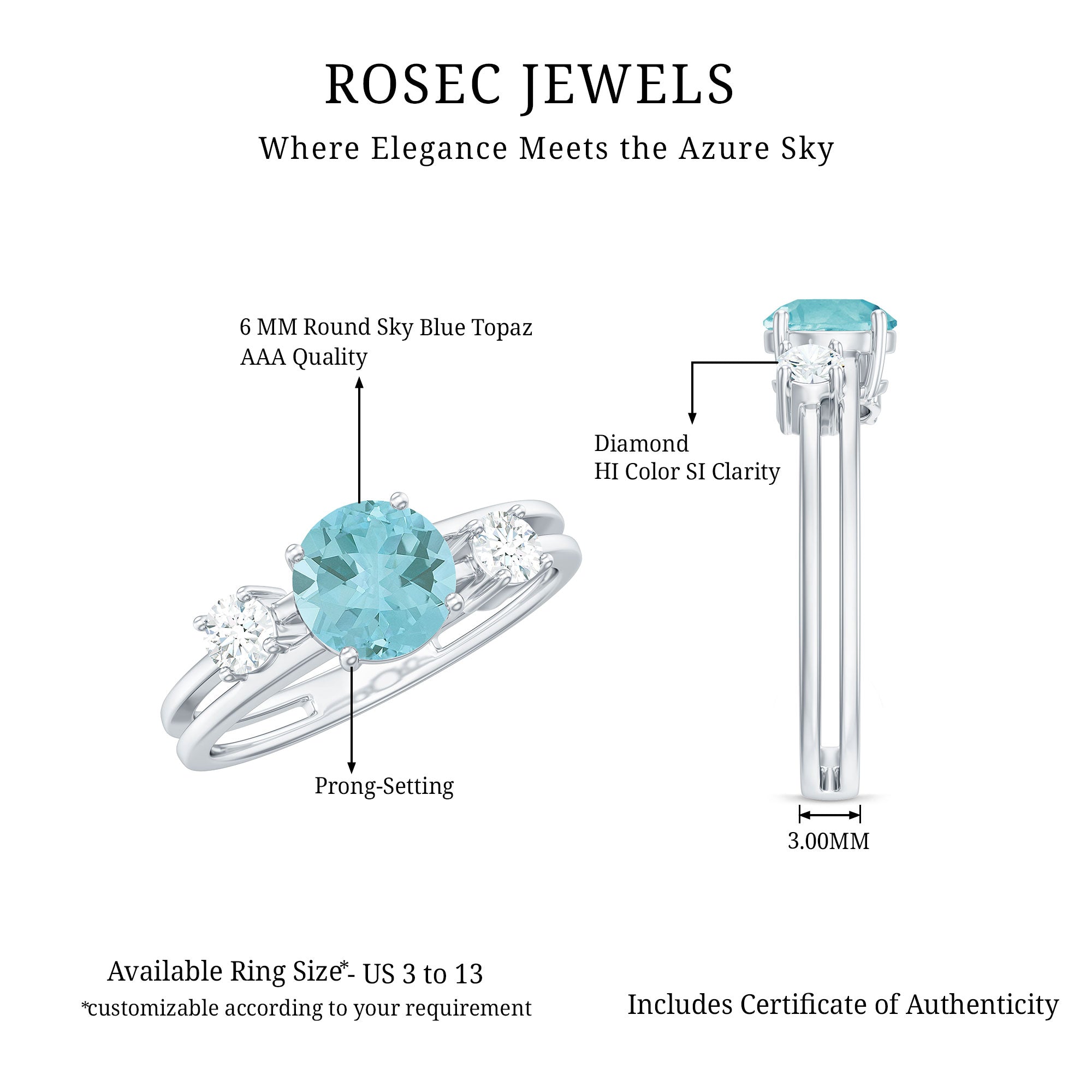 Experience the timeless allure of our Three Stone Sky Blue Topaz and Diamond Ring. The trio of sky-blue topaz stones, representing the past, present, and future, creates a symbolic and elegant design. The center Sky Blue Topaz, symbolizing the present, is flanked by two brilliant Diamond stones, adding a touch of eternal sparkle. Meticulously crafted, the design captures the essence of enduring love and shared moments. The classic and sophisticated arrangement of stones makes this ring a meaningful and radiant symbol of your journey together. Wear this three-stone ring as a celebration of your past, present, and future, where the serene beauty of Sky Blue Topaz meets the everlasting brilliance of Diamond.