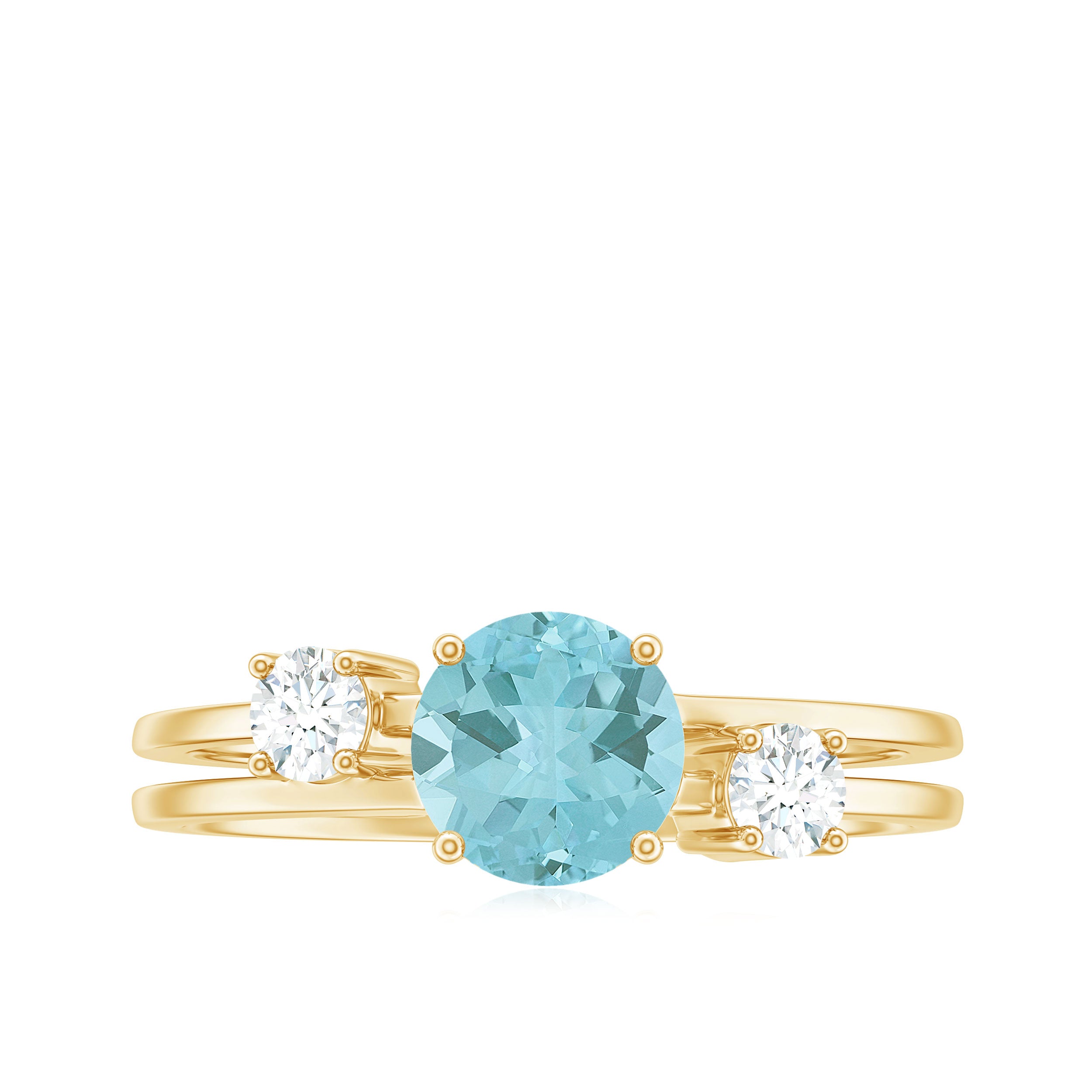 1.25 CT Three Stone Sky Blue Topaz and Diamond Ring