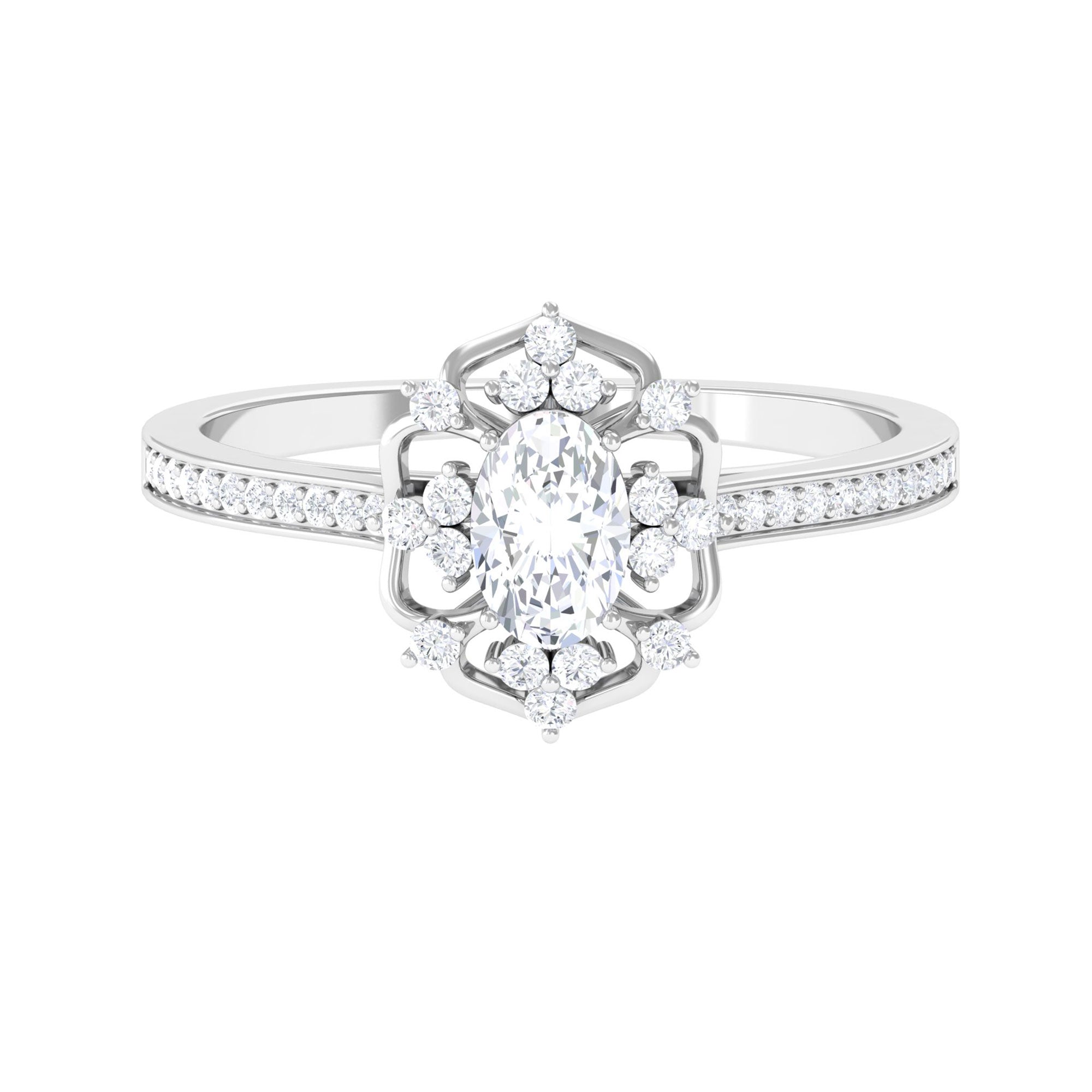 Make your special day unforgettable with this unique Vintage Engagement Ring. Featuring an Oval Cut Cubic Zirconia at the center, surrounded by Round Zirconia accents and more gemstones on the shank. Expertly crafted in gold for a luxurious look, this ring has a total weight of 1.25 Carats. Our gemstones are certified and undergo strict quality checks for your peace of mind.