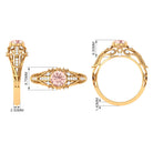 Every moment of yours is worth celebrating, so why not celebrate it with an alluring fine jewelry. This Morganite Engagement Ring is exactly what you are looking for your partner, Round Morganite is held in Prong Setting while Round Diamond are arranged distinctively, forming a perfect Vintage Engagement Ring . Show your love to your partner with this Art Deco Morganite Ring.
