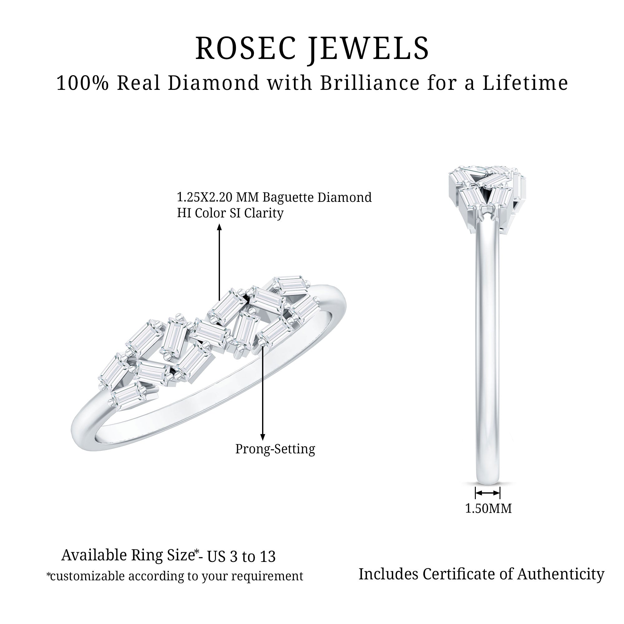 Step into the world of timeless elegance that meets contemporary allure with the exquisite Diamond Baguette Ring, that effortlessly blend the classic charm with a touch of modern sophistication. This Minimal Promise Ring is design to captivate and mesmerize, showcasing a unique baguette Diamond as Cluster as a dazzling assembly. Representing love and commitment this Diamond Cluster Ring offers unique and stunning appeal with its eye-catchy designs that truly stands out with the exceptional taste. Oozing sophistication this Baguette Diamond Wedding Band is perfect as a wedding band, an anniversary present or enough to stand alone. With its edgy, modern and geometric design, this Natural Diamond Ring exudes a stunning sophistication. The uncluttered and elegant Diamond Ring symbolizes love and commitment offering excellent combination of brilliance and fire.