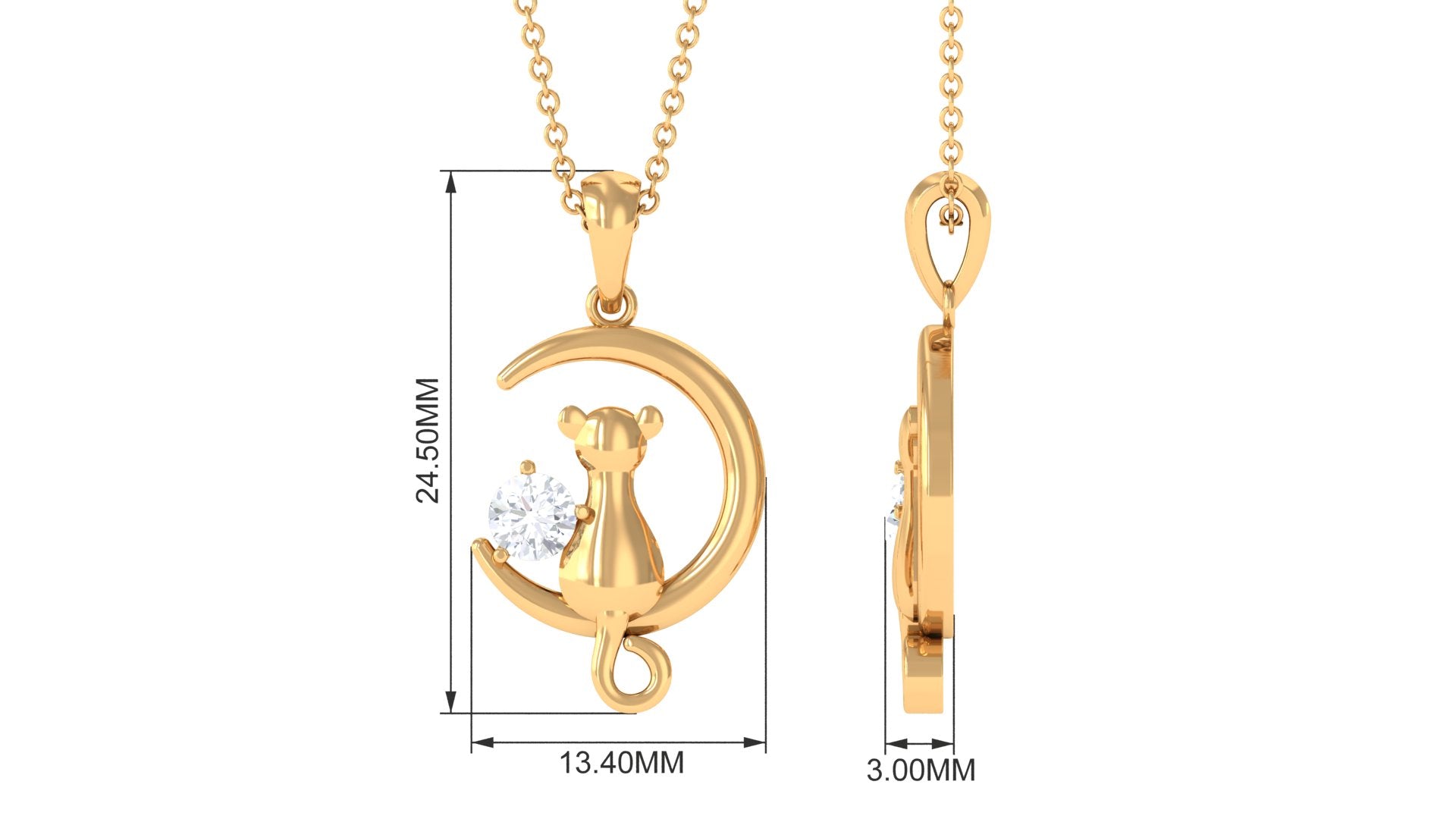1/4 CT Certified Moissanite Cat On Moon Gold Pendant
