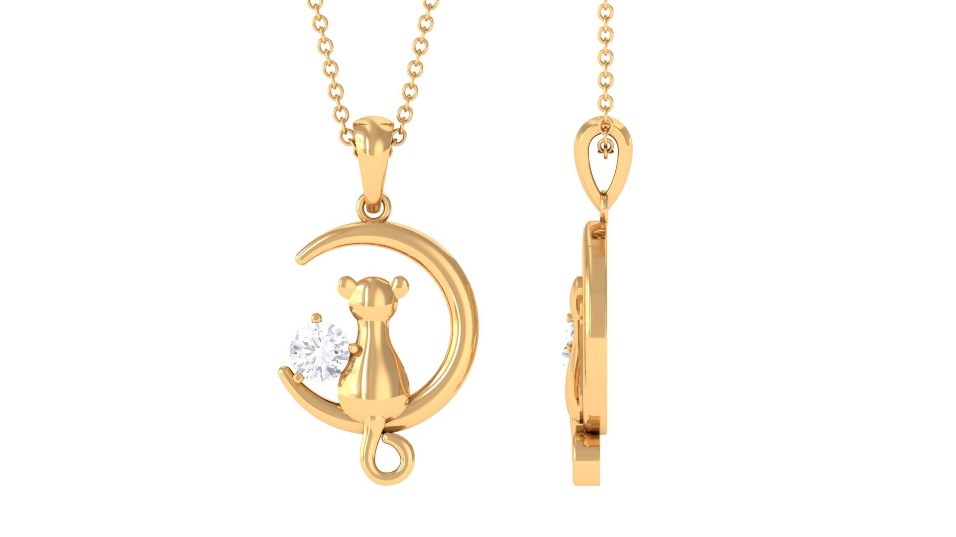 1/4 CT Certified Moissanite Cat On Moon Gold Pendant