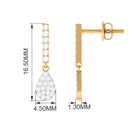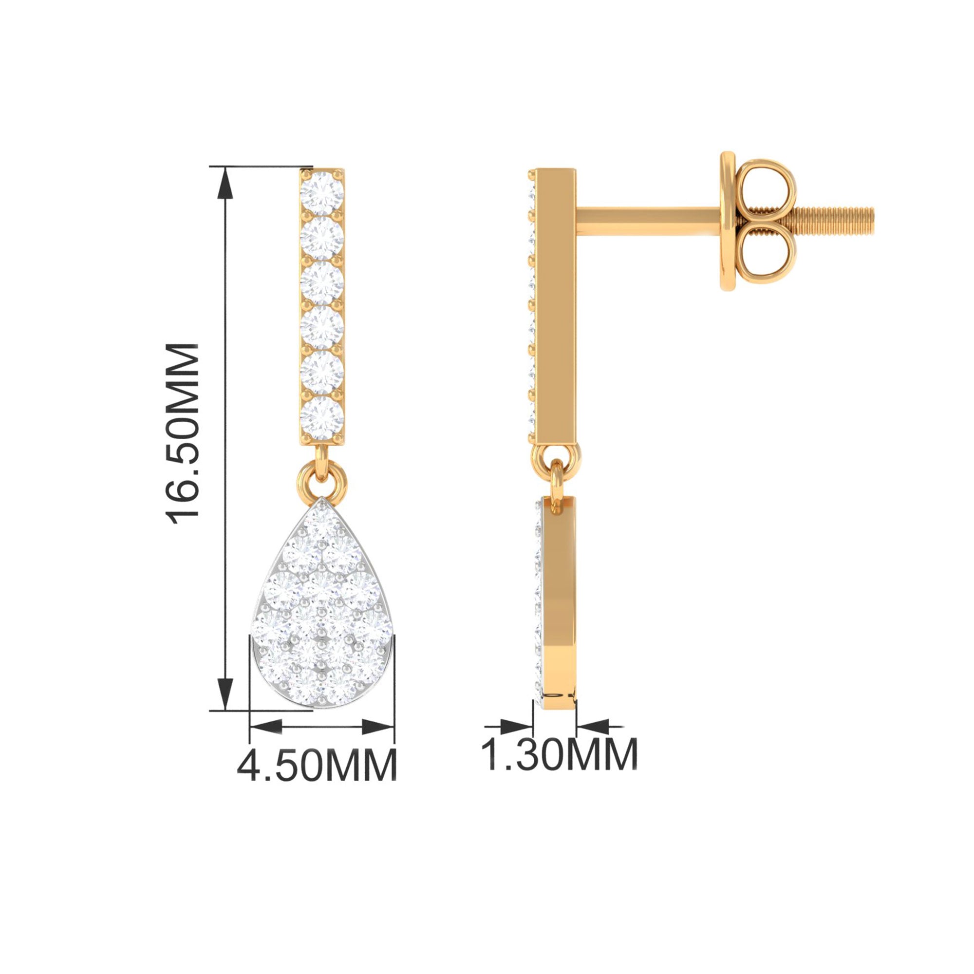 Make your days sparkle with these Shining Moissanite Dangle Earrings. These Moissanite earrings feature a dangle pattern adorned with round Moissanite in a pave setting, held in place by a screw back. Crafted from gold, these dangle drop earrings radiate a brilliant shine that will catch the eye and enhance your appearance. Add these dazzling earrings to your collection for a touch of glamour and elegance.