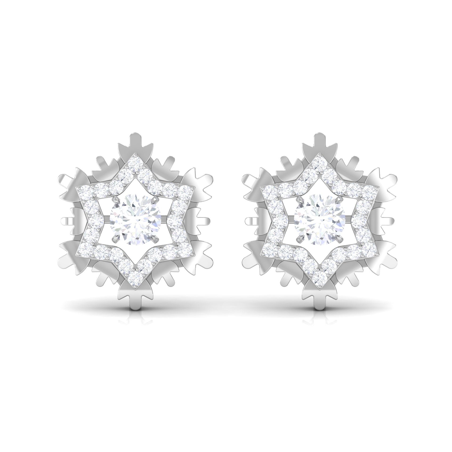 Celebrate the beauty of winter with these Snowflake Stud Earrings. Each earring features a stunning snowflake design, with round Moissanite stones set in prong setting. These Moissanite earrings are perfect for adding a touch of elegance and whimsy to any outfit, making them the perfect accessory for the winter season.