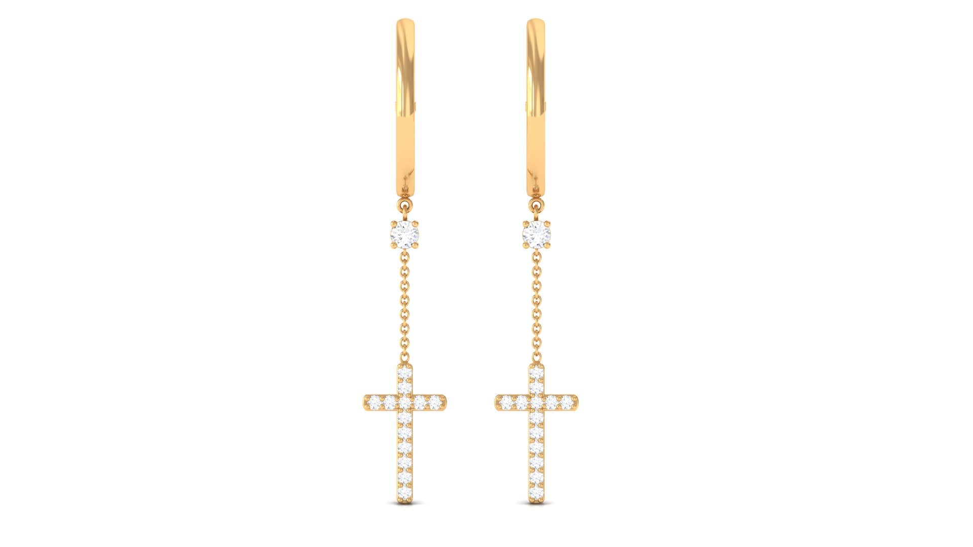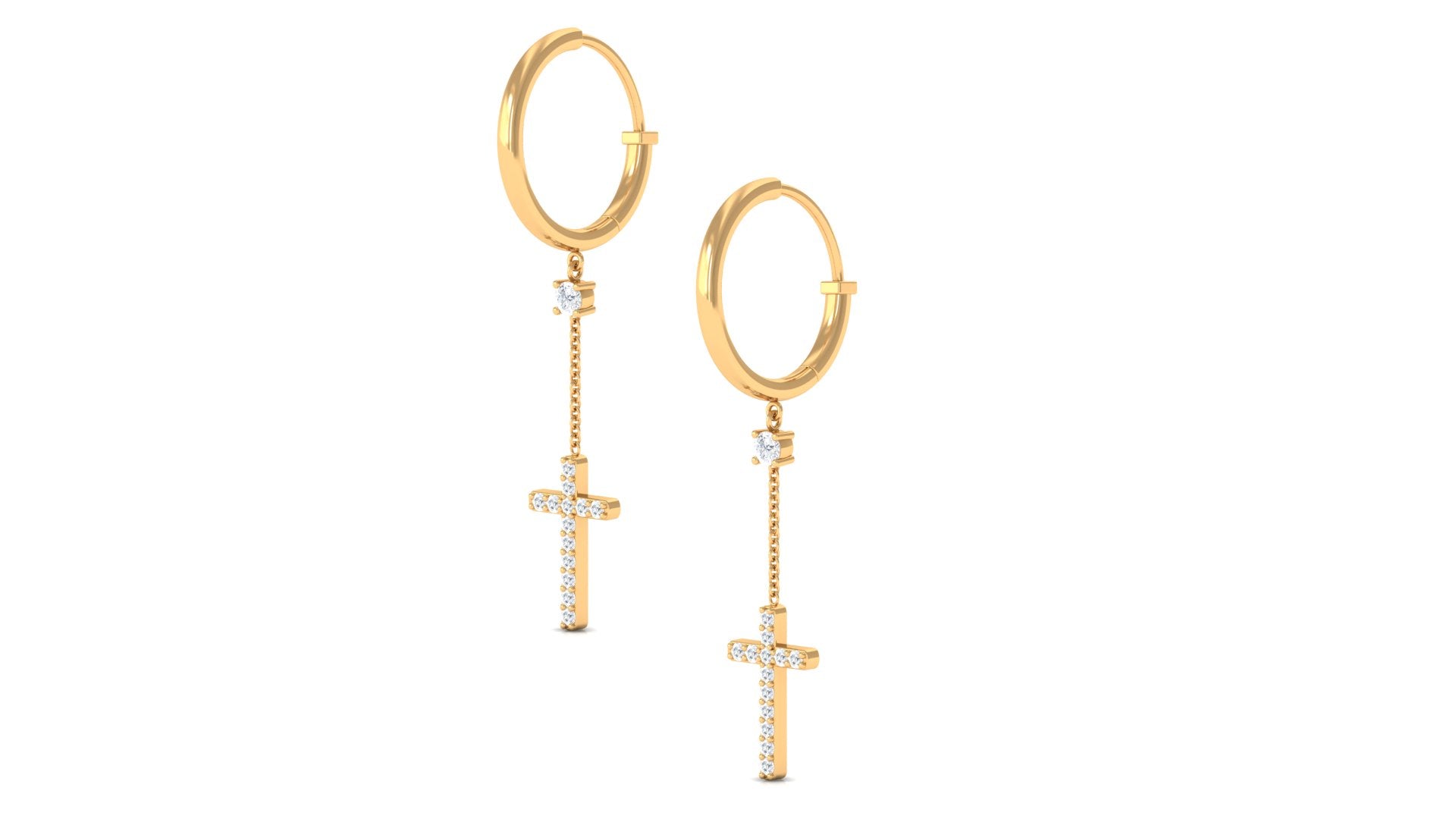 Adorn yourself in these classic Cross Drop Hoop Earrings studded with Pave Set Diamond adding to the brilliance of these Cross Hoop Earrings.