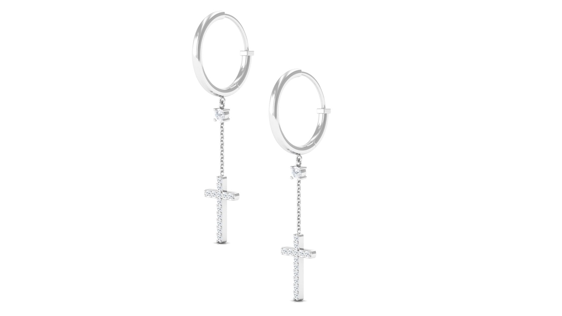 1/4 CT Diamond Cross Drop Hoop Earrings