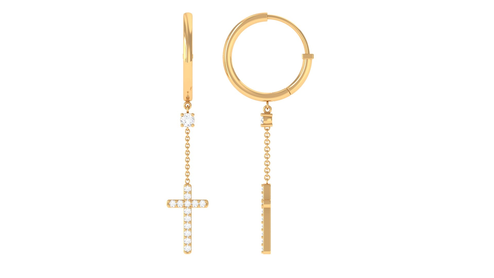 Adorn yourself in these classic Cross Drop Hoop Earrings studded with Pave Set Diamond adding to the brilliance of these Cross Hoop Earrings.