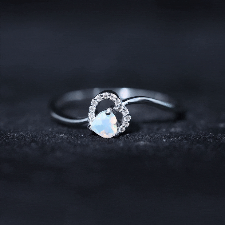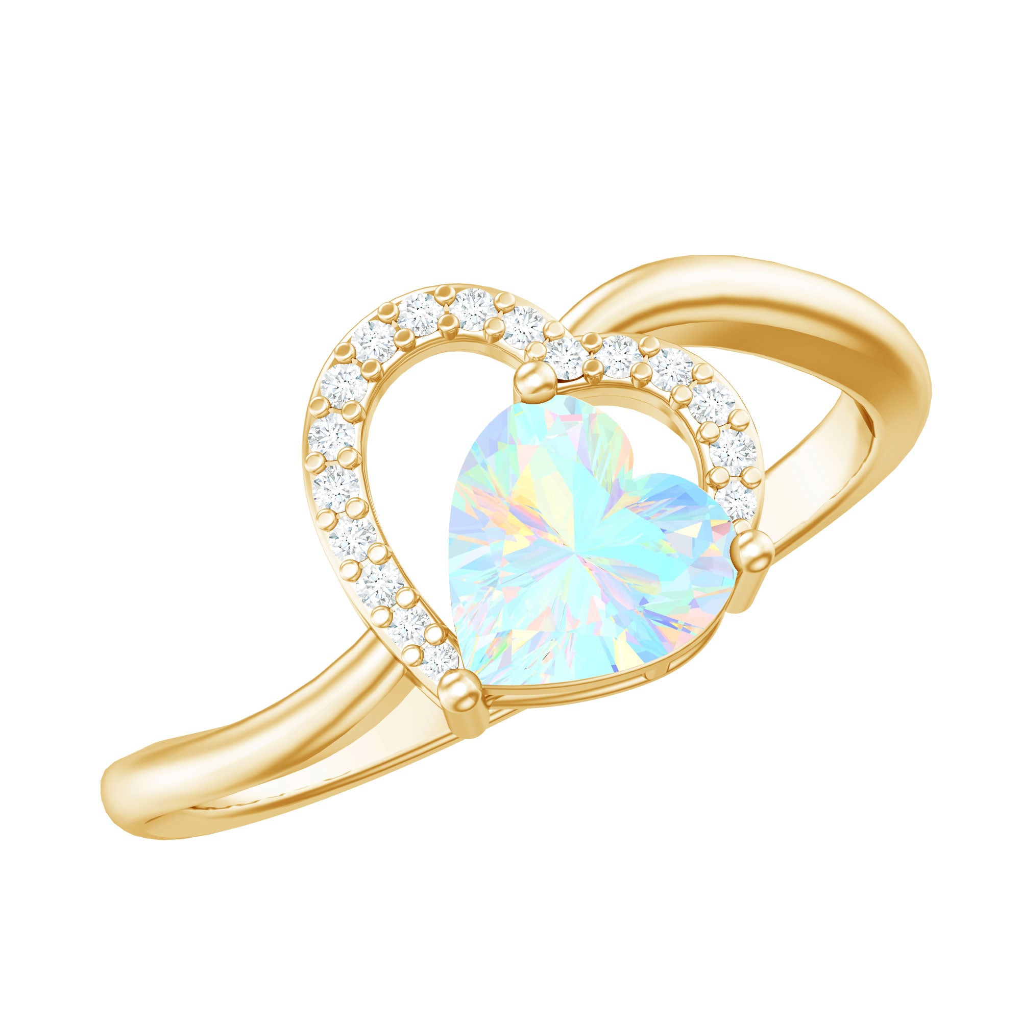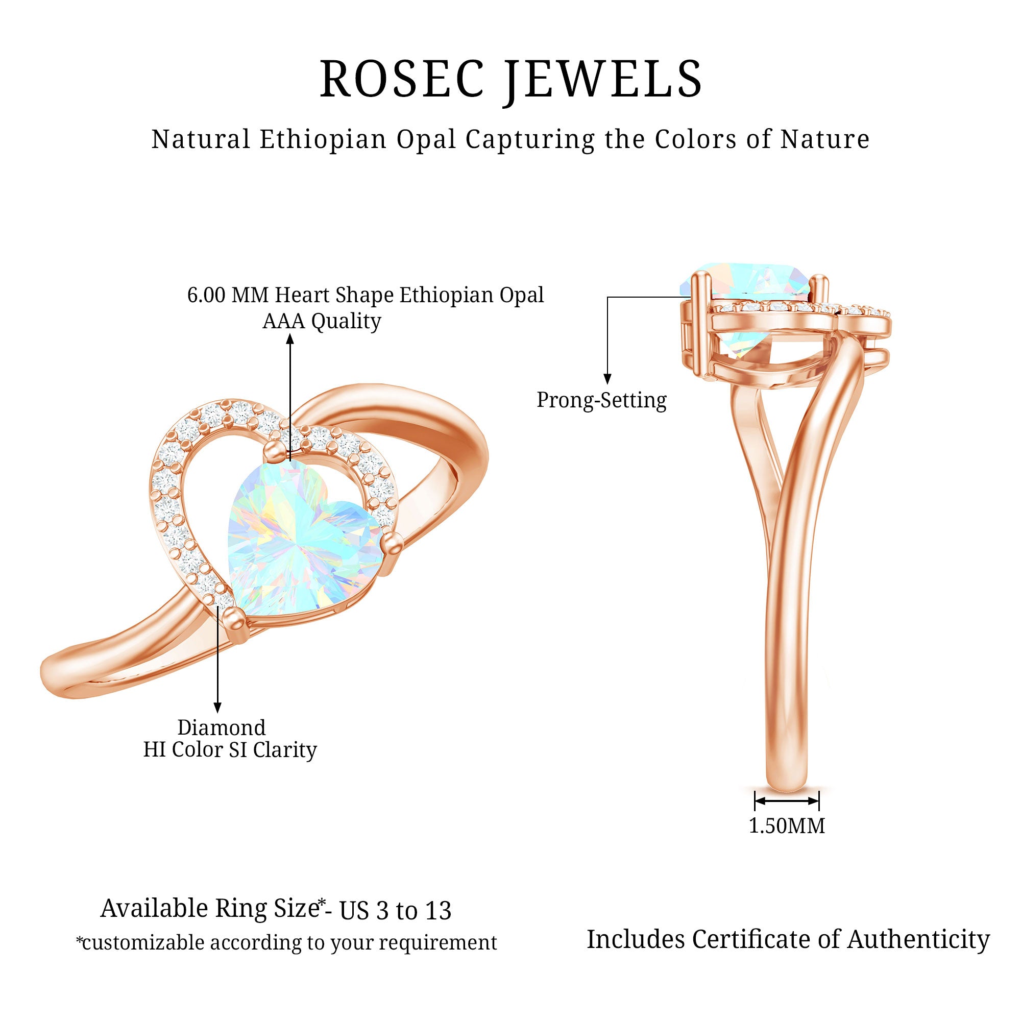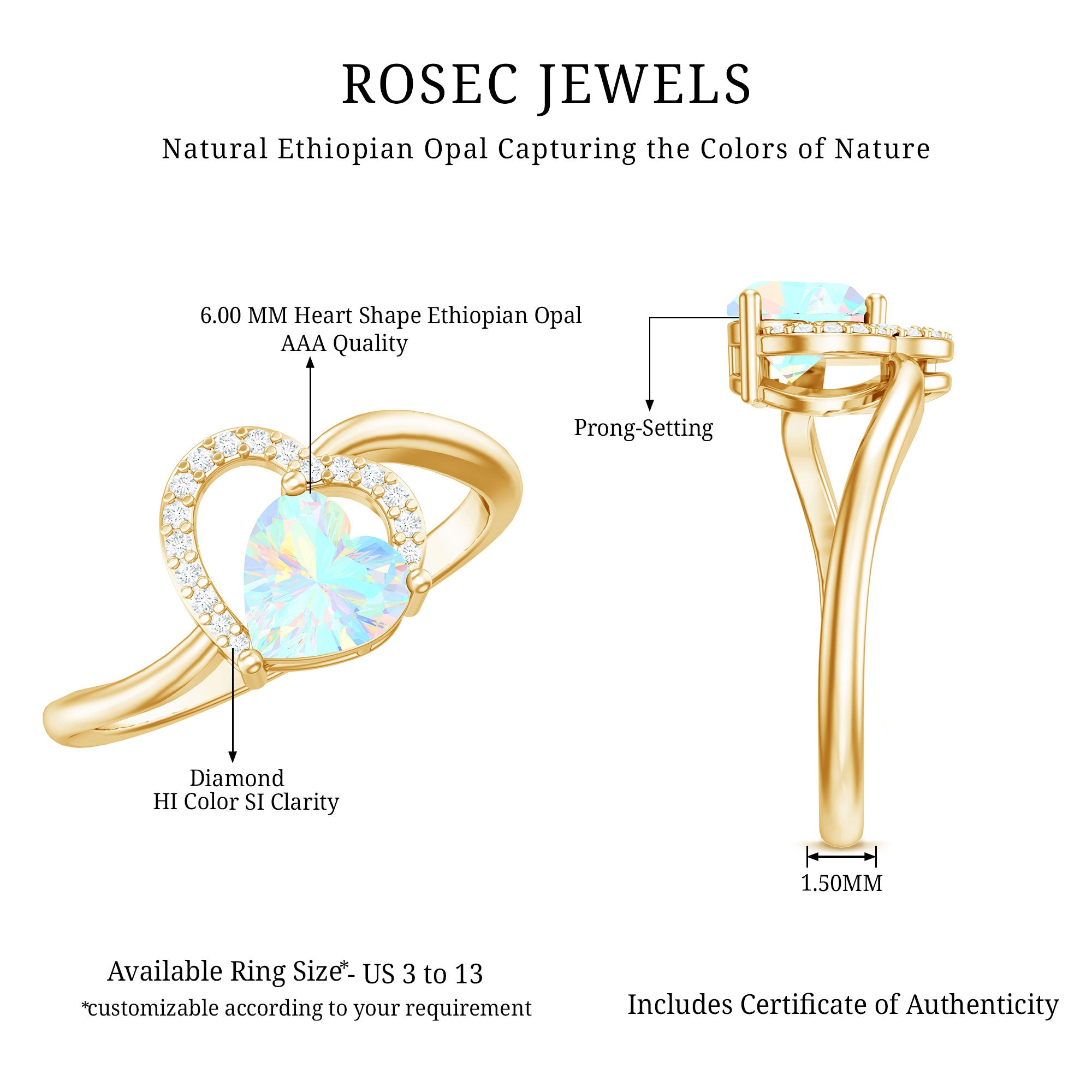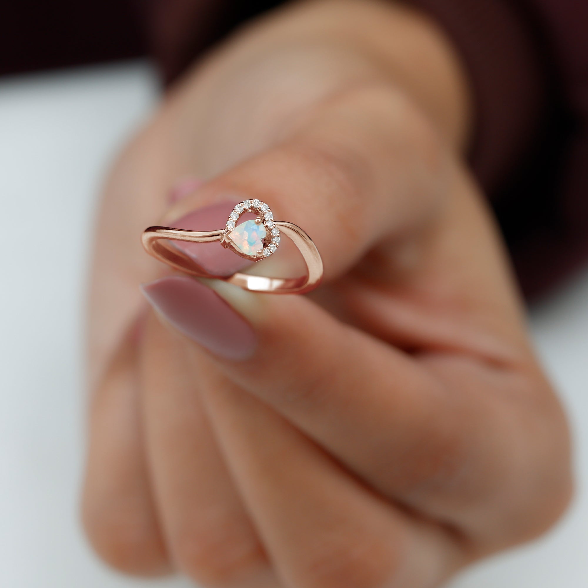 1/4 CT Ethiopian Opal Heart Promise Ring with Diamond