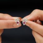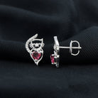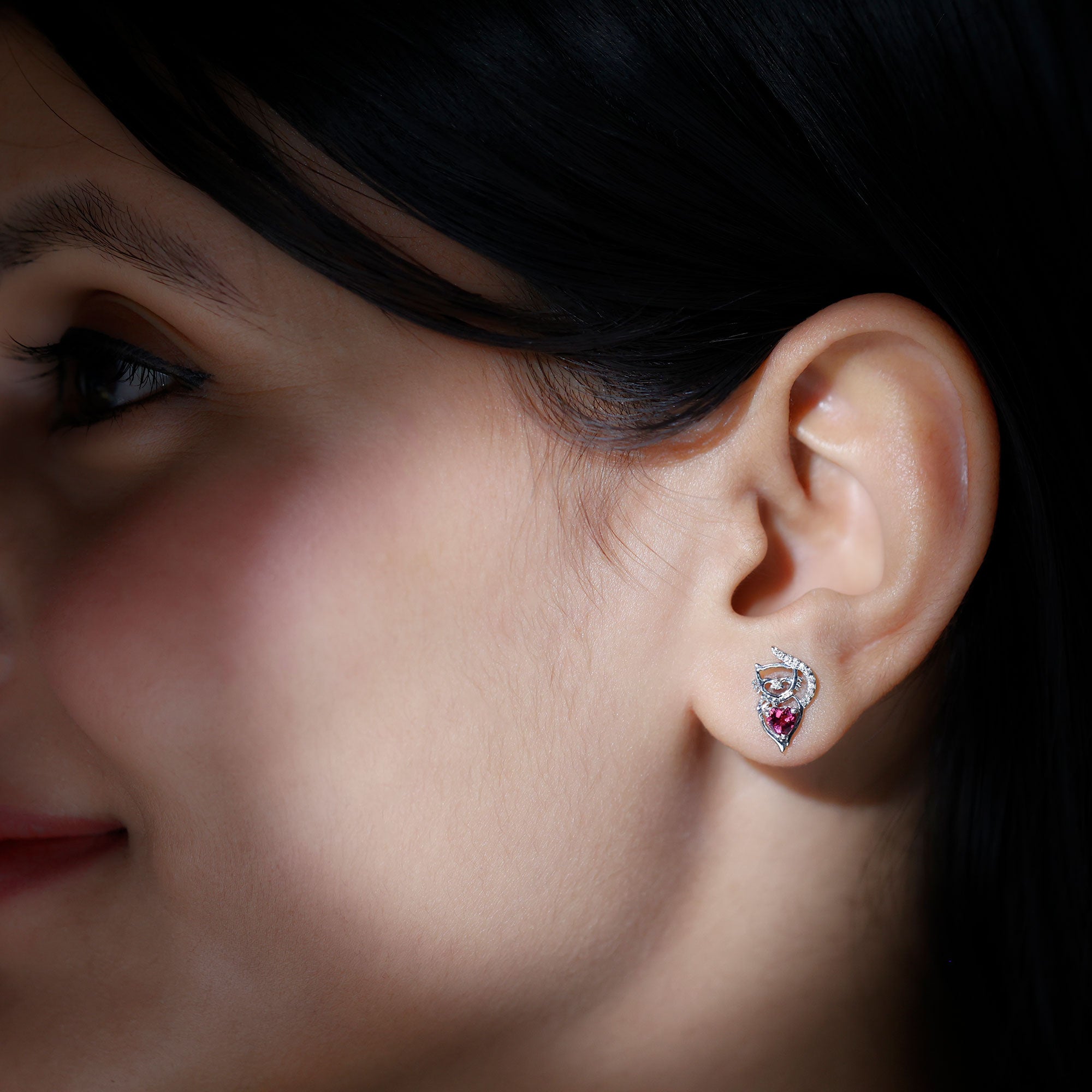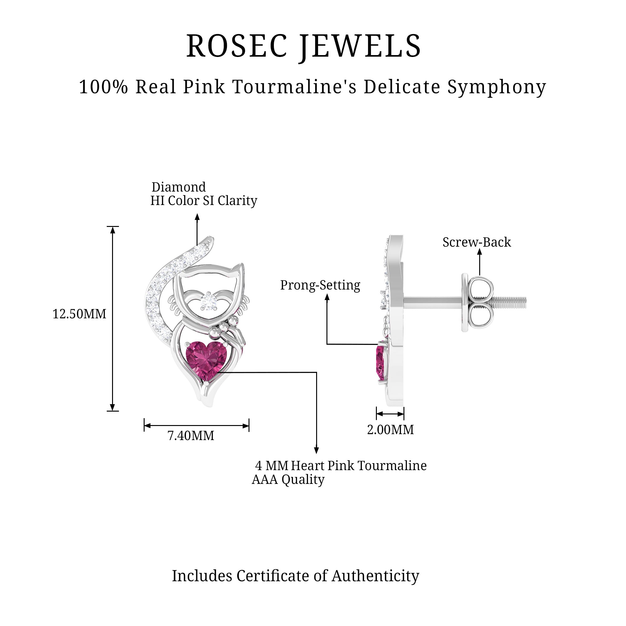 1/4 CT Heart Shape Pink Tourmaline and Diamond Cat Stud Earring